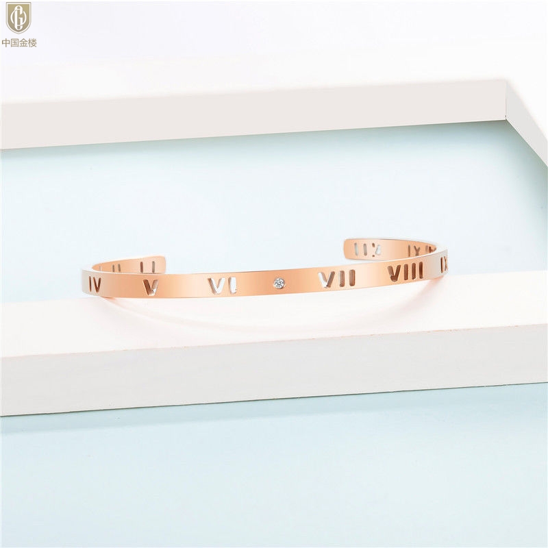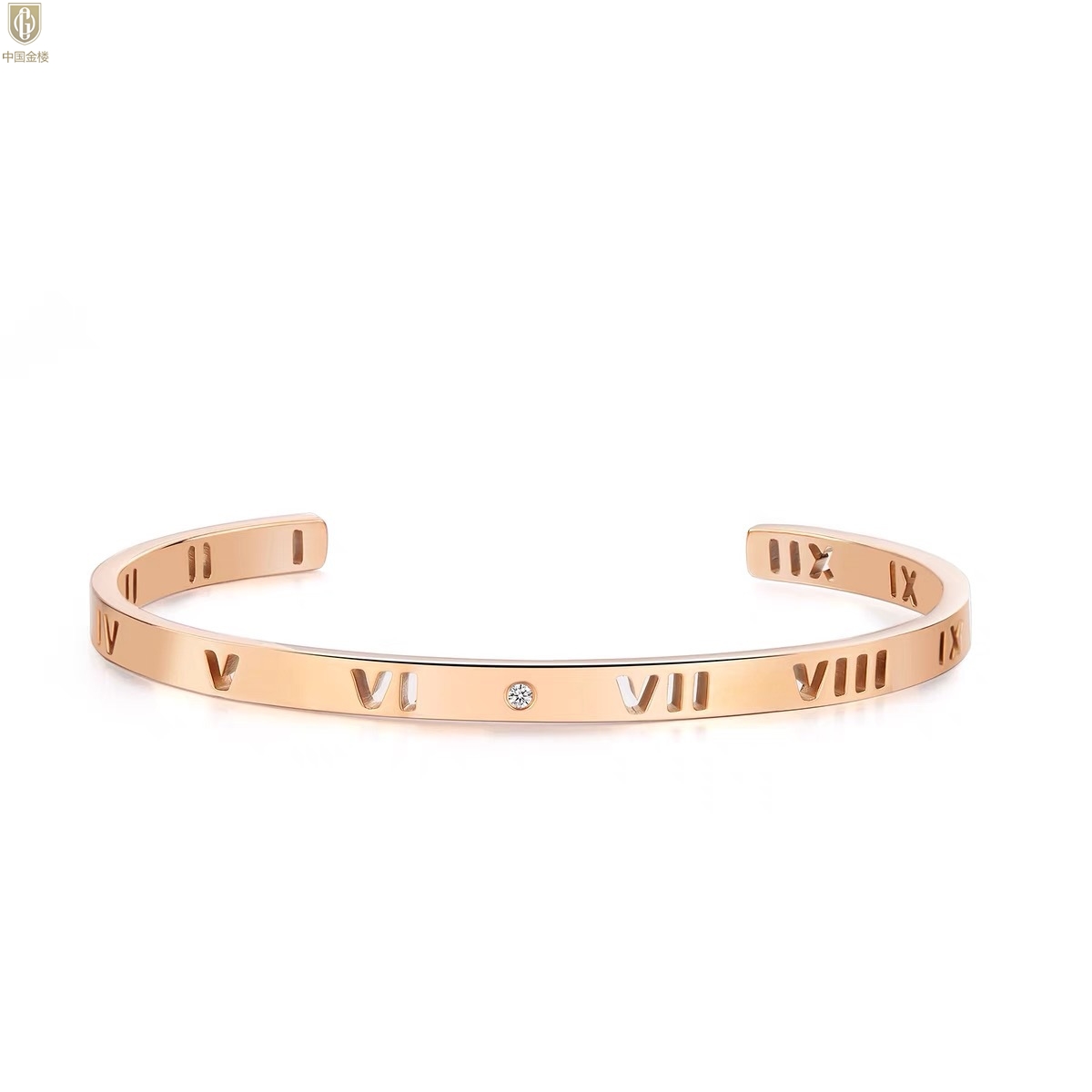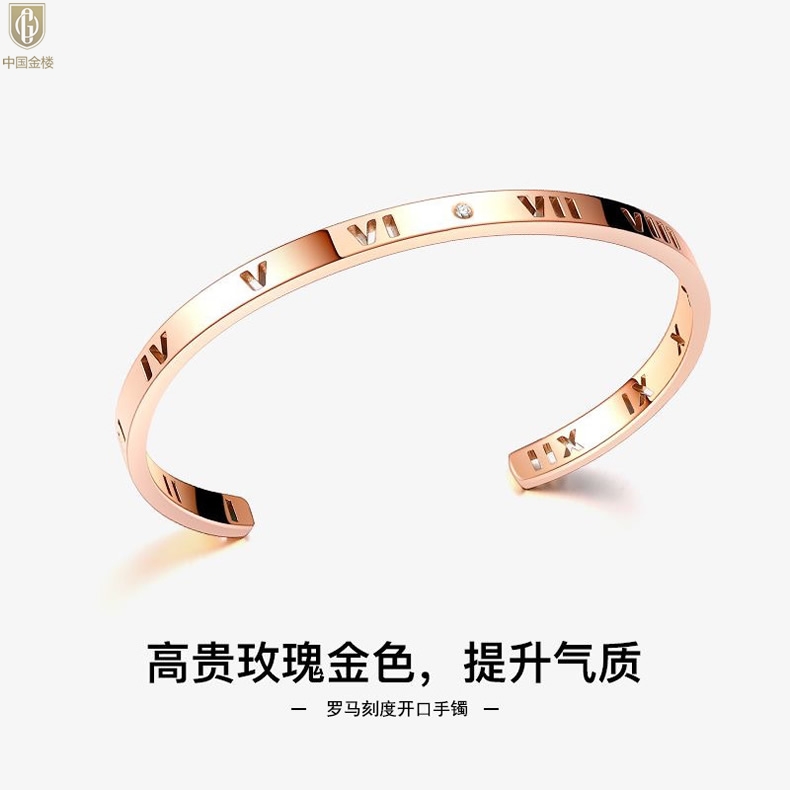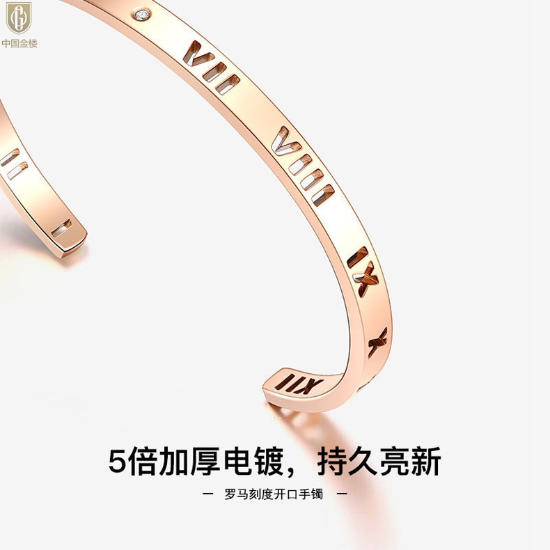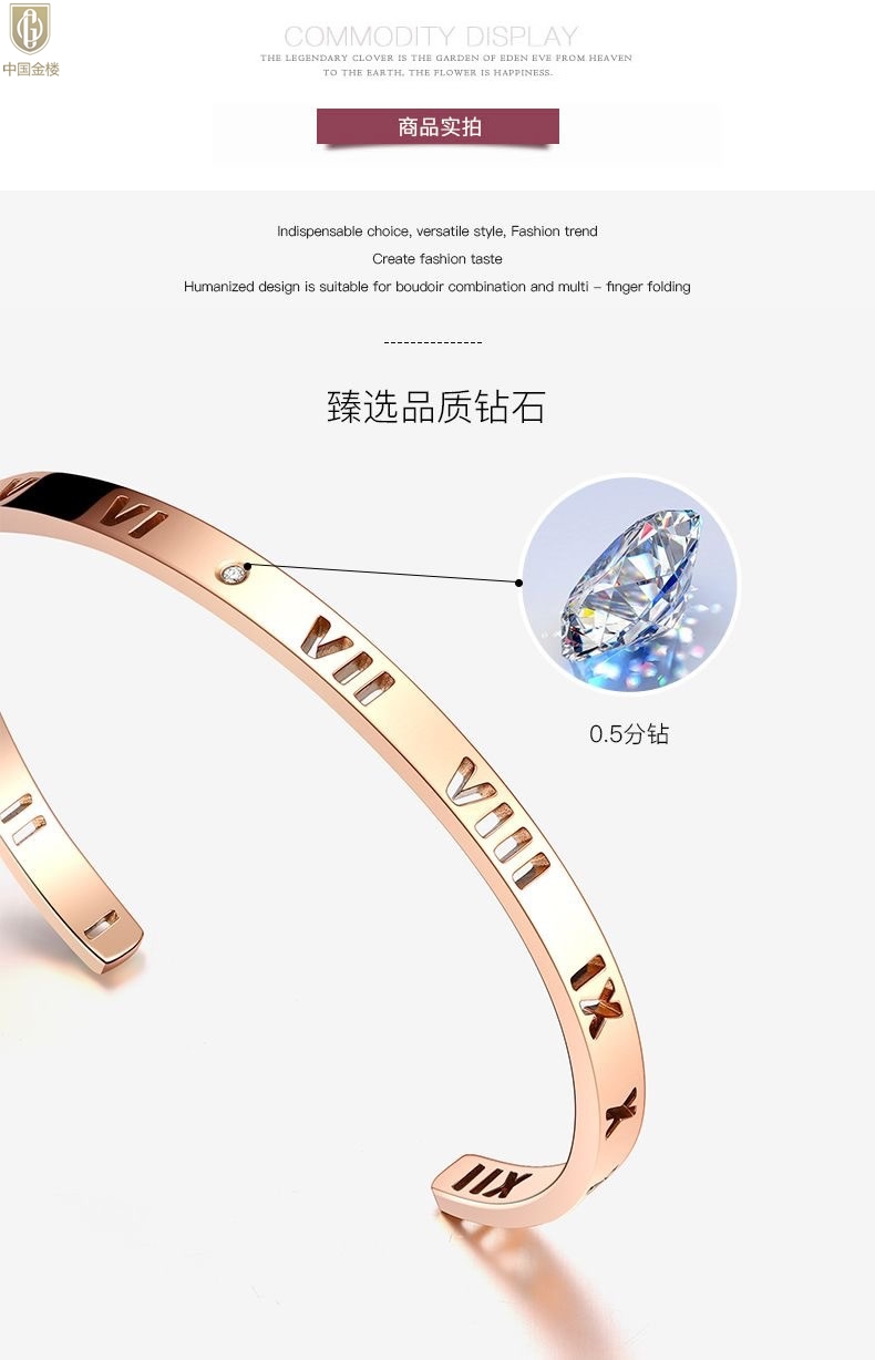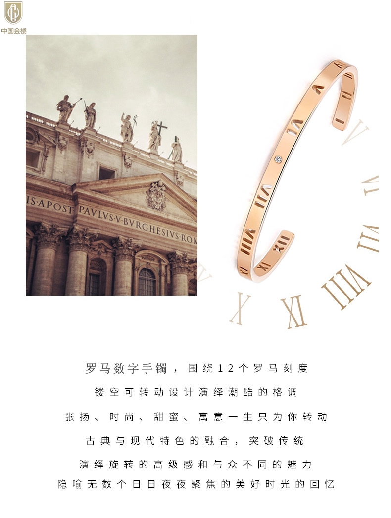 【品名】中国金楼18K镶钻南非真钻镂空罗马手镯