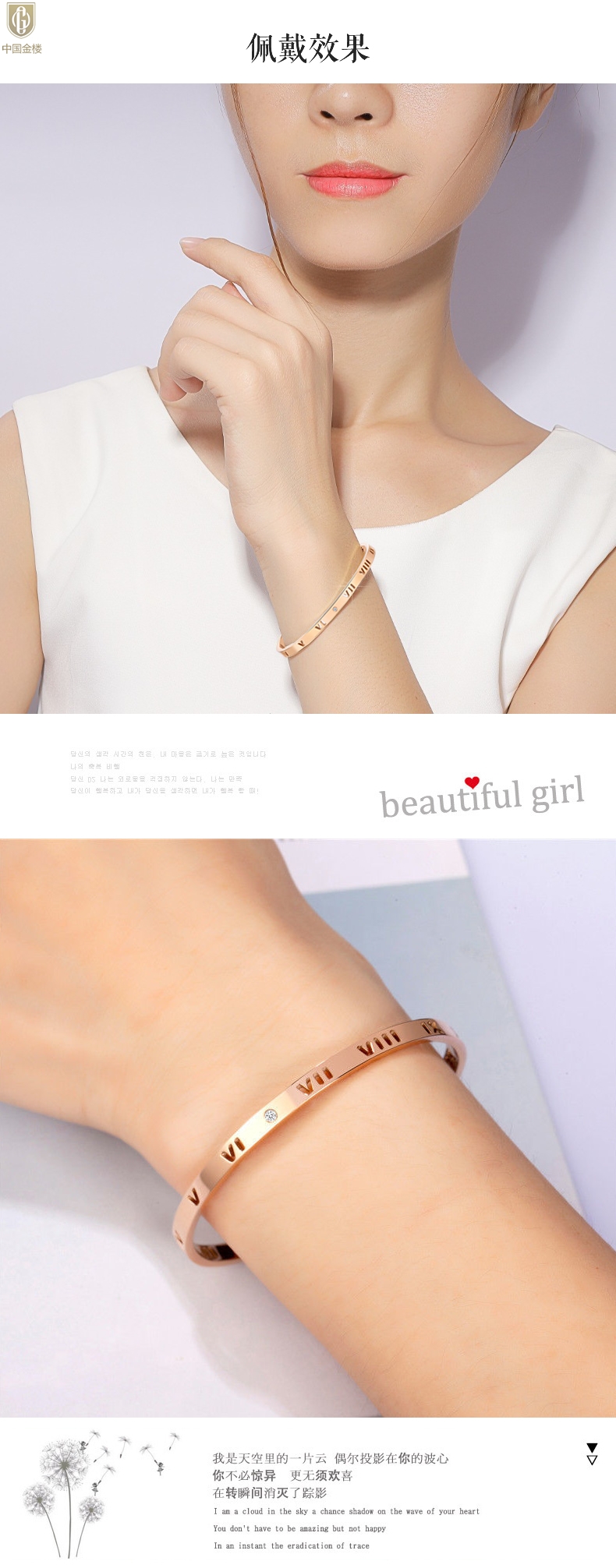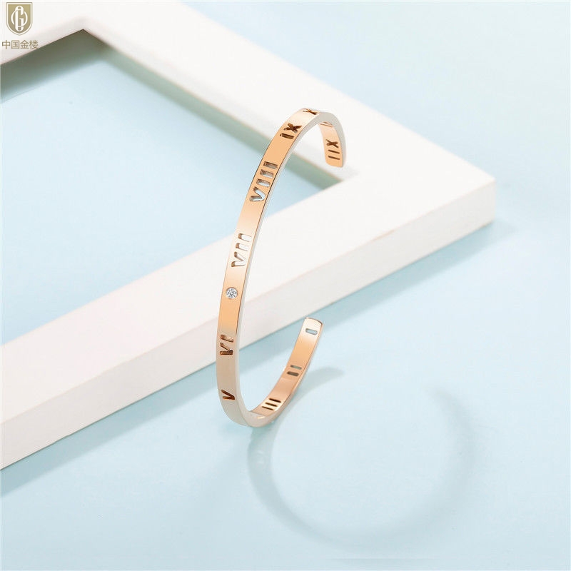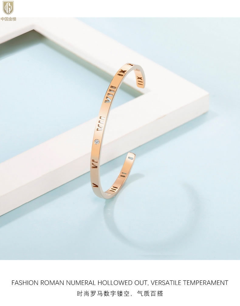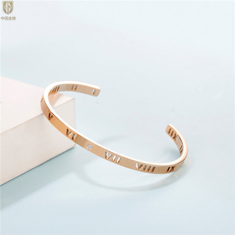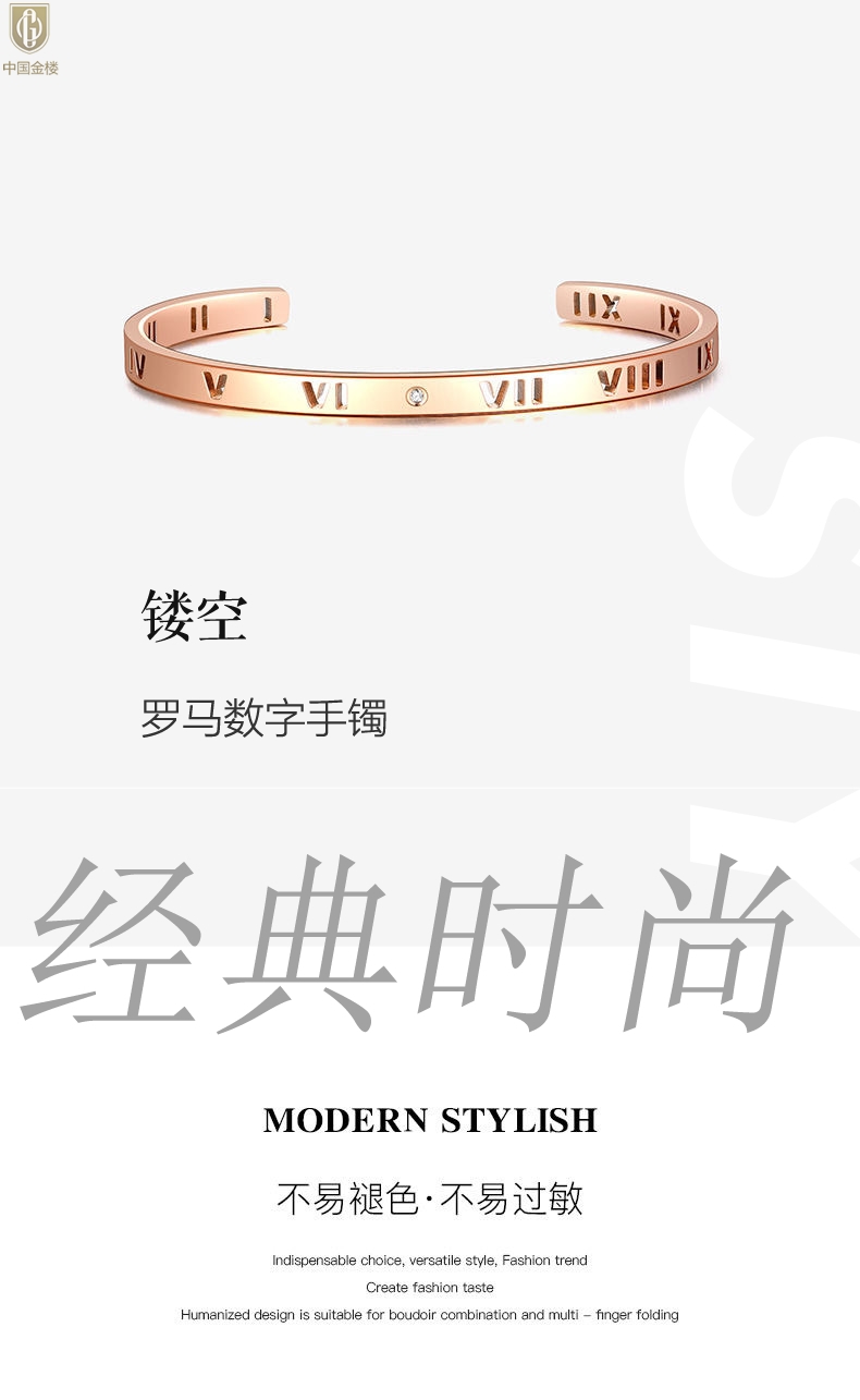 【品名】中国金楼18K镶钻南非真钻镂空罗马手镯