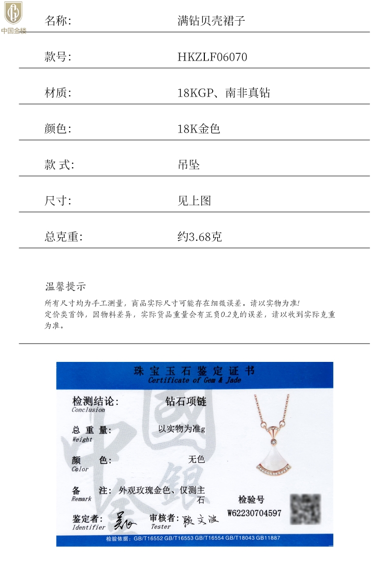【套装包含】首饰+礼品盒+礼品袋+国检证书+质保单+价签
