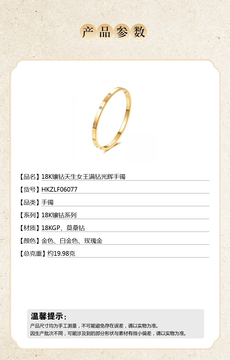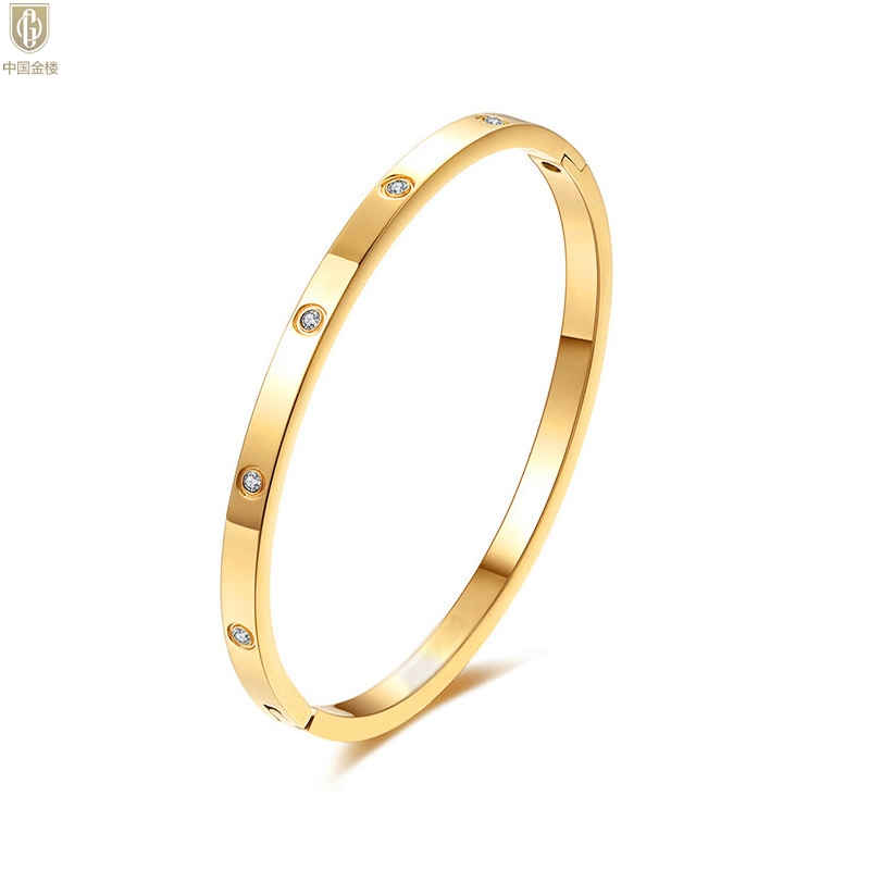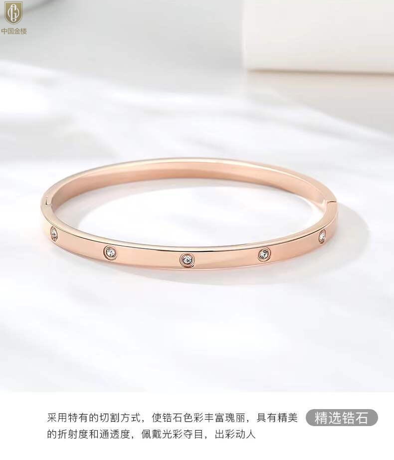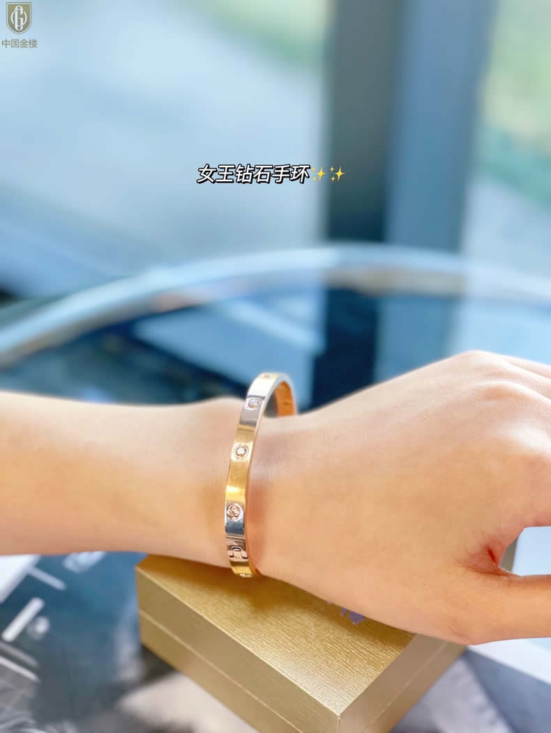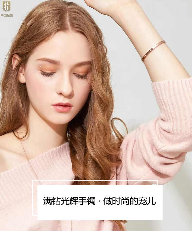 【品名】中国金楼18K镶钻天生女王满钻光辉手镯