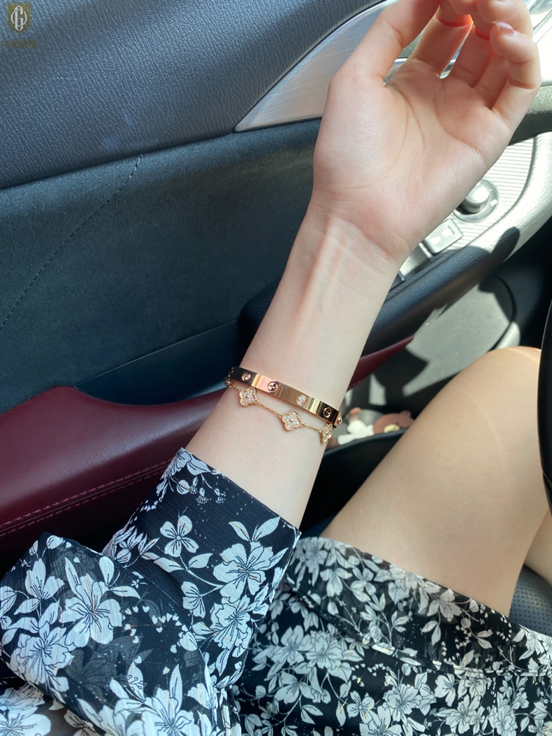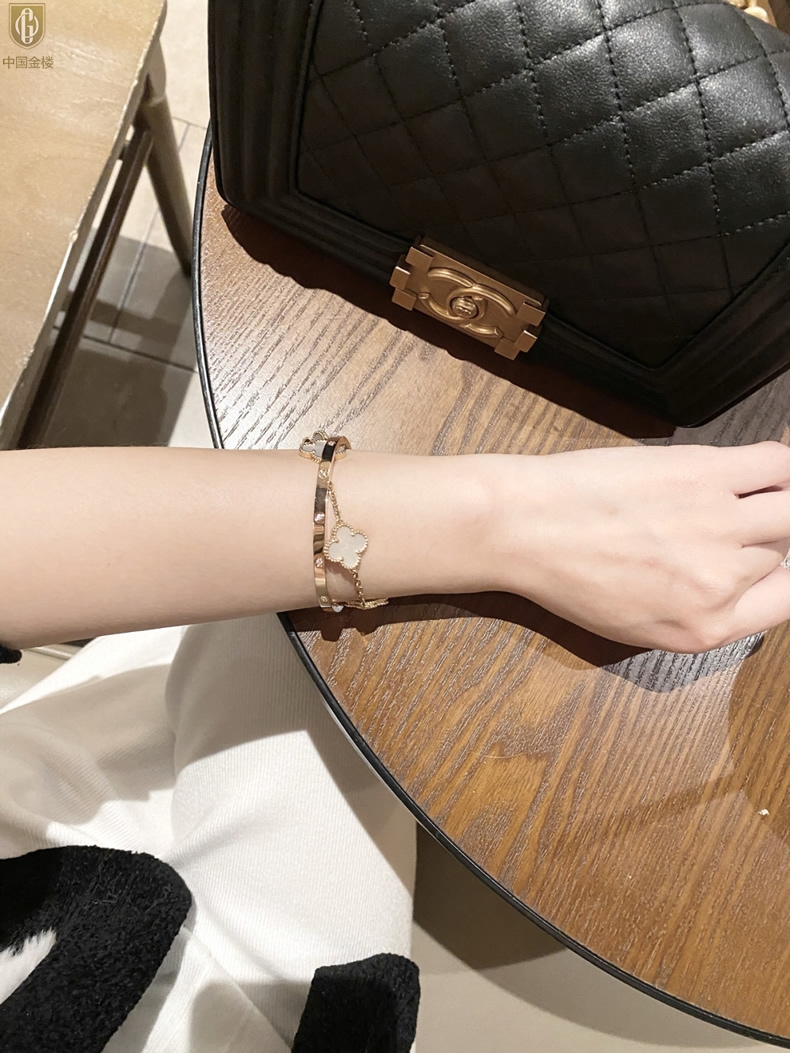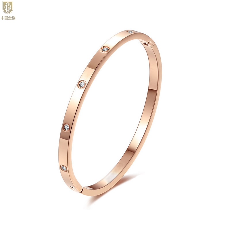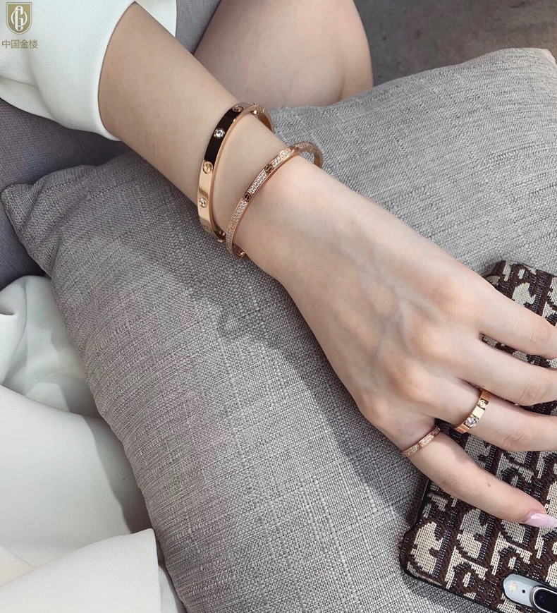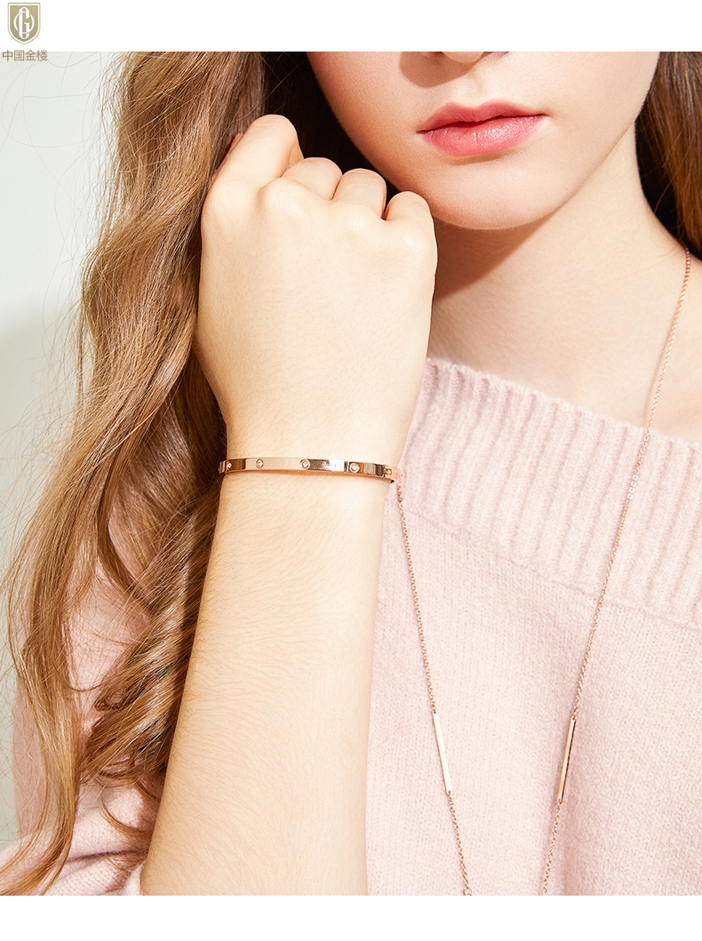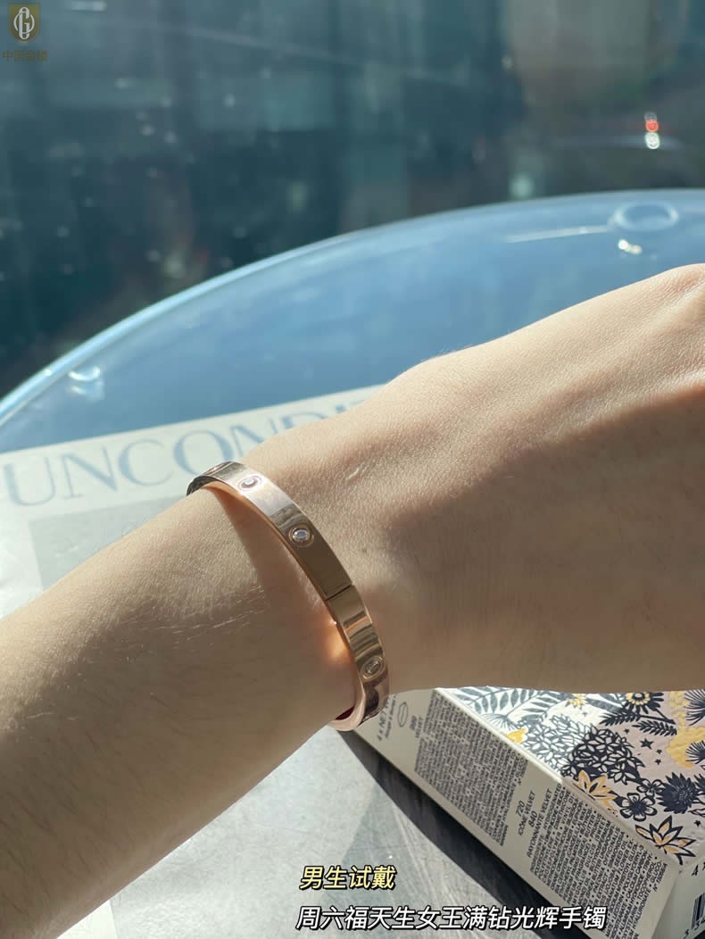 【品名】中国金楼18K镶钻天生女王满钻光辉手镯