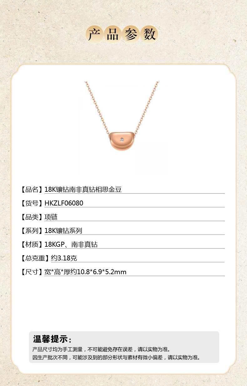 【品名】中国金楼18K镶钻南非真钻相思金豆
