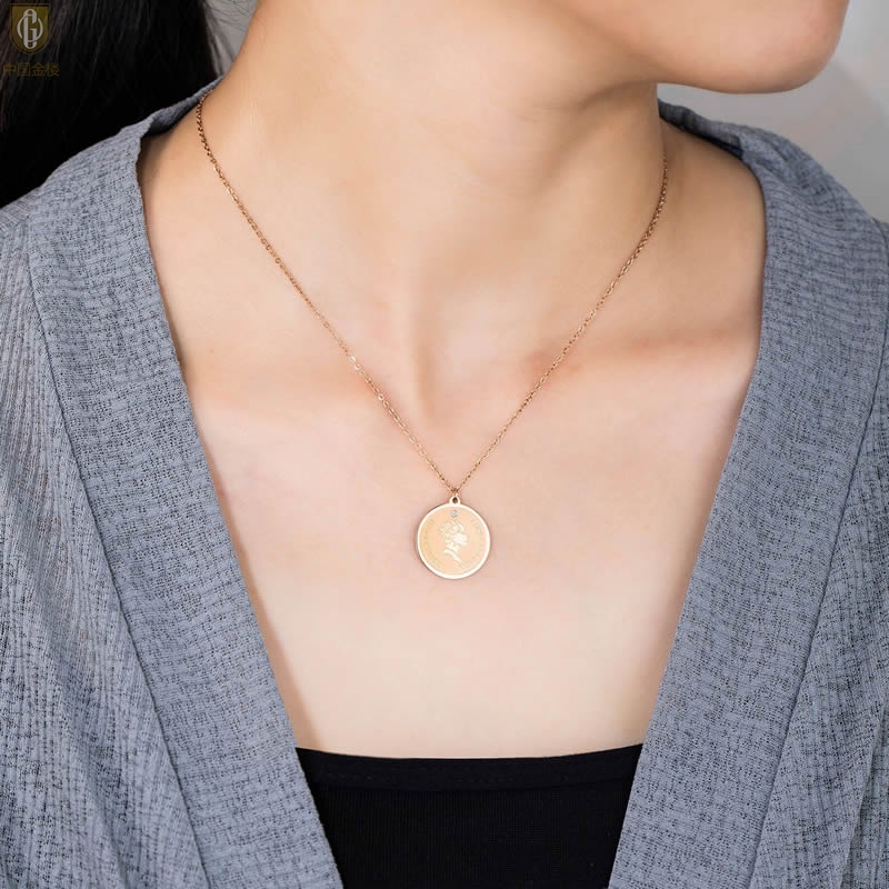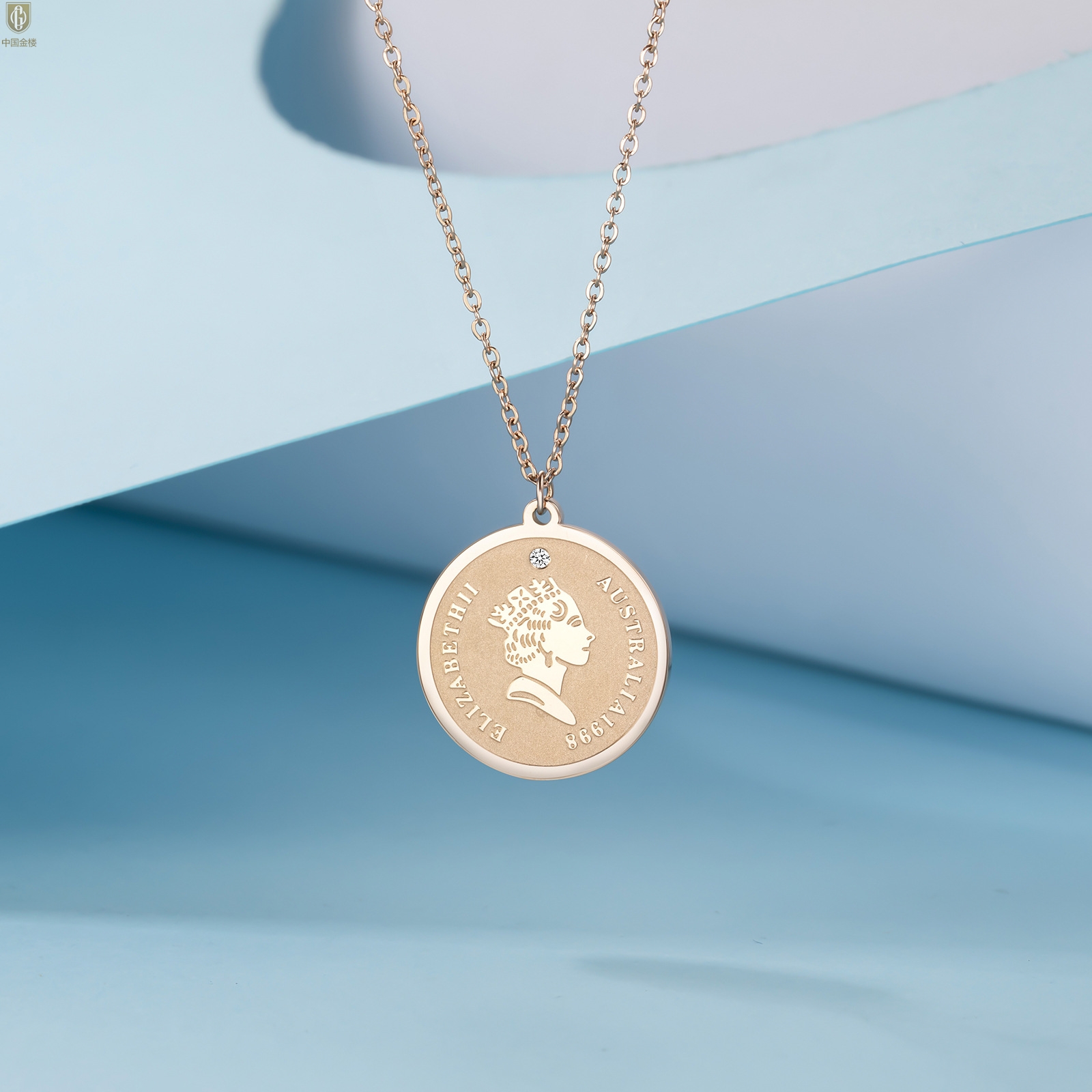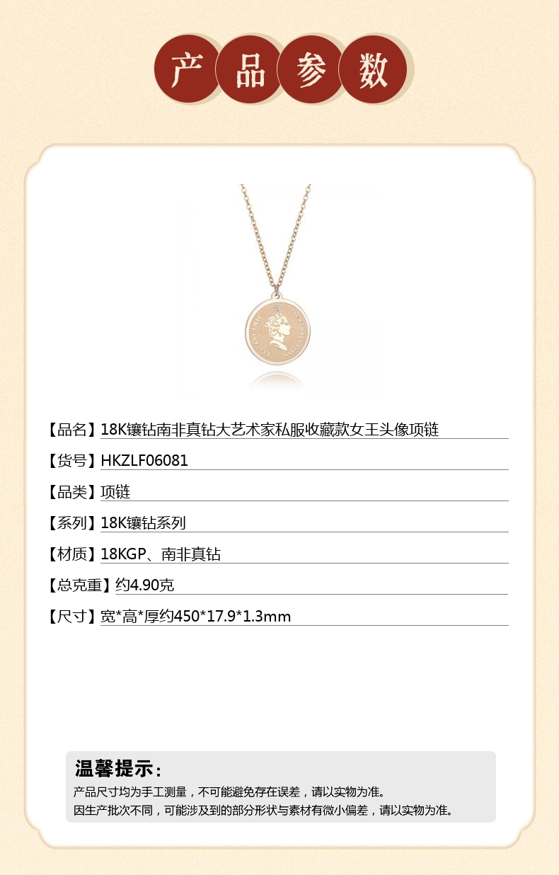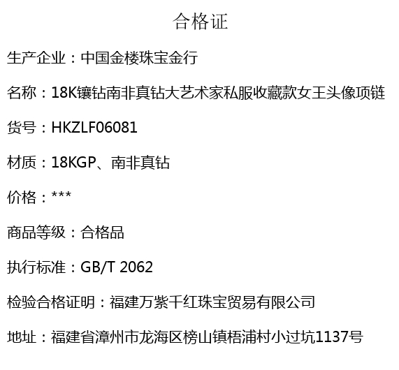 【品名】中国金楼18K镶钻南非真钻大艺术家私服收藏款女王头像项链