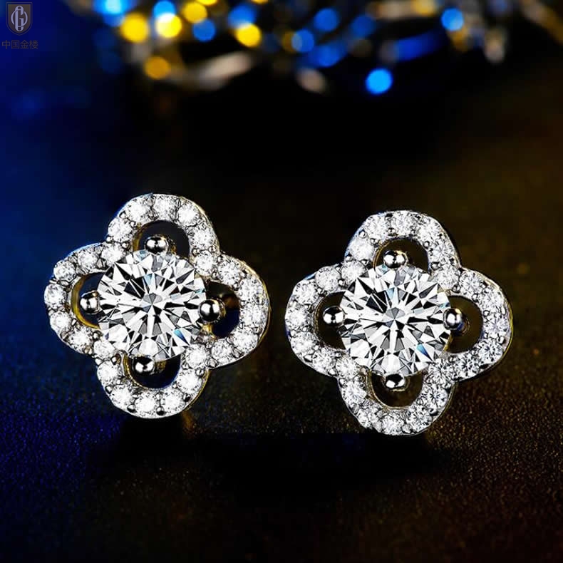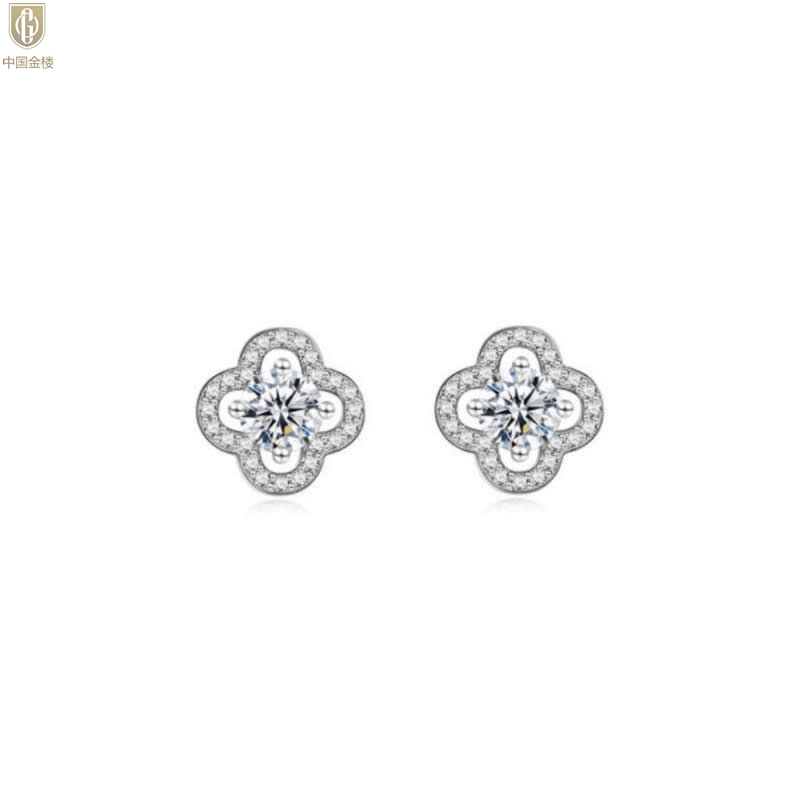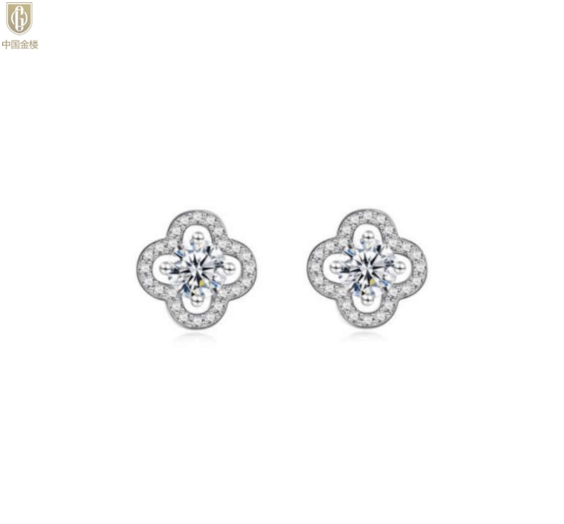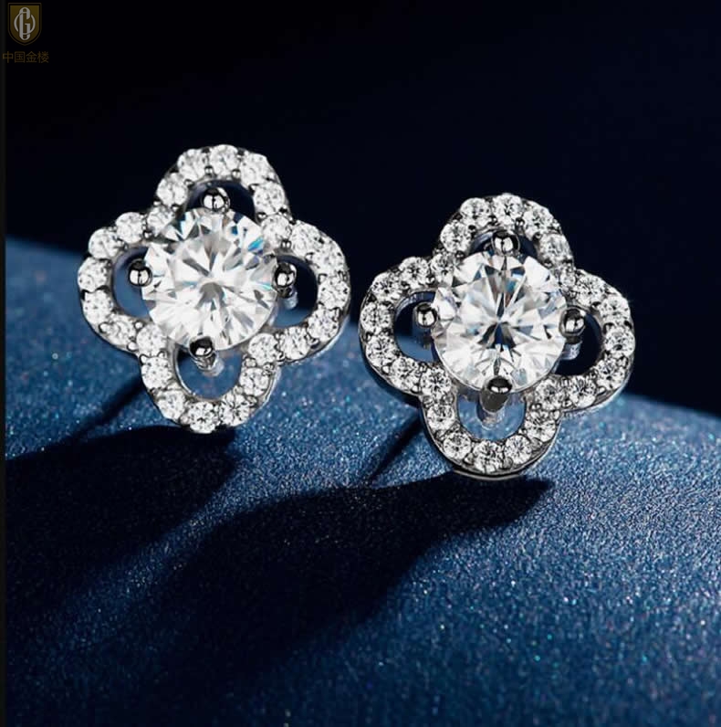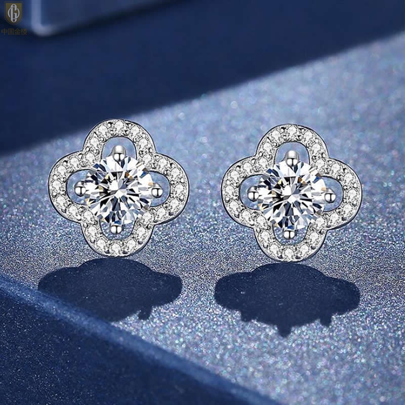 【品名】中国金楼比利时莫桑钻耳钉-四叶草