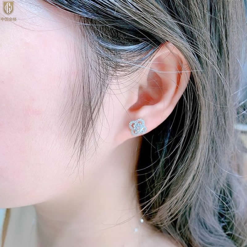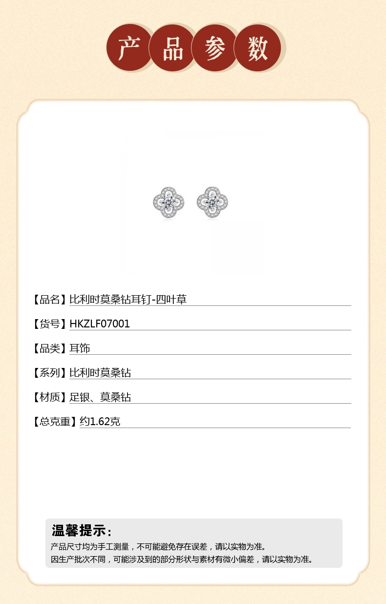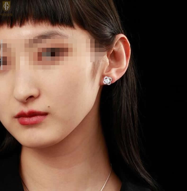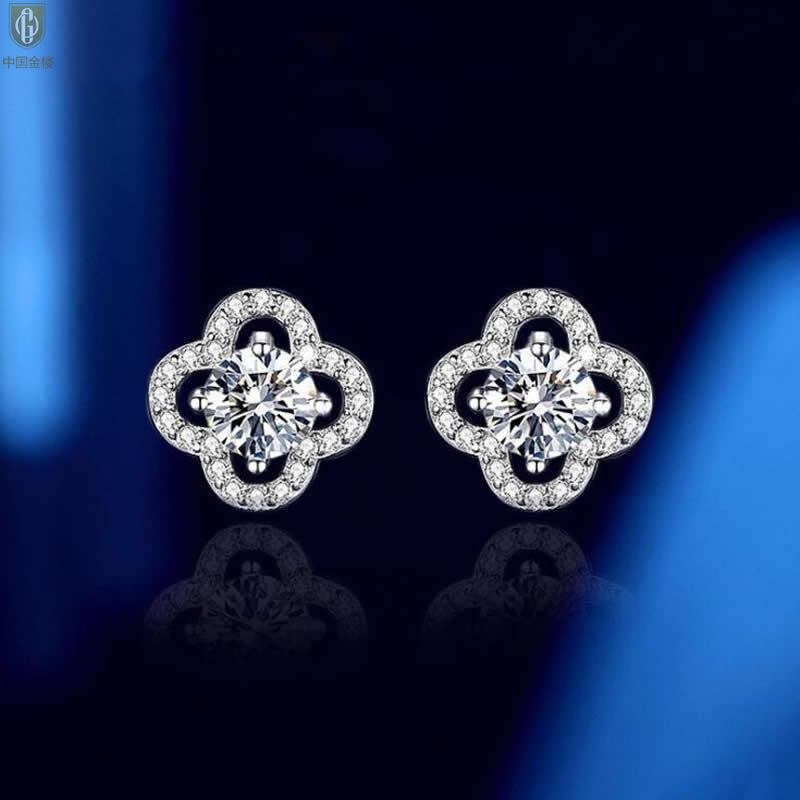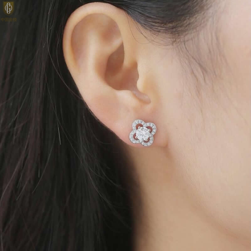 【品名】中国金楼比利时莫桑钻耳钉-四叶草