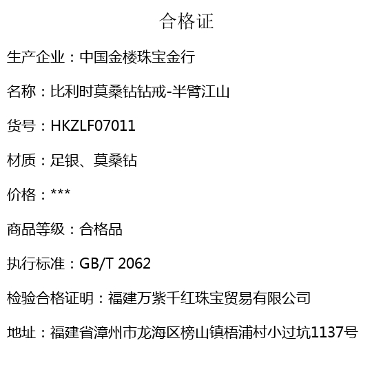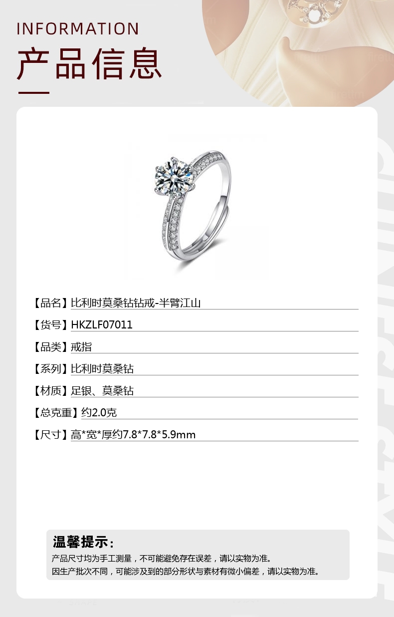 【品名】中国金楼比利时莫桑钻钻戒-半臂江山