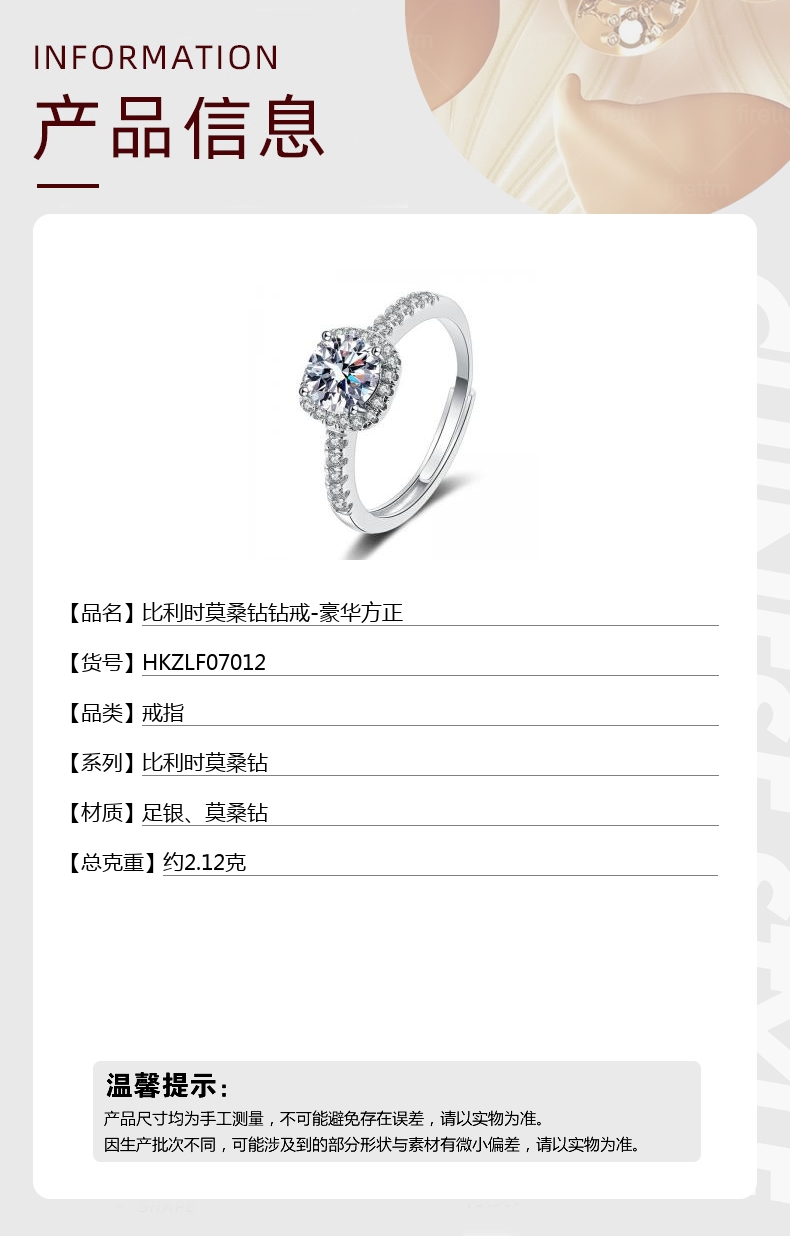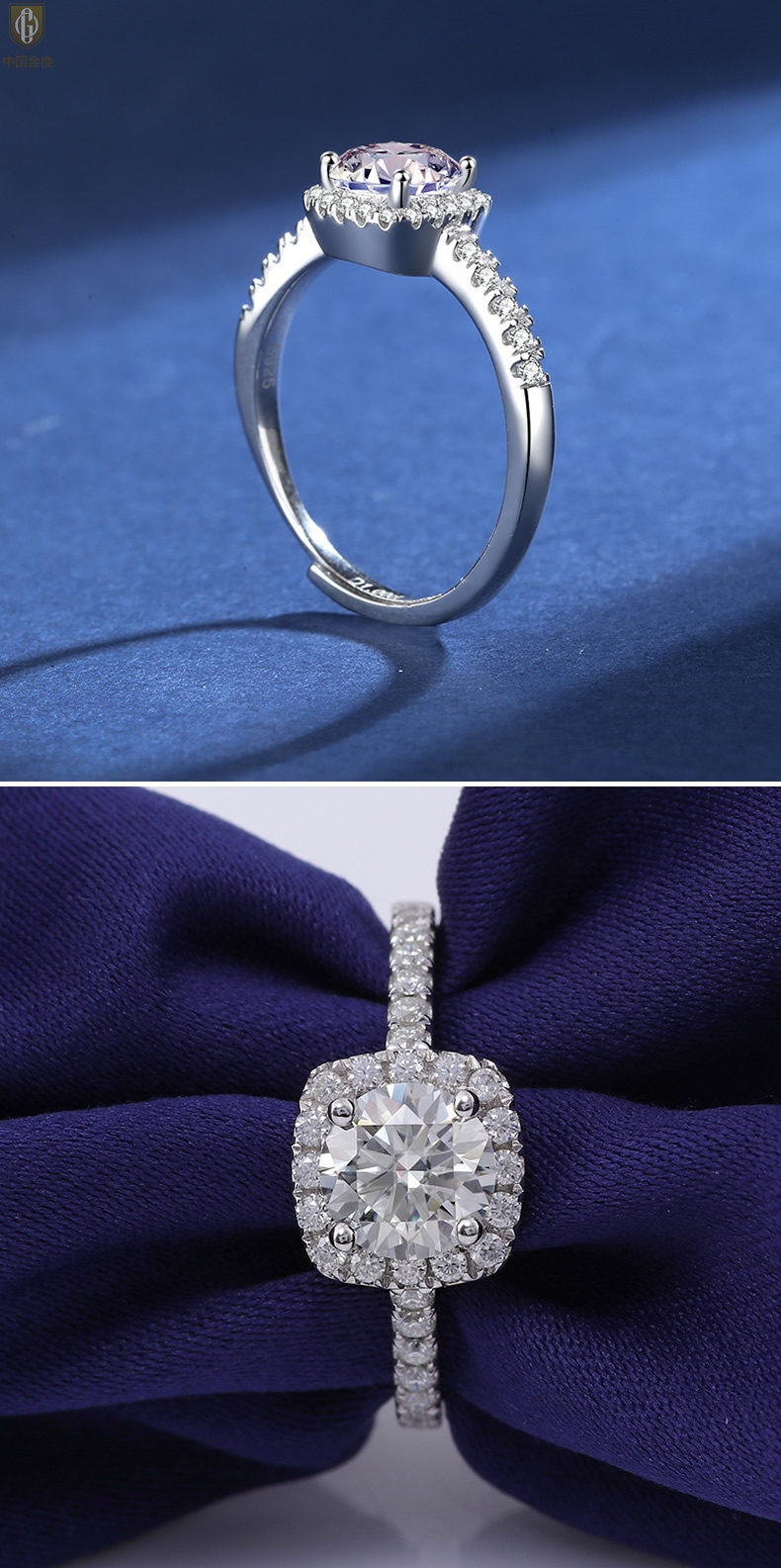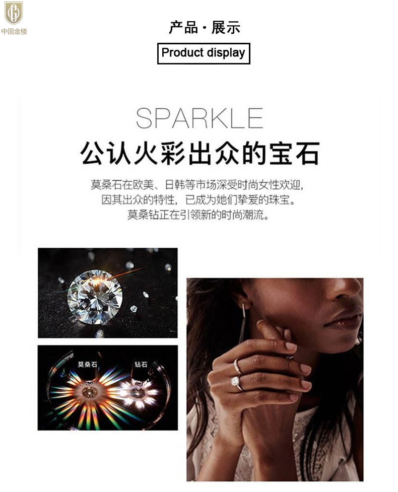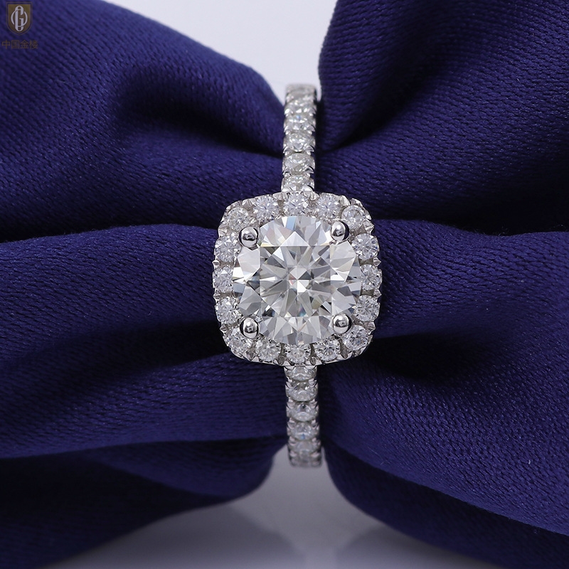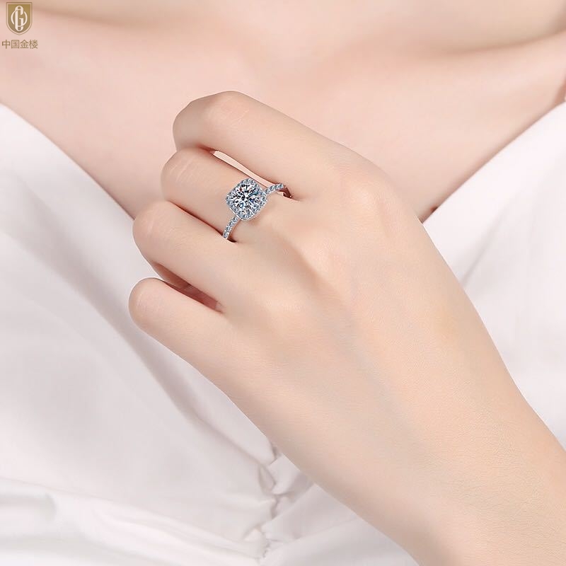 【品名】中国金楼比利时莫桑钻钻戒-豪华方正
