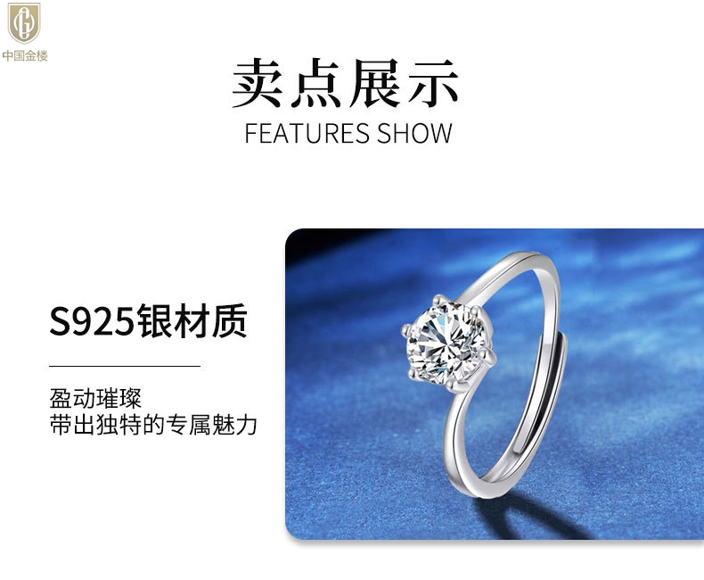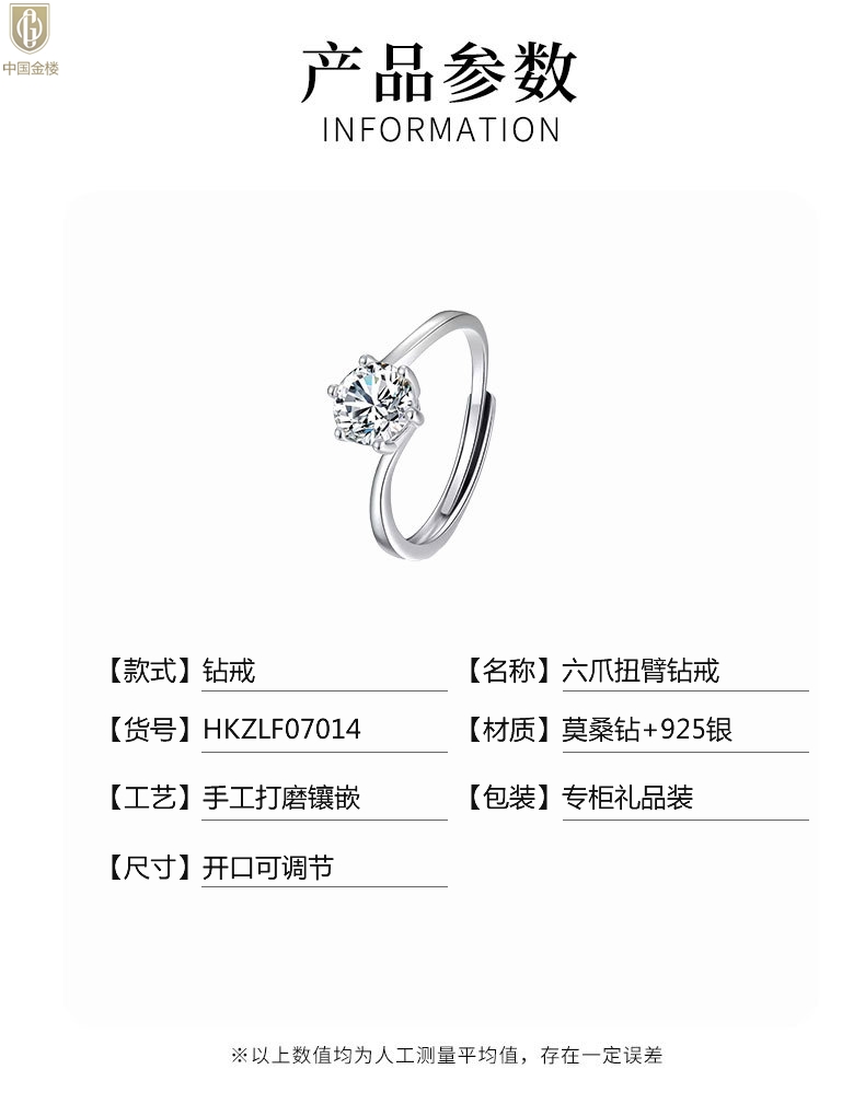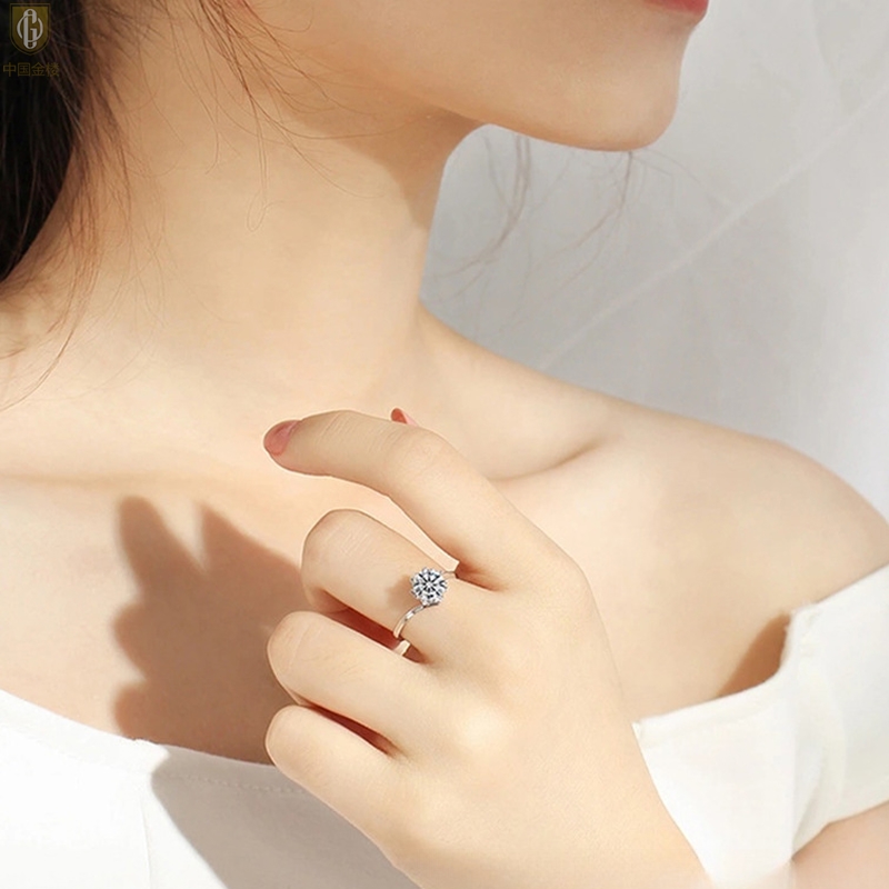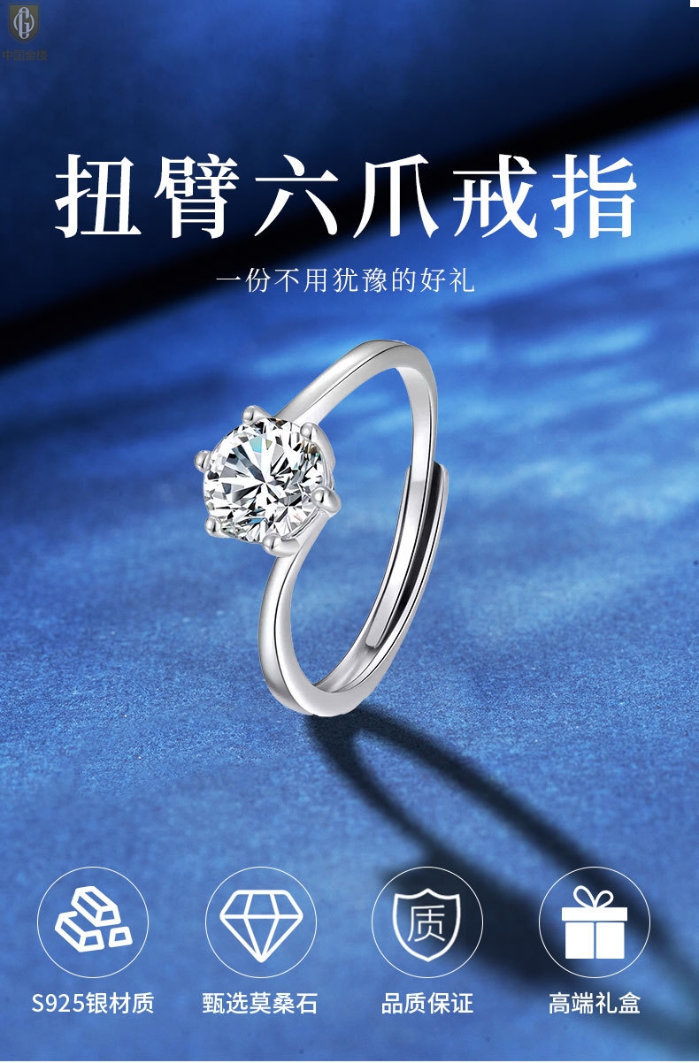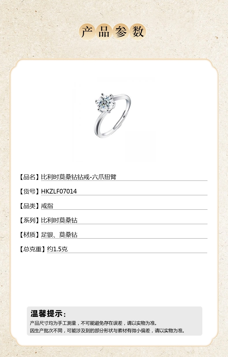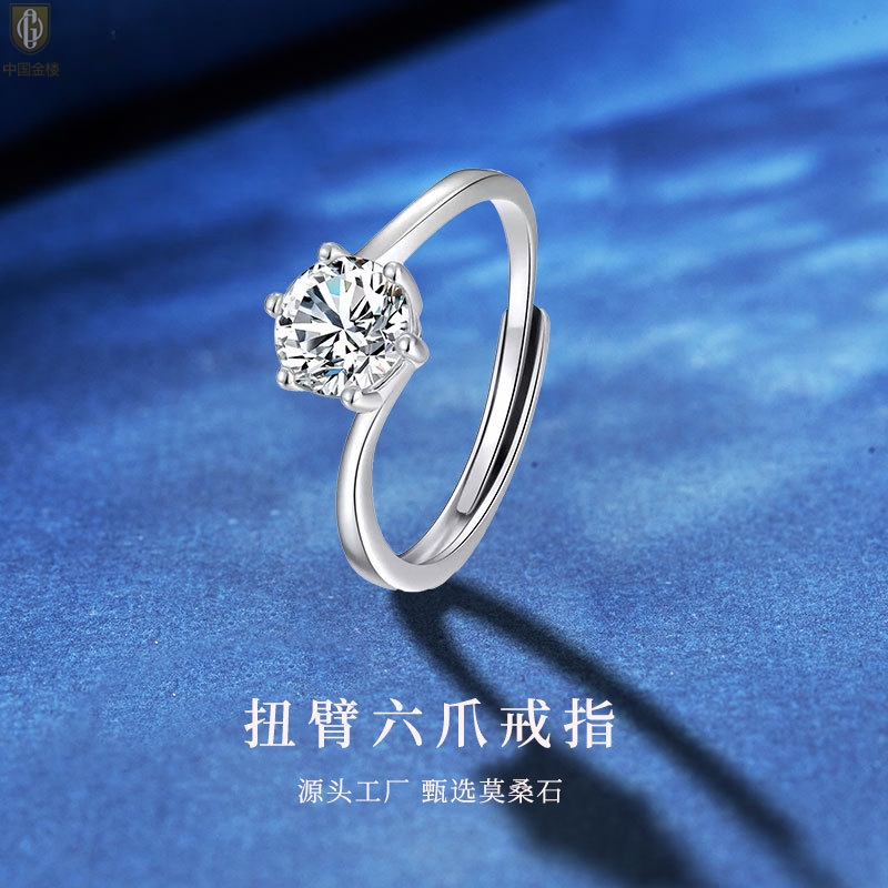 【品名】中国金楼比利时莫桑钻钻戒-六爪扭臂