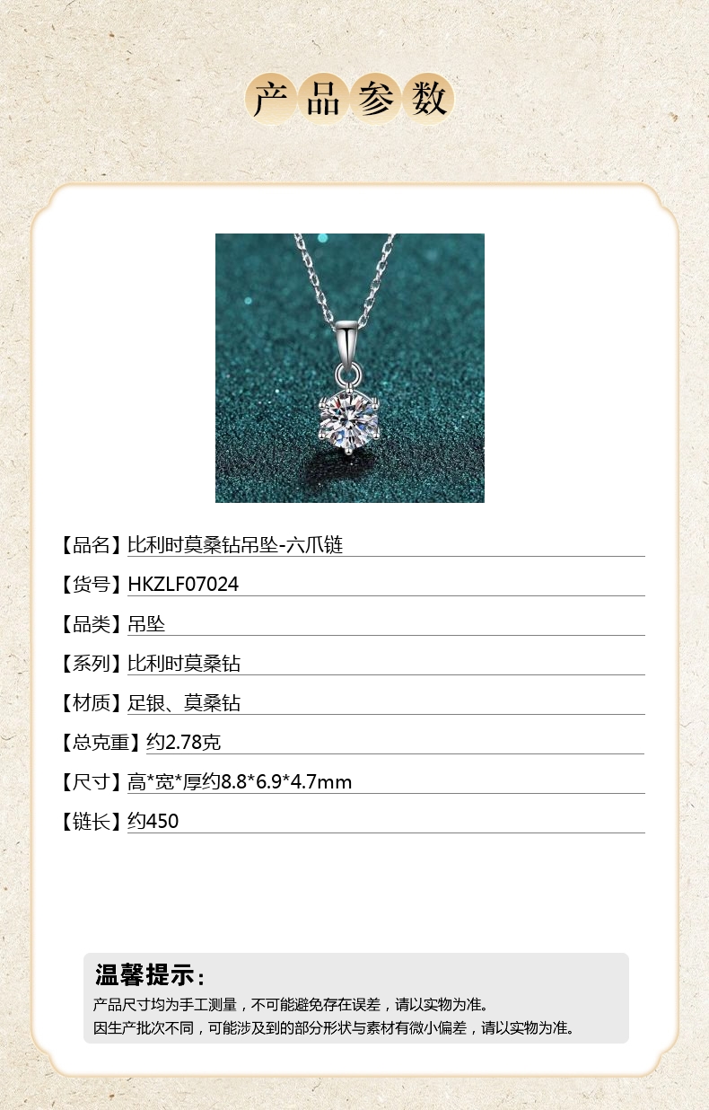 【品名】中国金楼比利时莫桑钻吊坠-六爪链