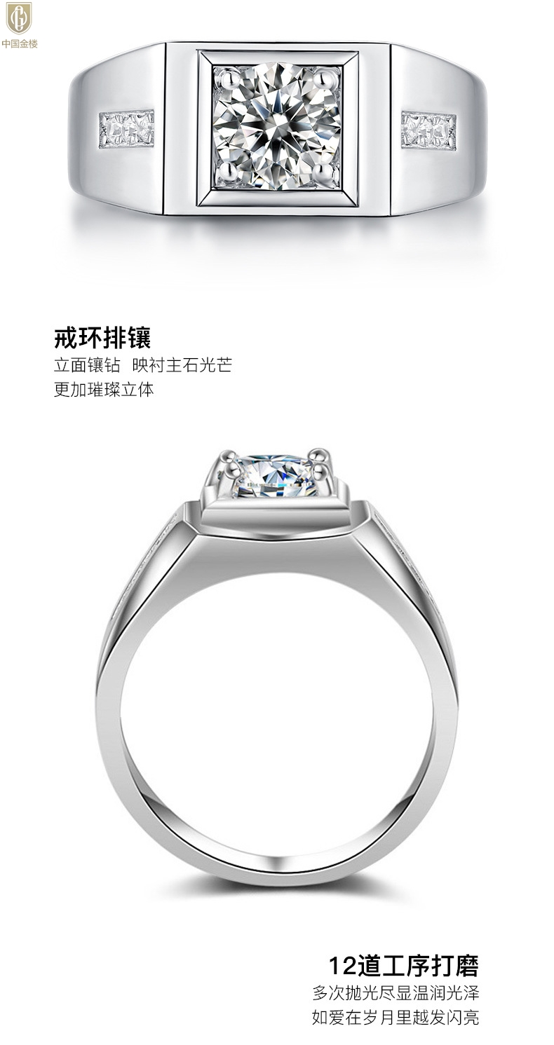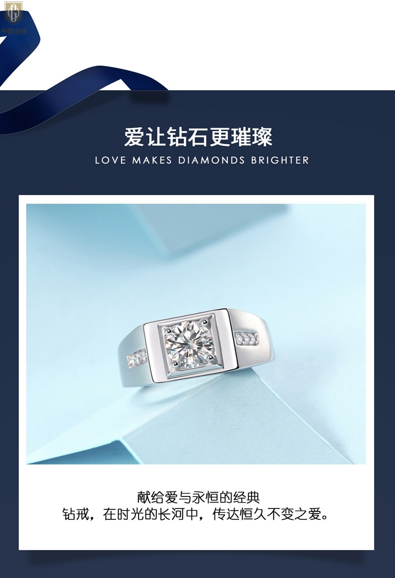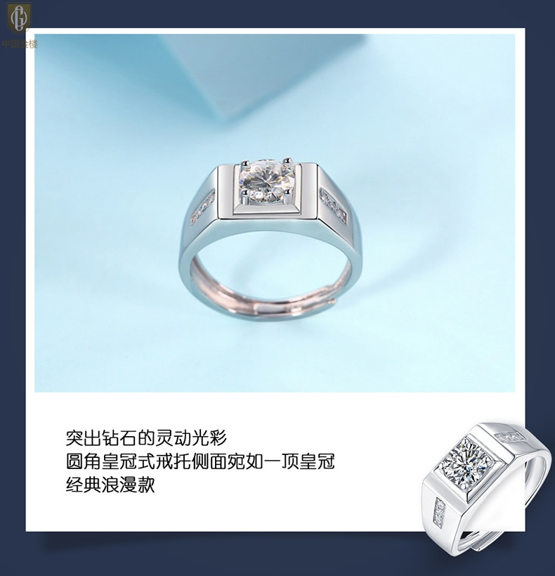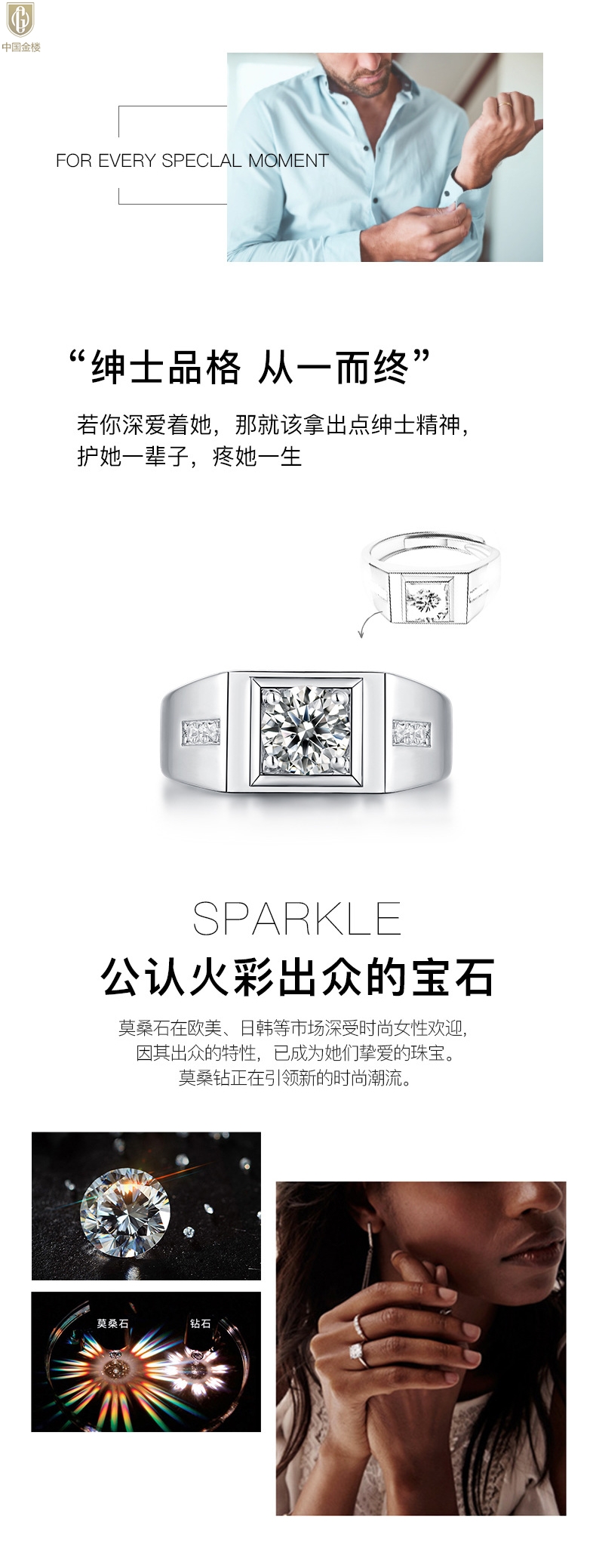 【品名】中国金楼比利时莫桑钻钻戒-单排带钻
