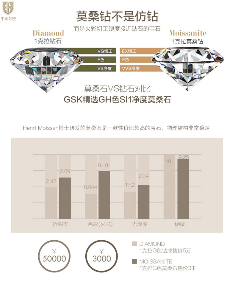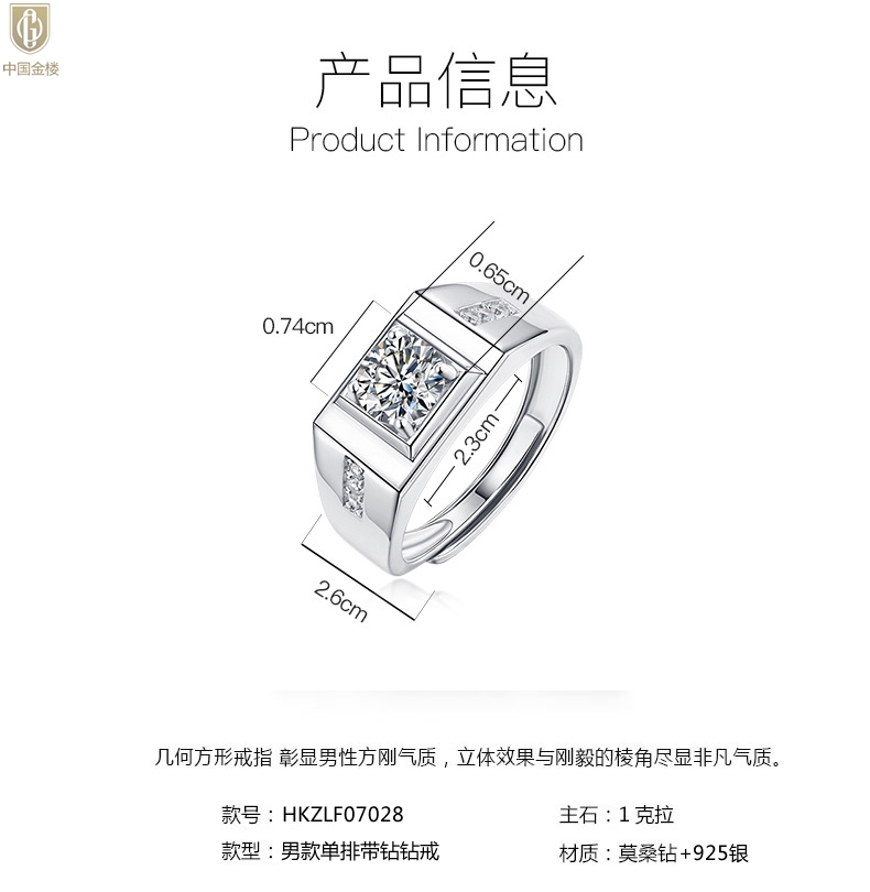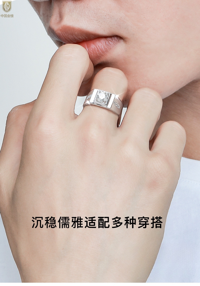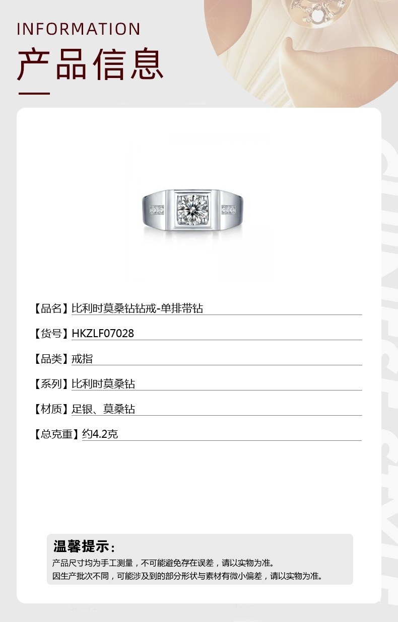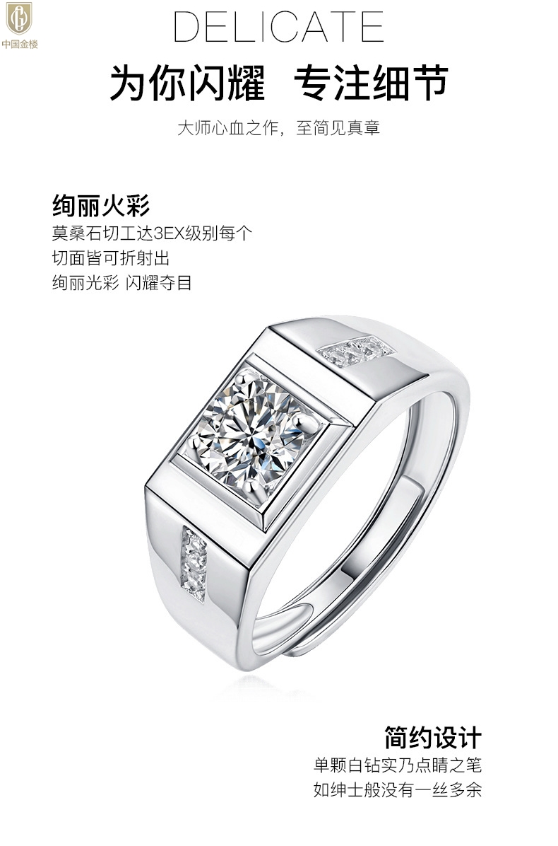 【品名】中国金楼比利时莫桑钻钻戒-单排带钻