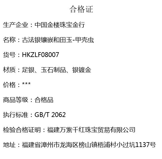 【品名】中国金楼古法银镶嵌和田玉-甲壳虫
