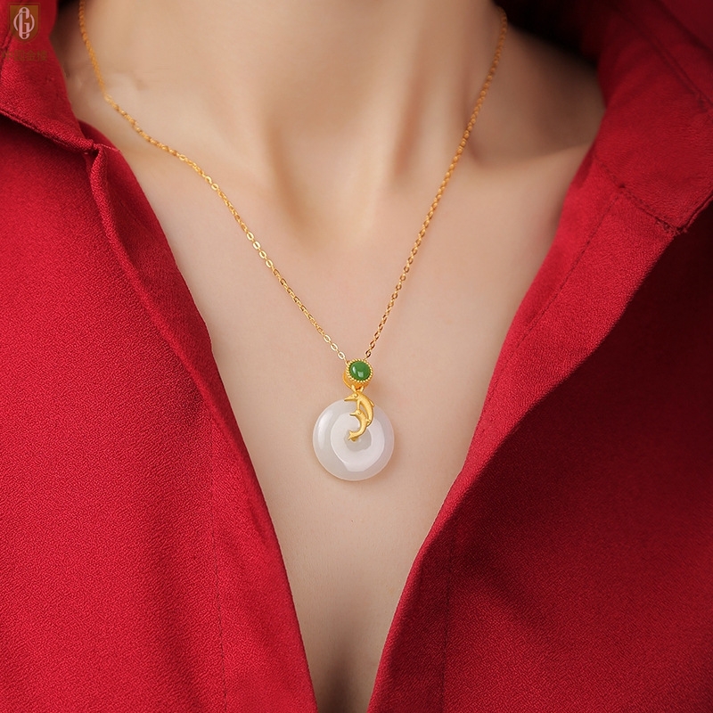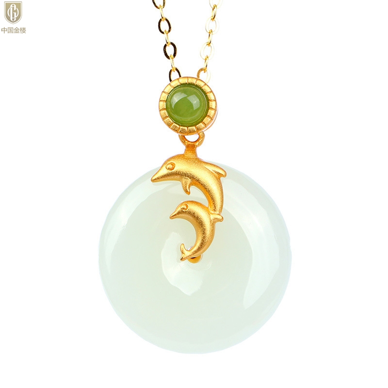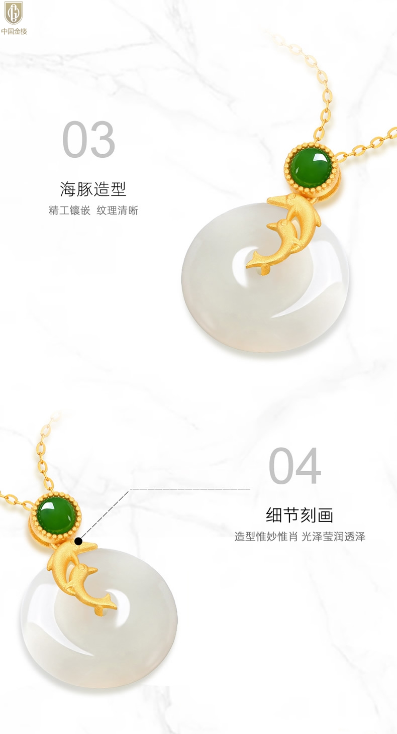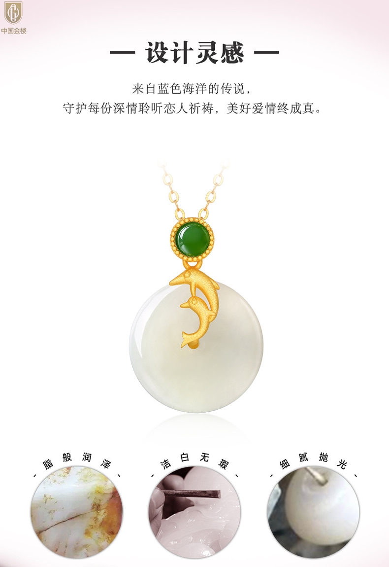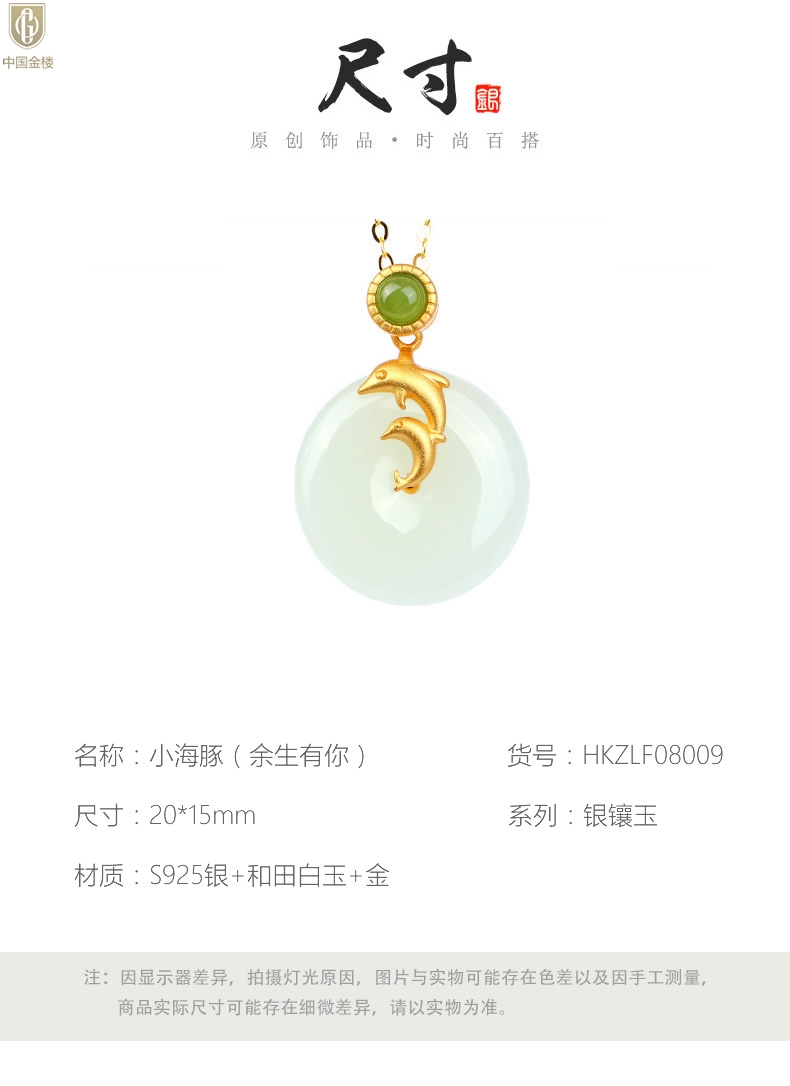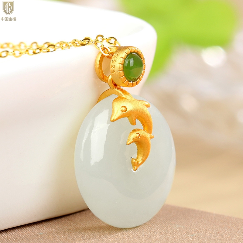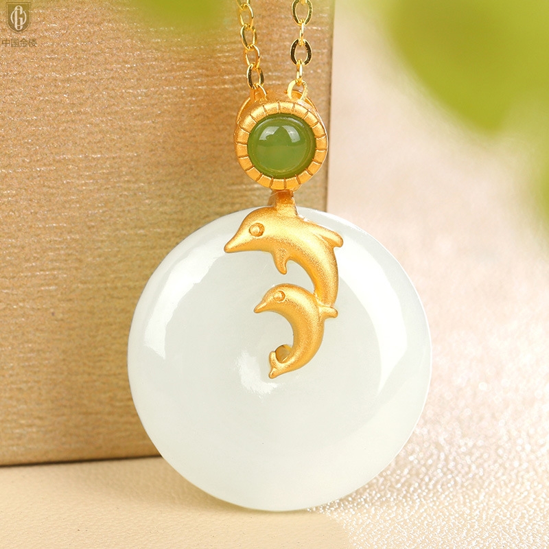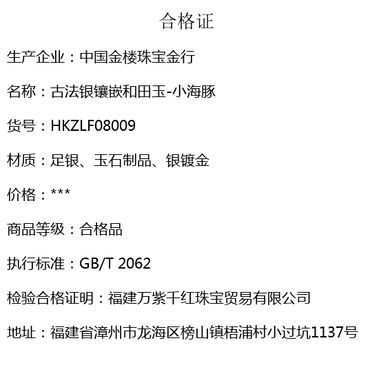 【品名】中国金楼古法银镶嵌和田玉-小海豚