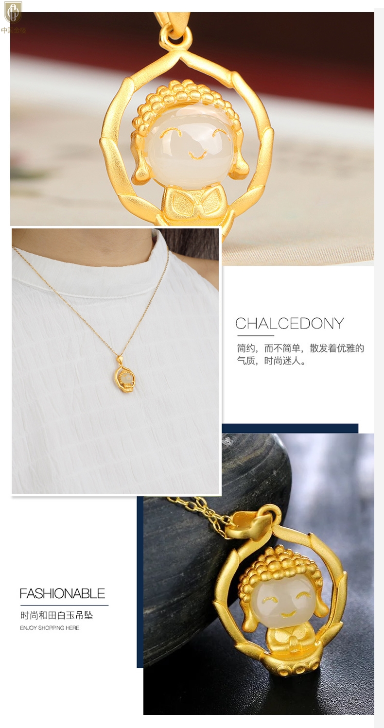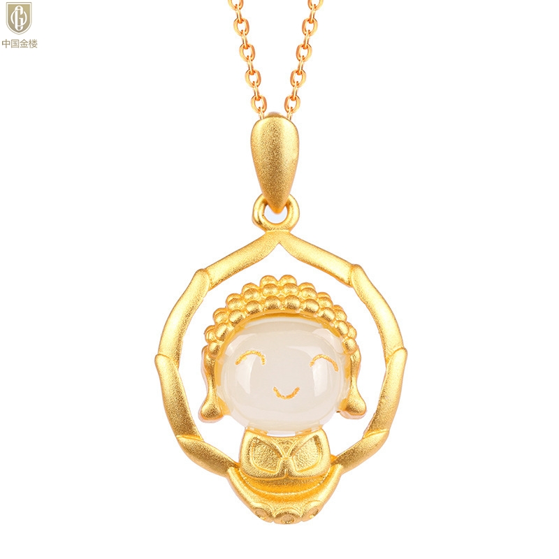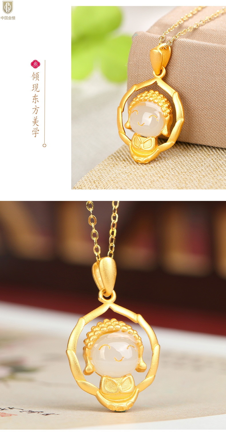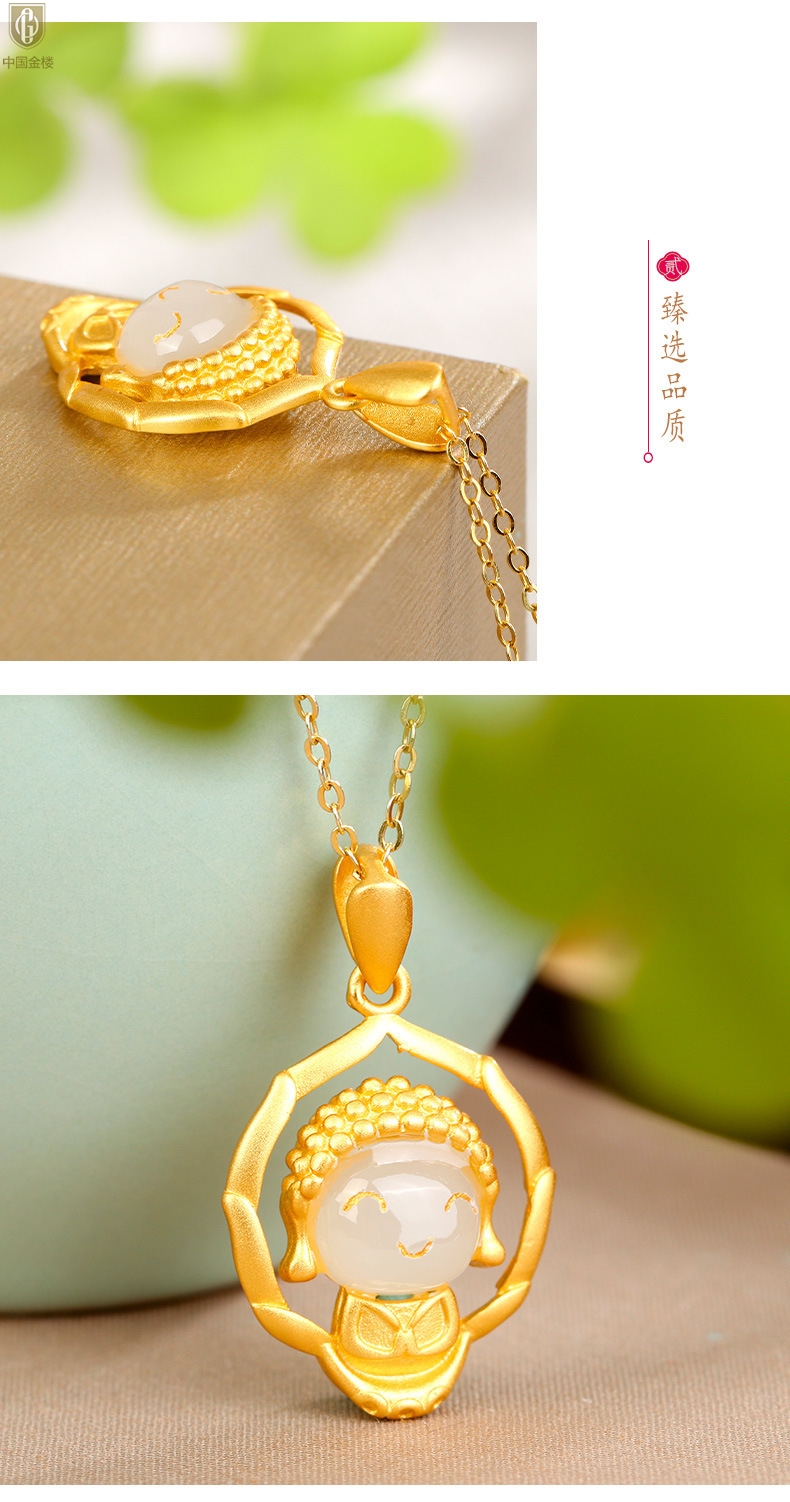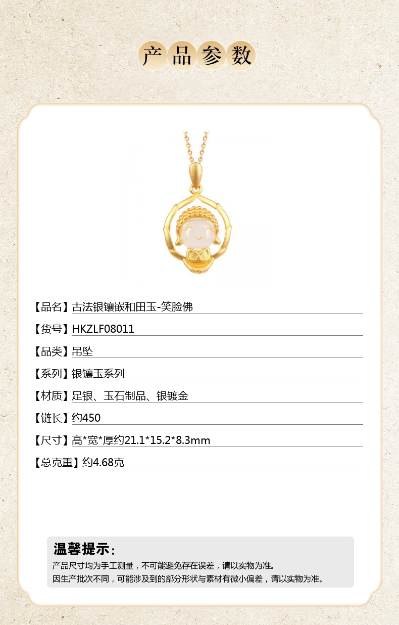 【品名】中国金楼古法银镶嵌和田玉-笑脸佛