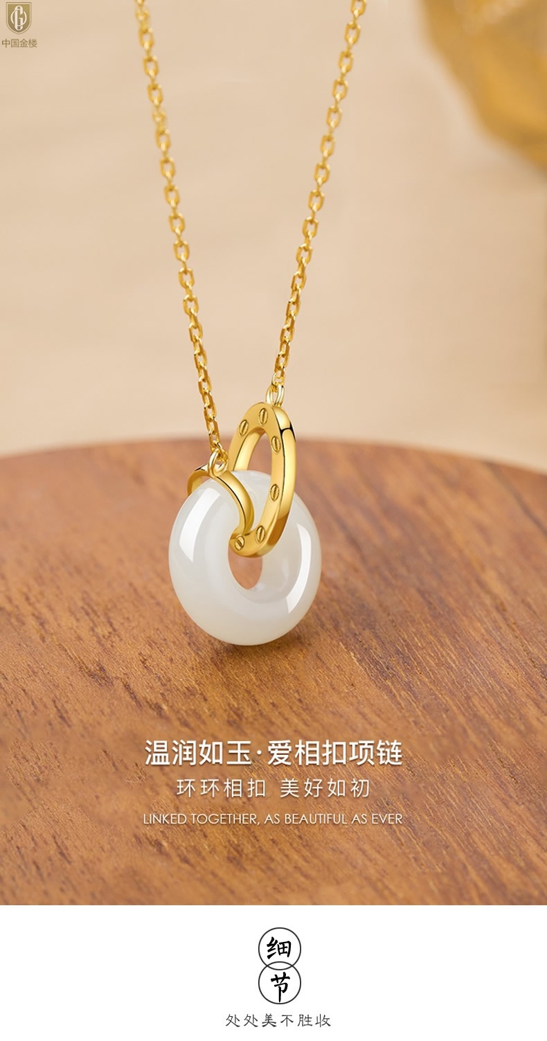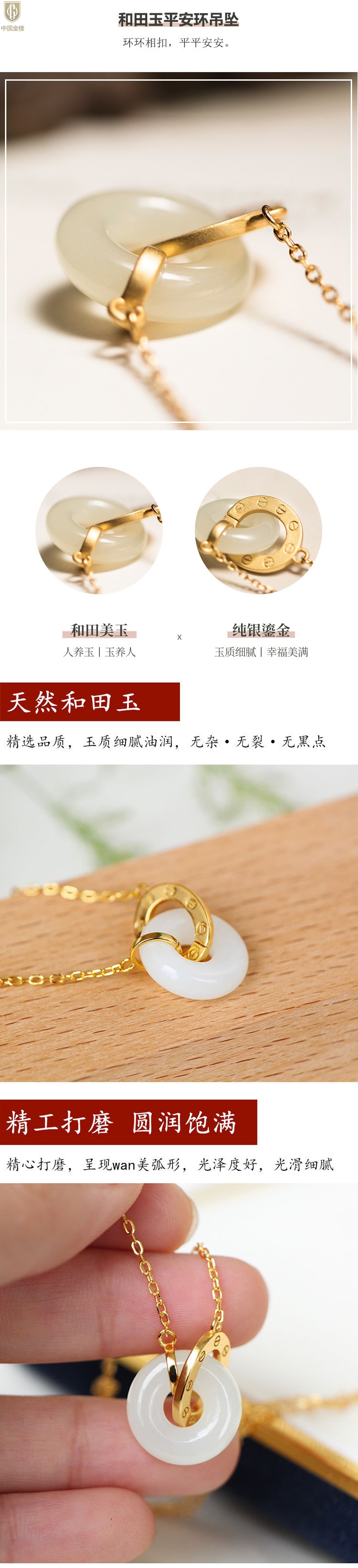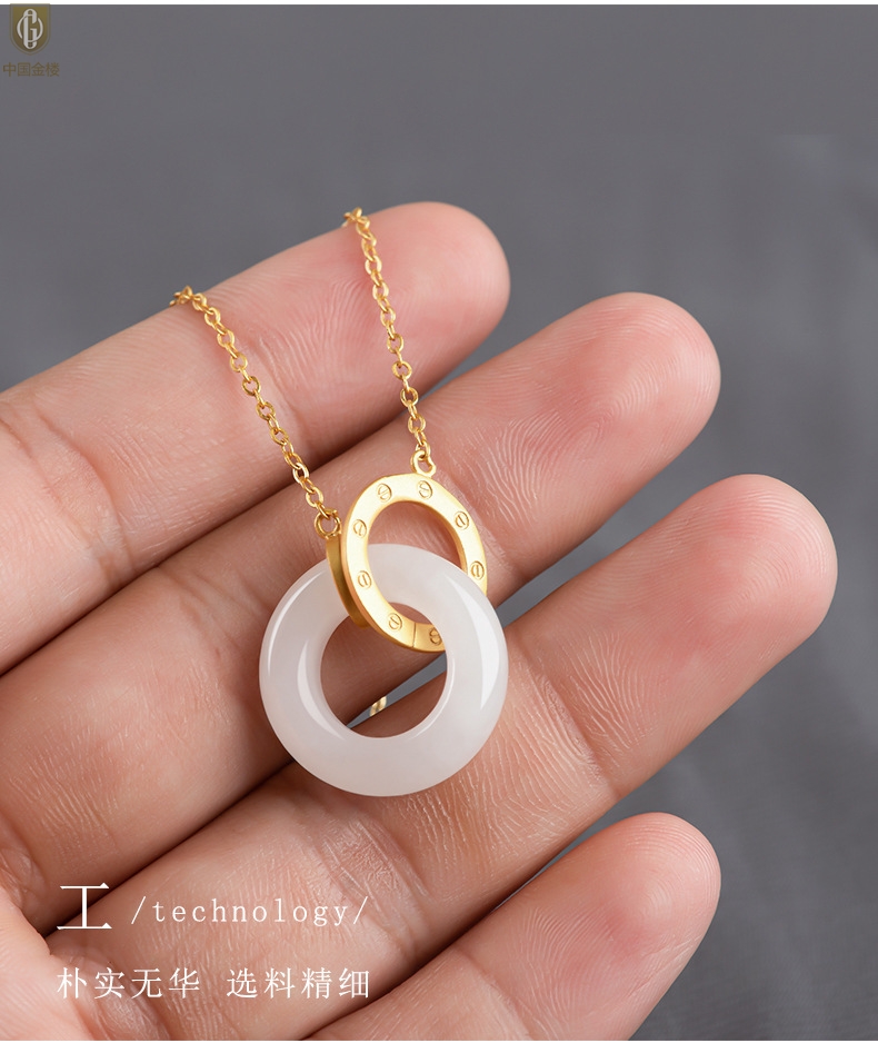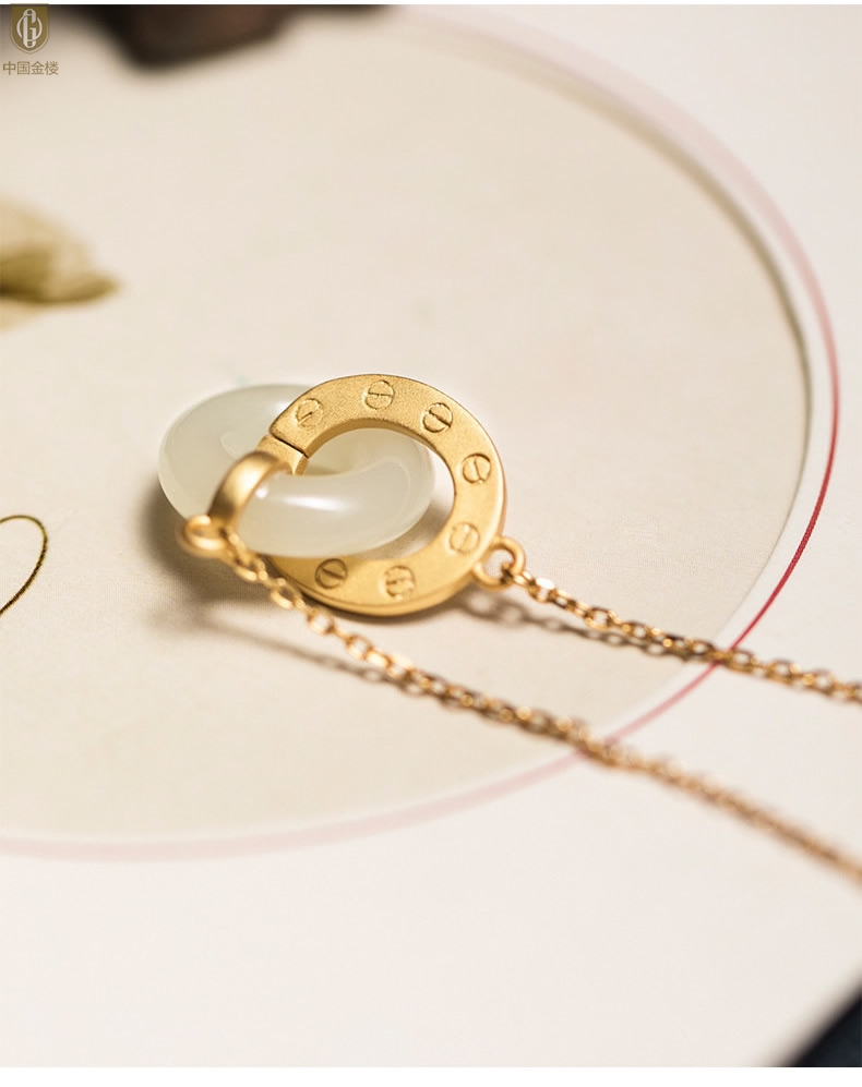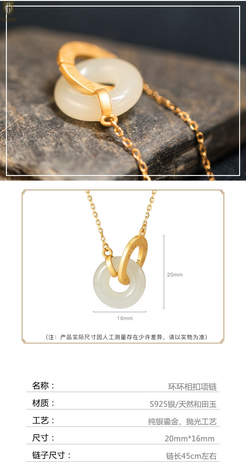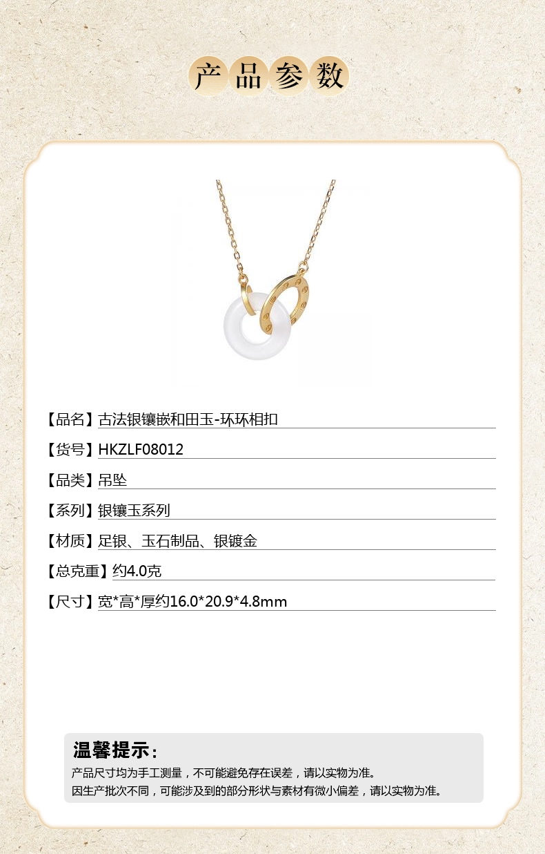 【品名】中国金楼古法银镶嵌和田玉-环环相扣