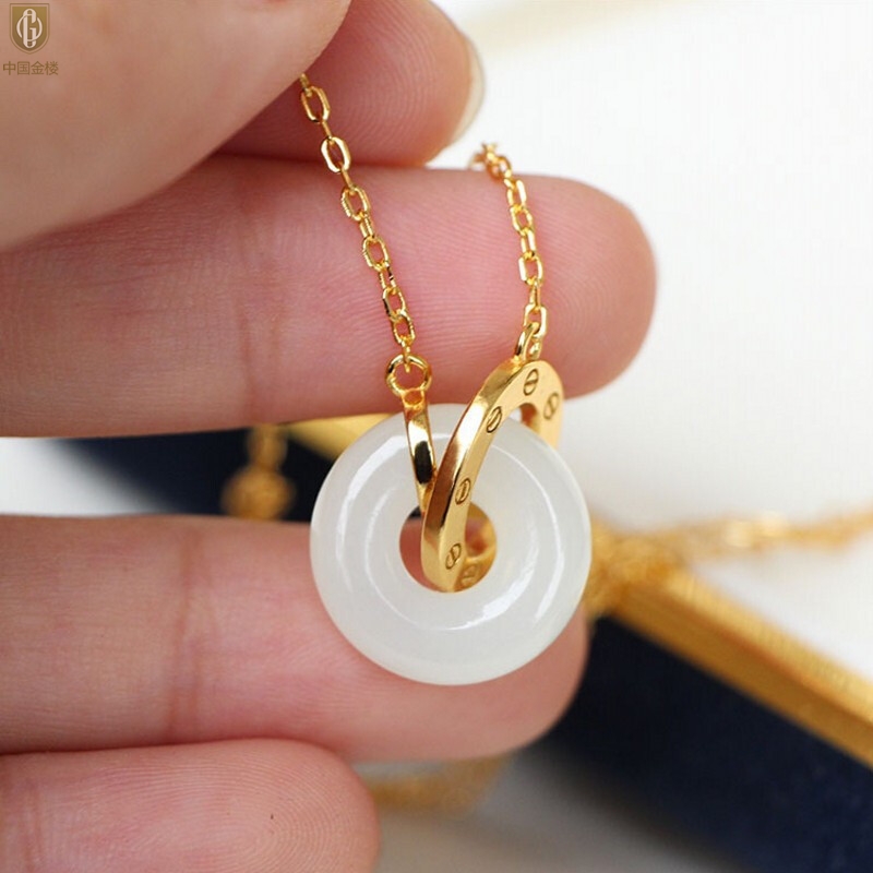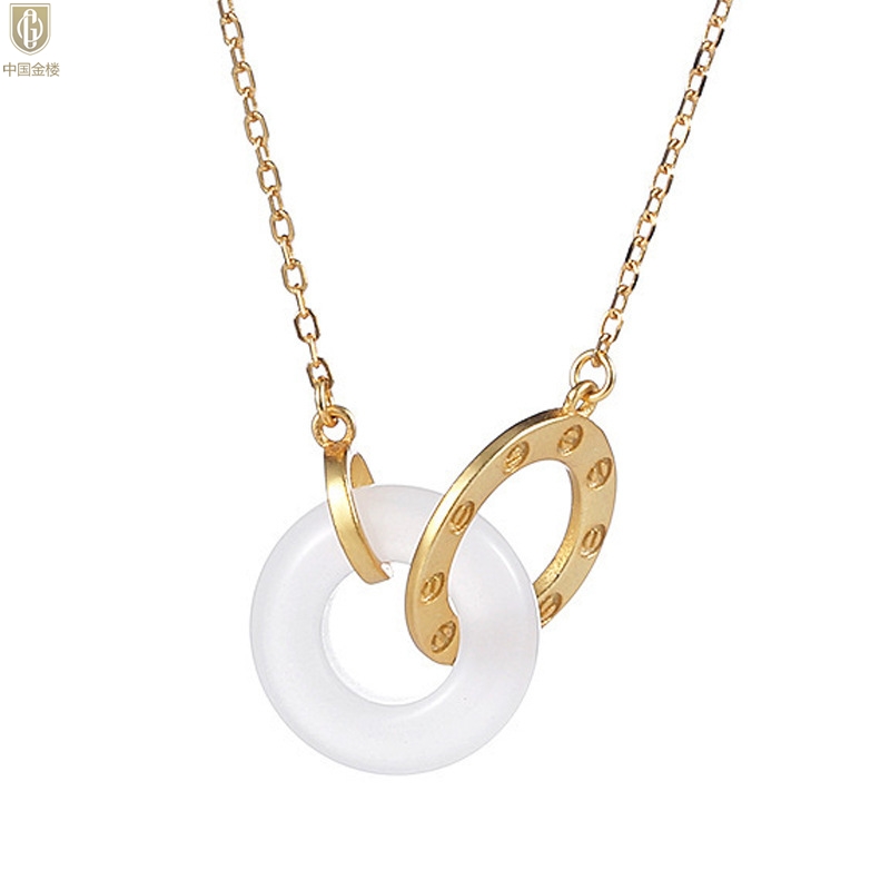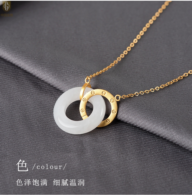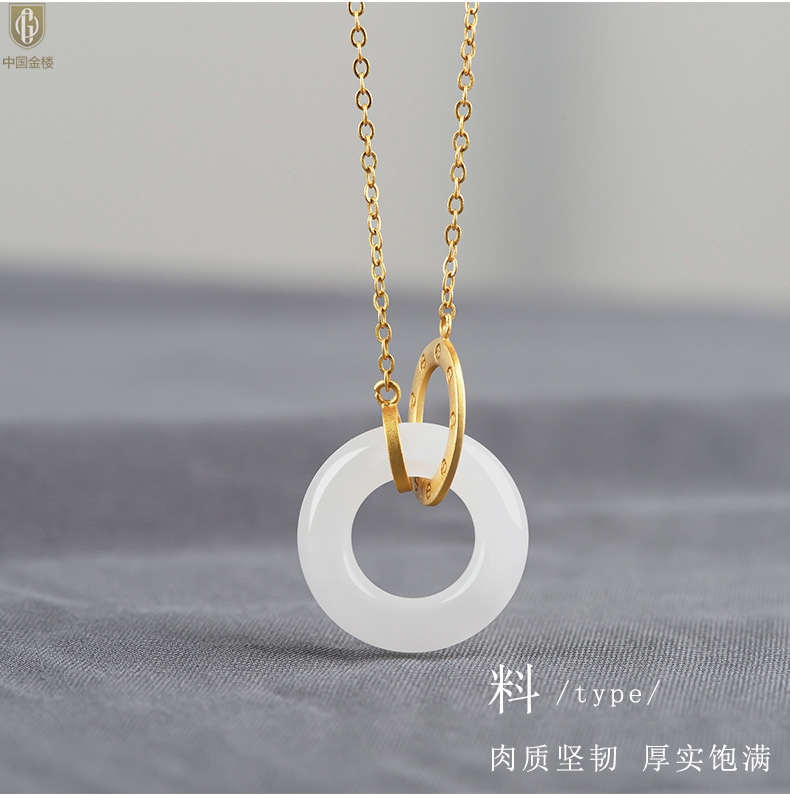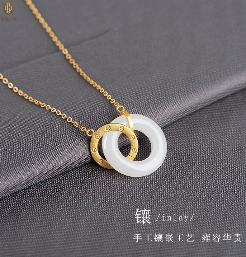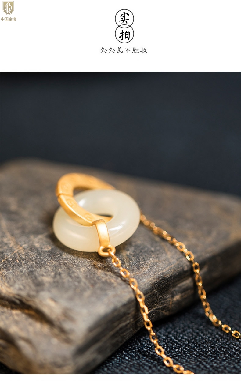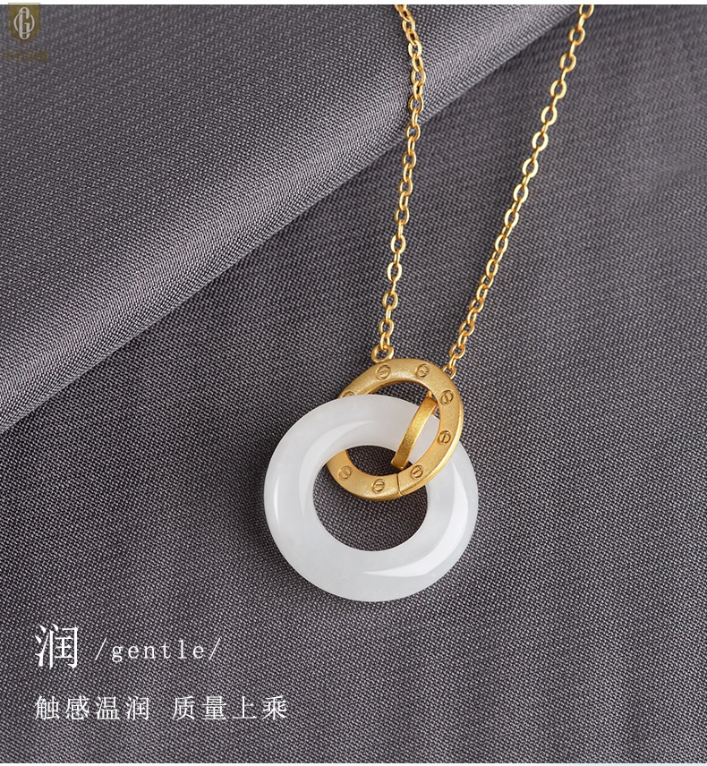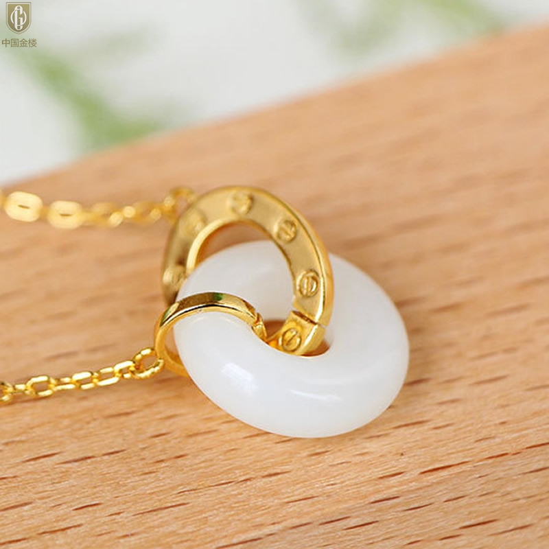 【品名】中国金楼古法银镶嵌和田玉-环环相扣