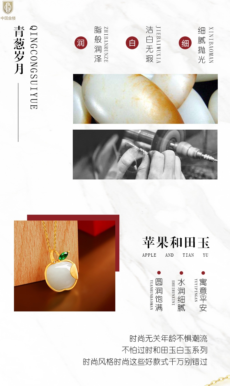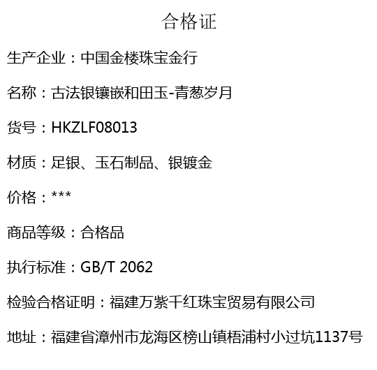 【品名】中国金楼古法银镶嵌和田玉-青葱岁月