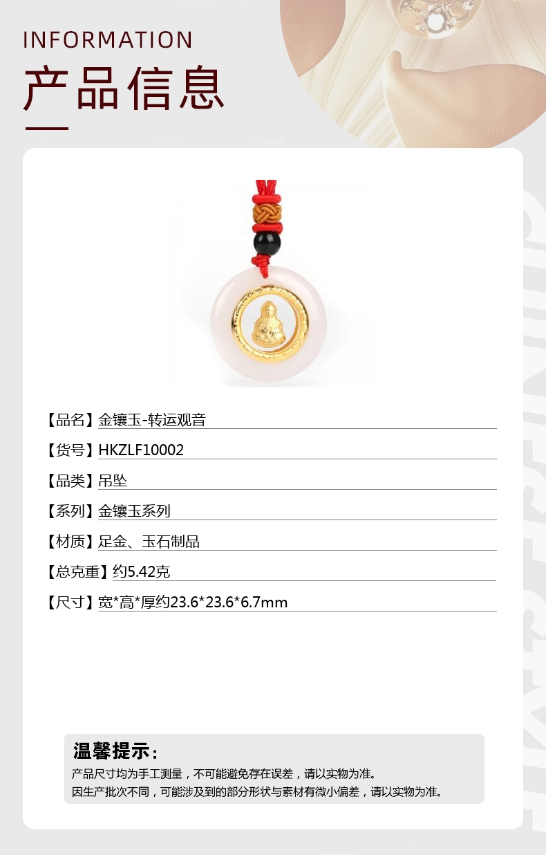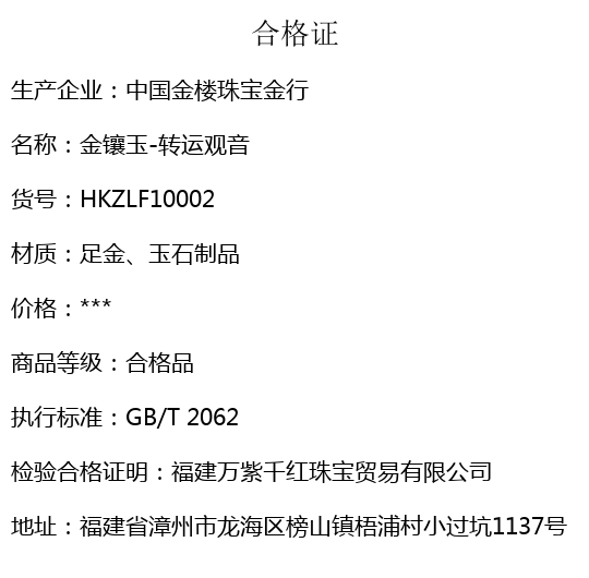 【品名】中国金楼金镶玉-转运观音