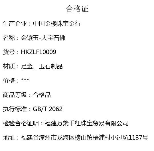 【品名】中国金楼金镶玉-大宝石佛