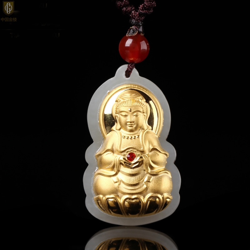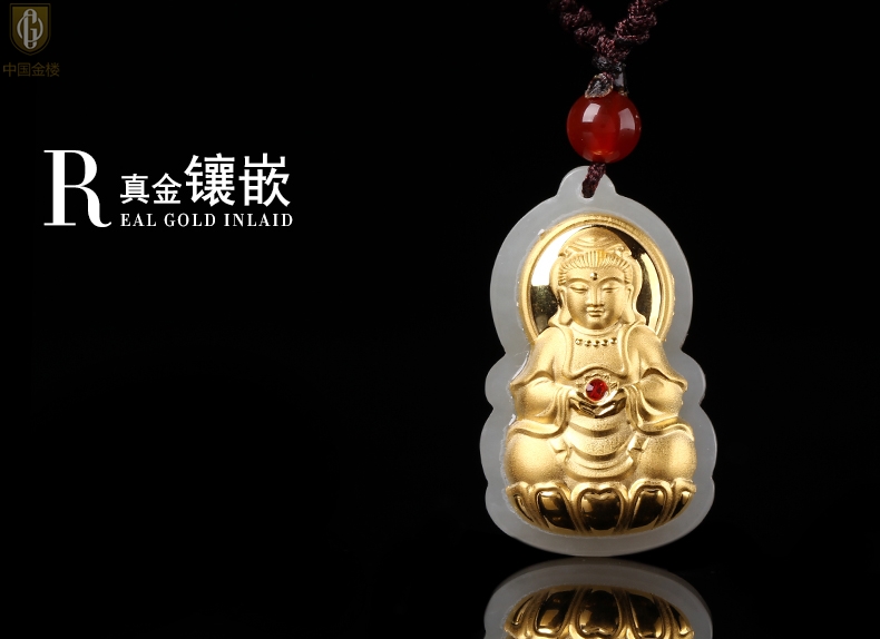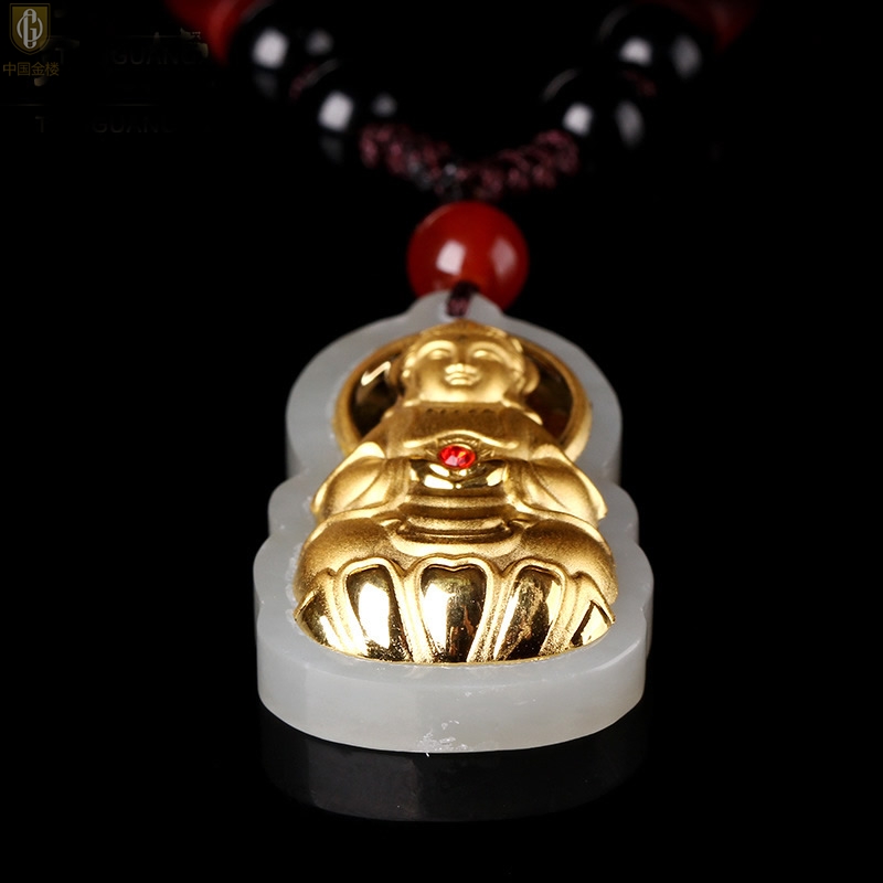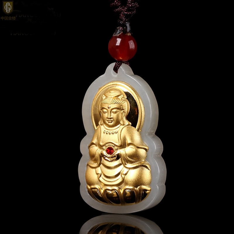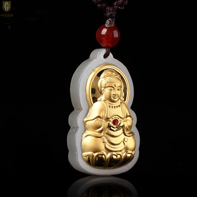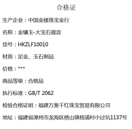 【品名】中国金楼金镶玉-大宝石观音