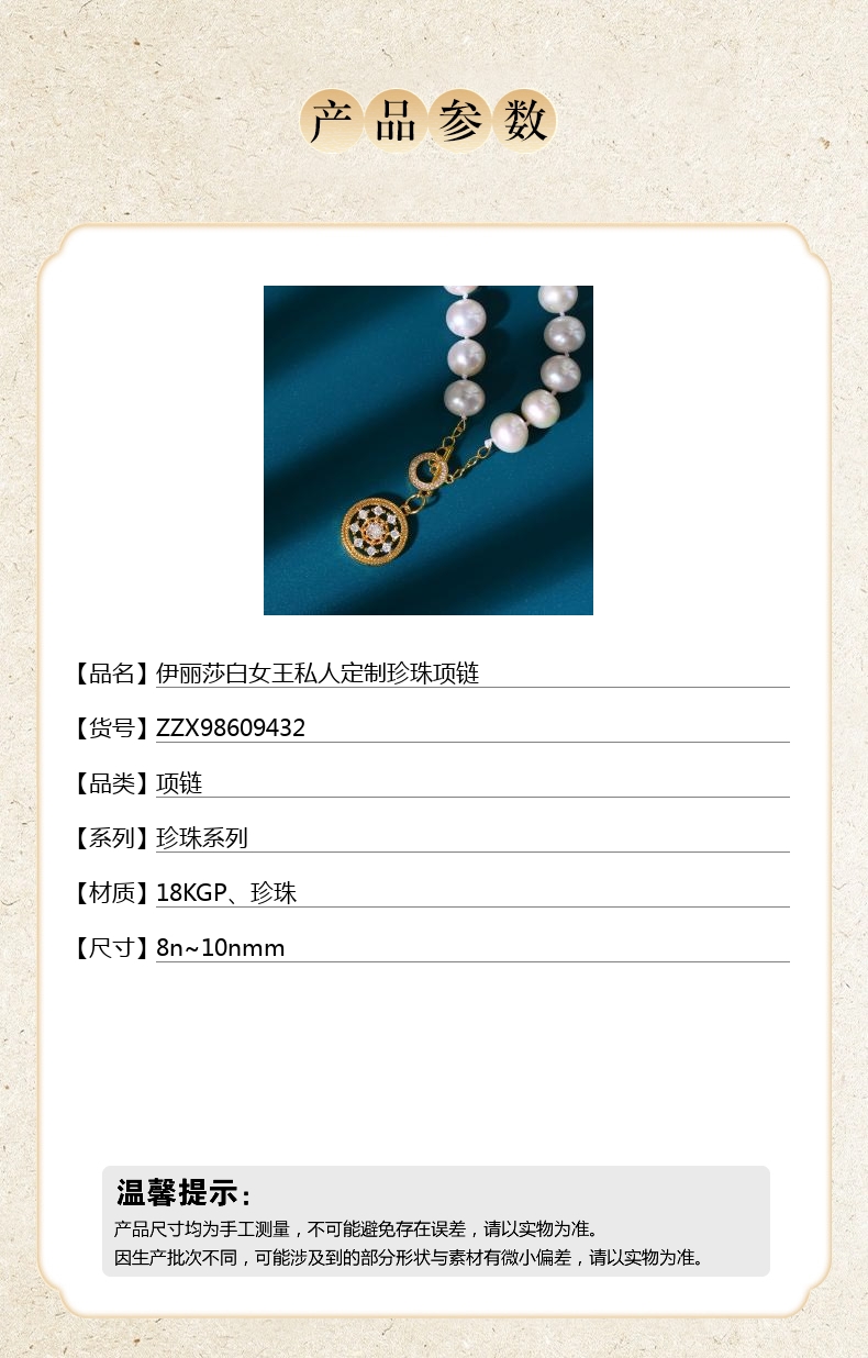 【品名】中国金楼伊丽莎白女王私人定制珍珠项链
