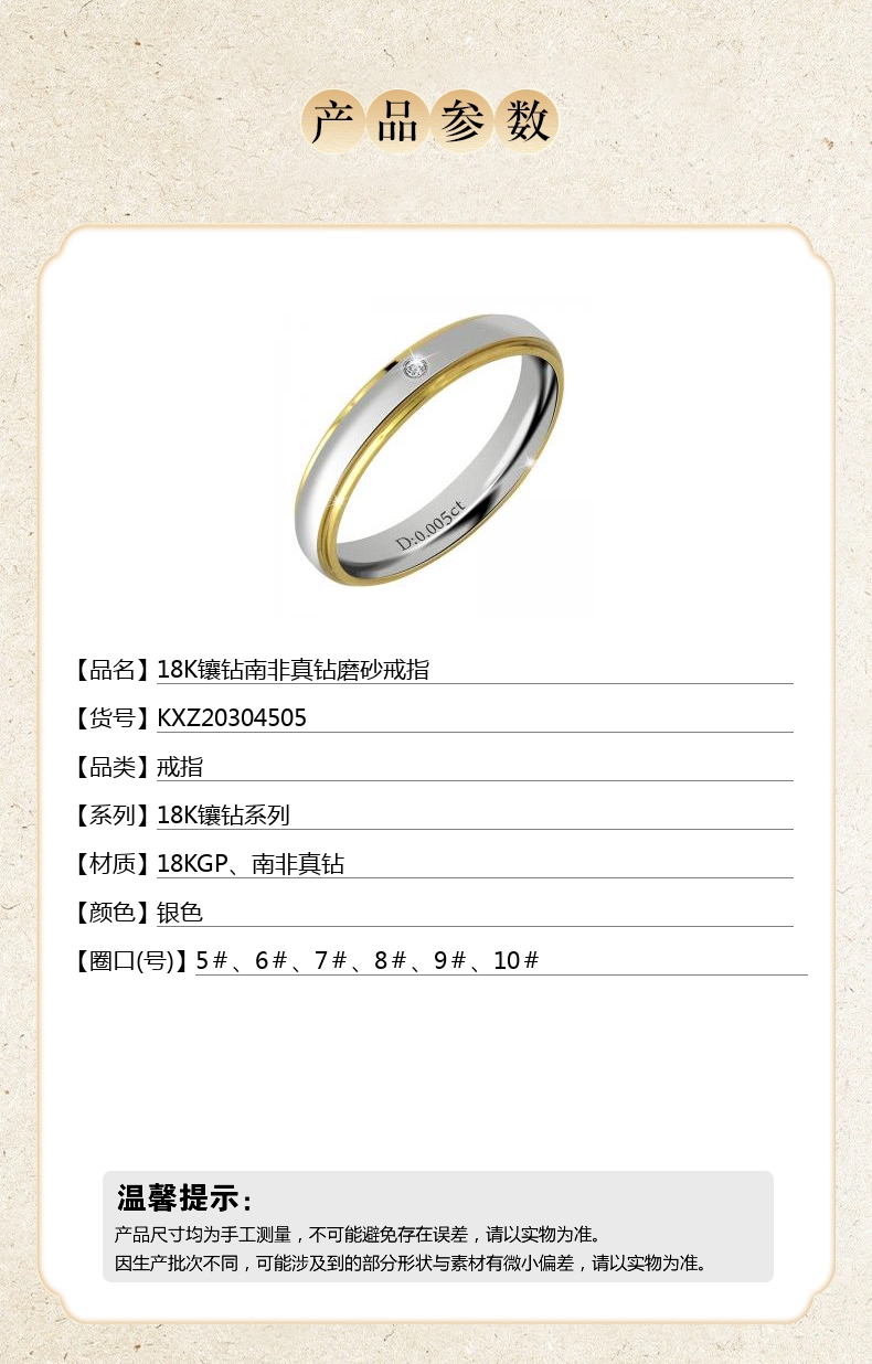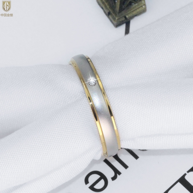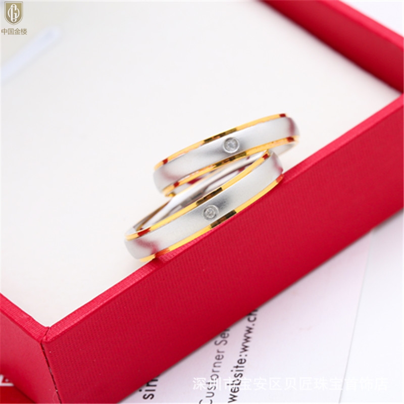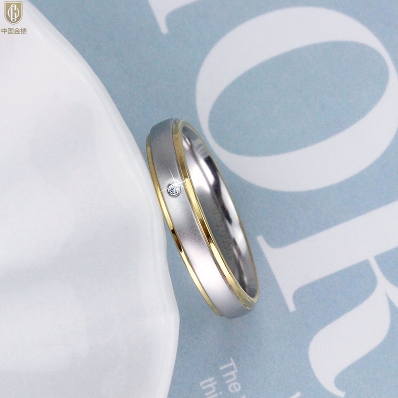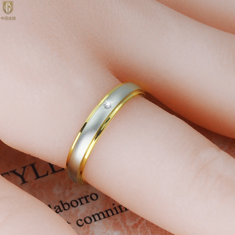 【品名】中国金楼18K镶钻南非真钻磨砂戒指
