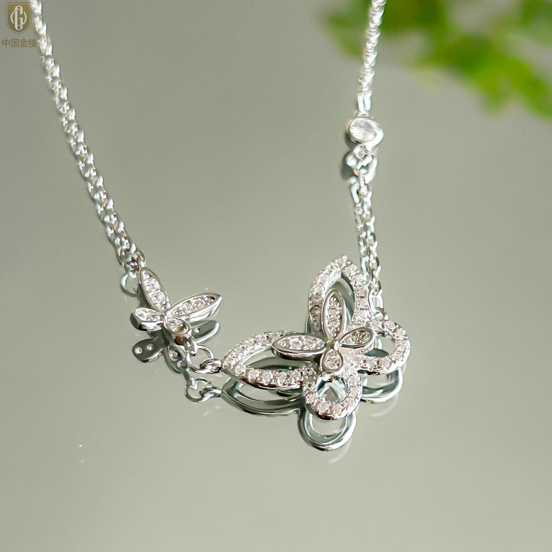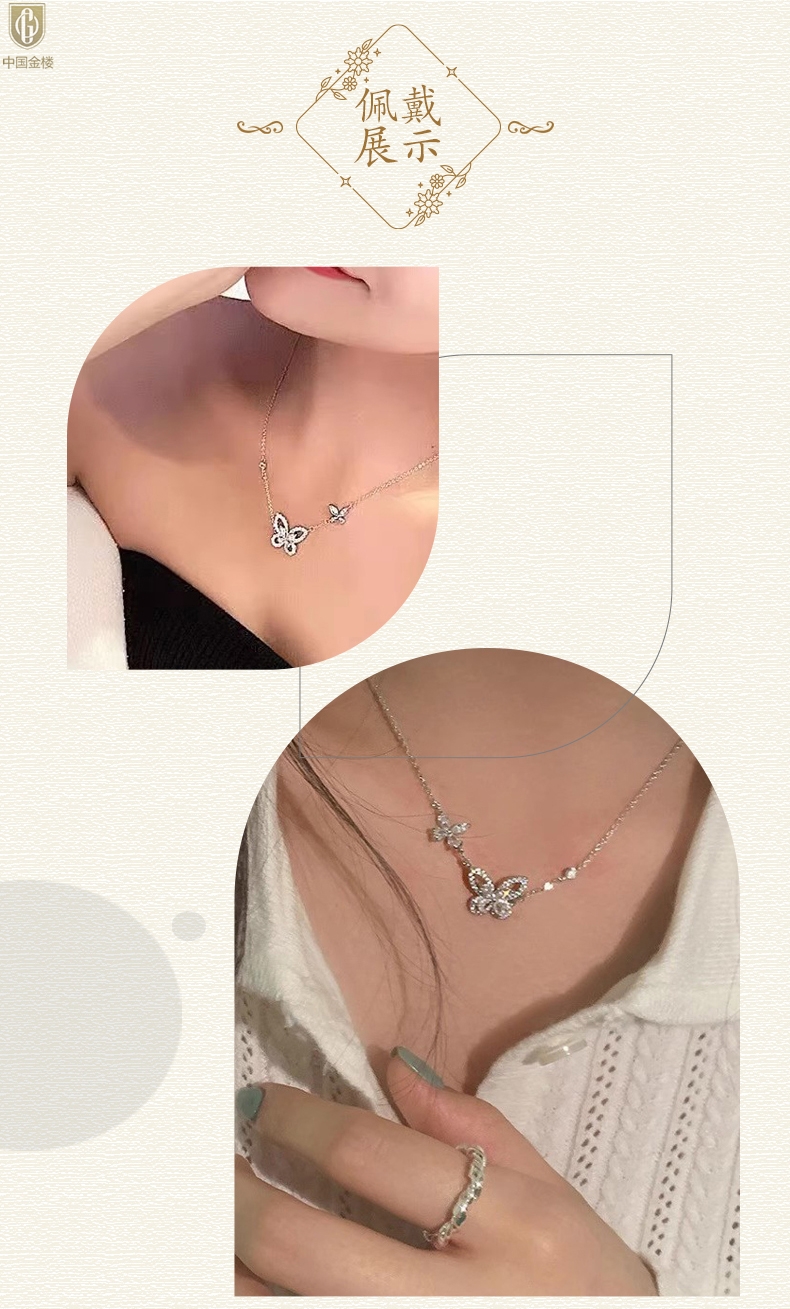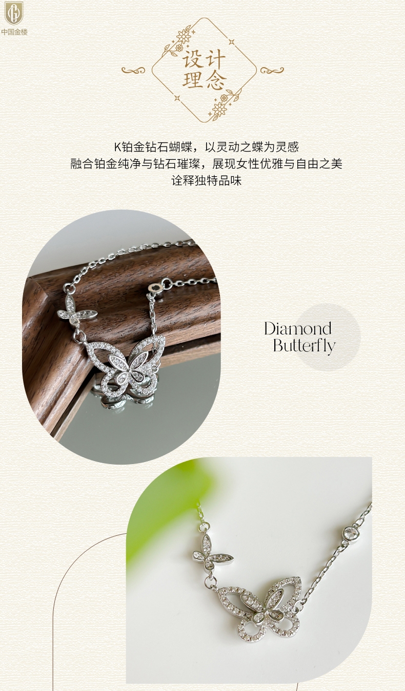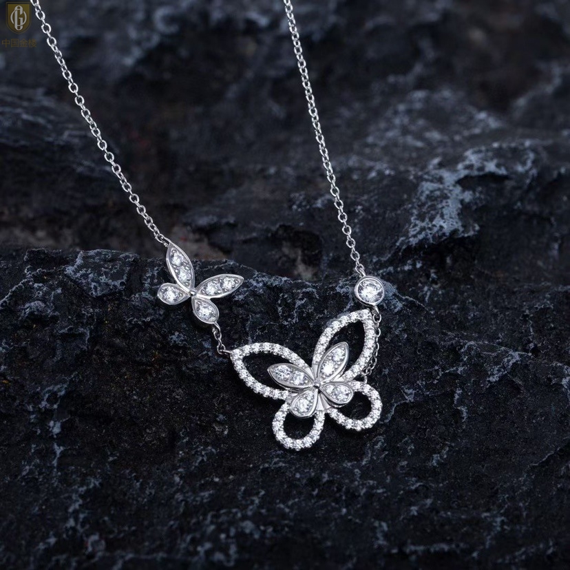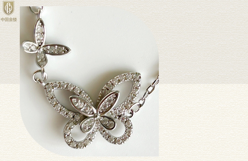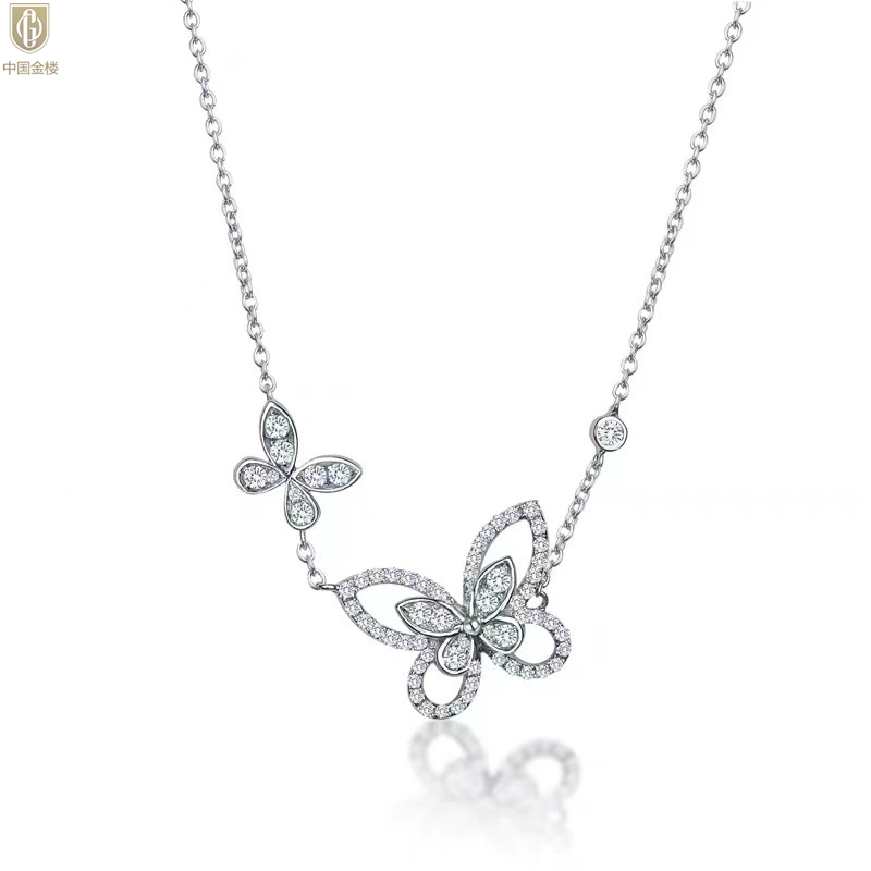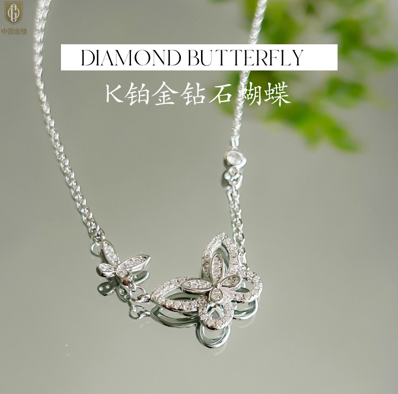 【品名】中国金楼K铂金钻石蝴蝶项链(2只)