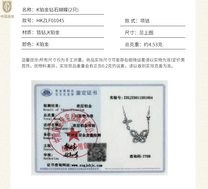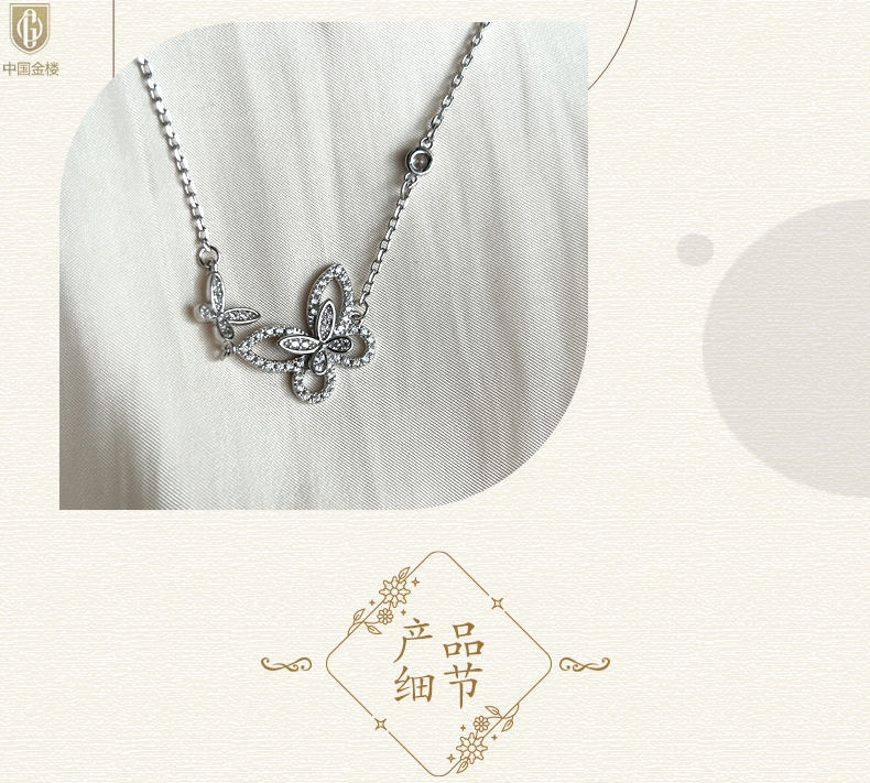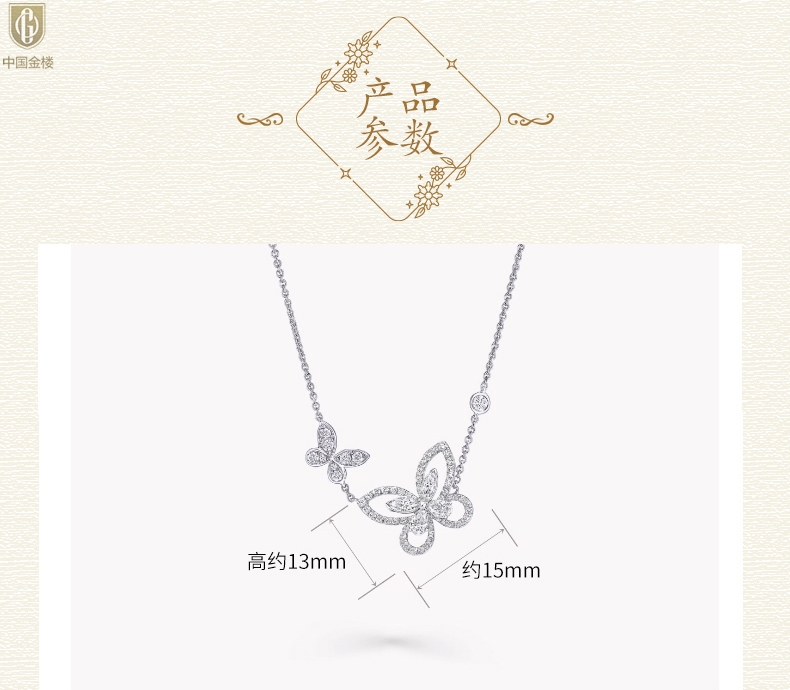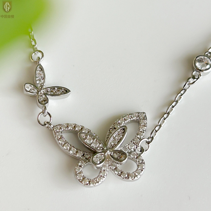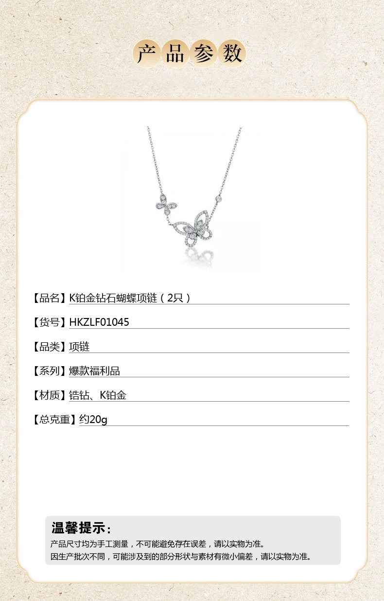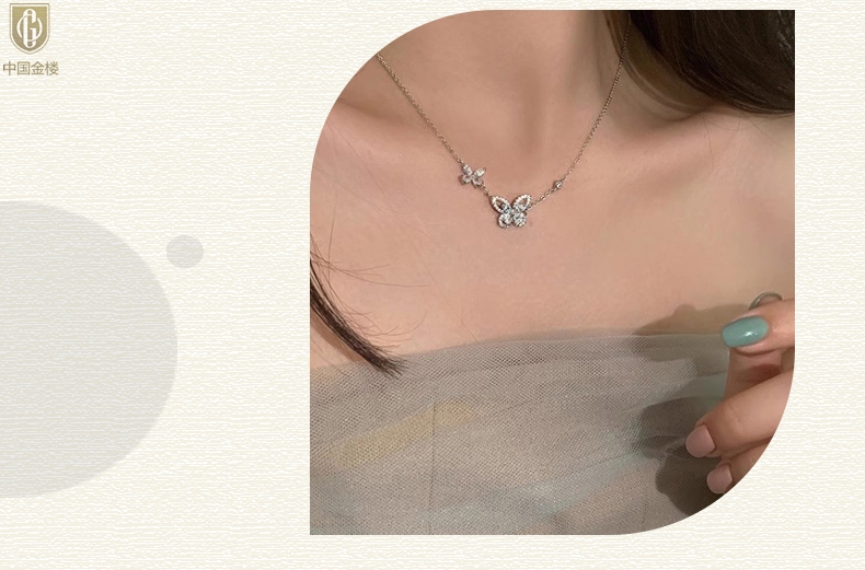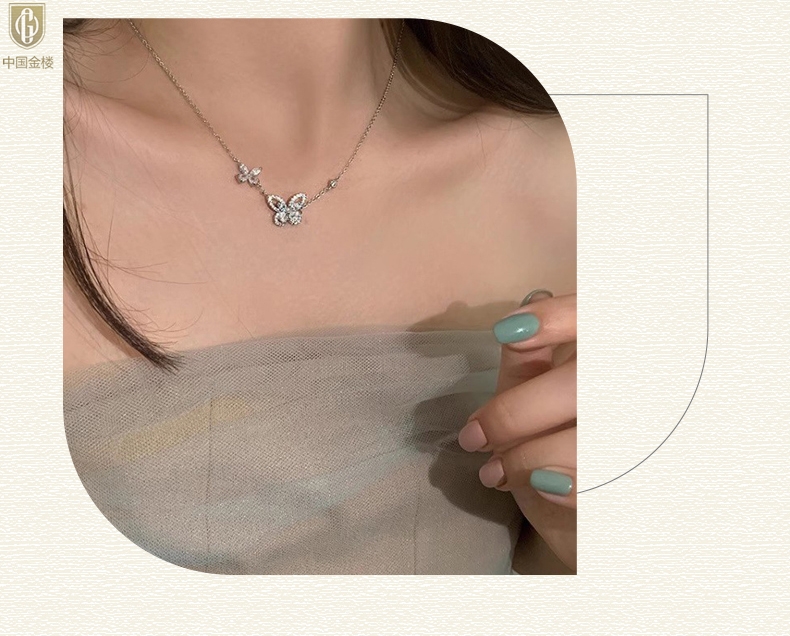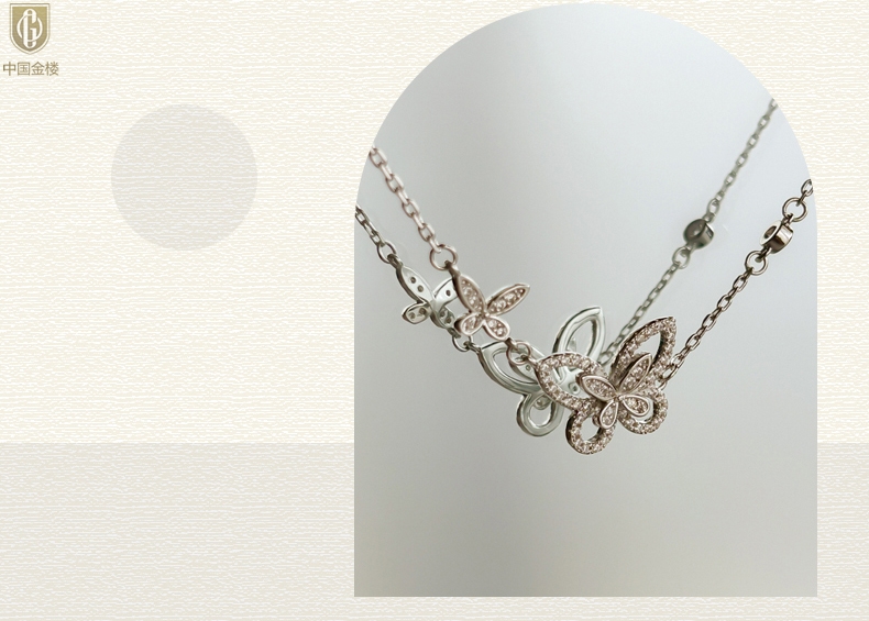 【品名】中国金楼K铂金钻石蝴蝶项链(2只)