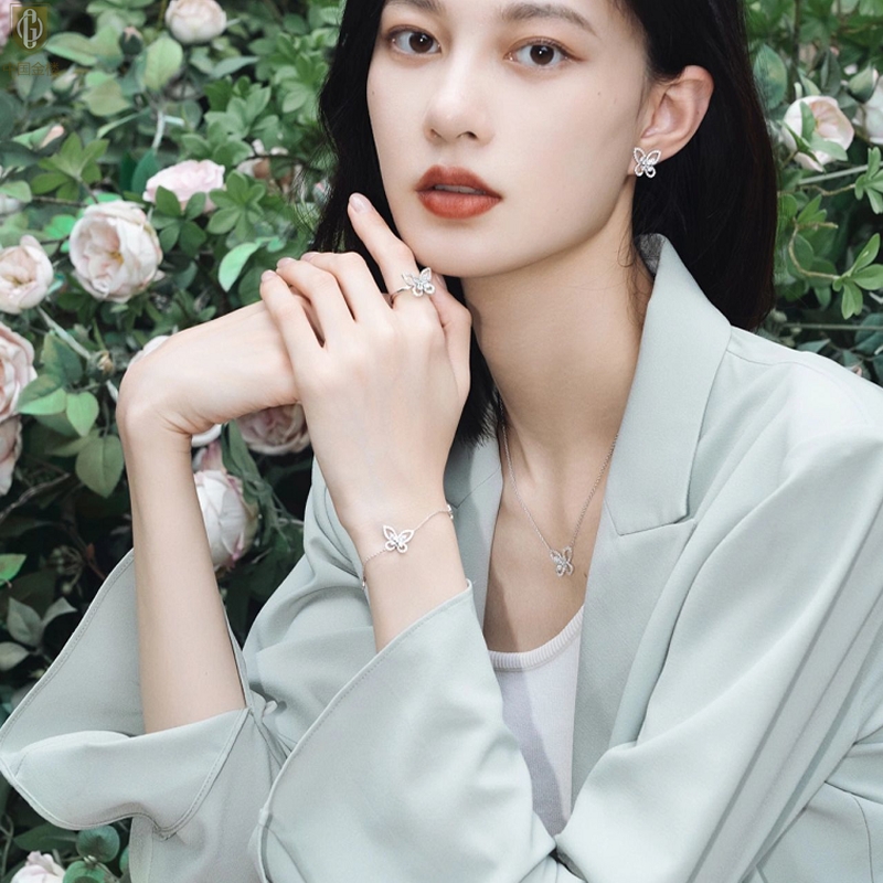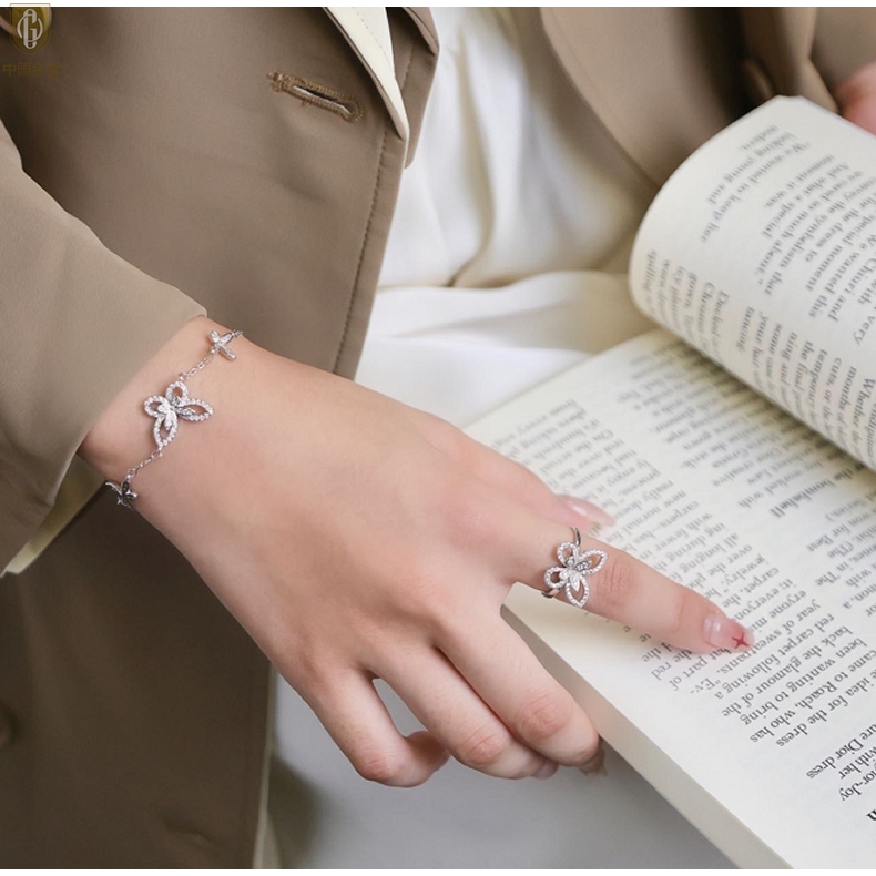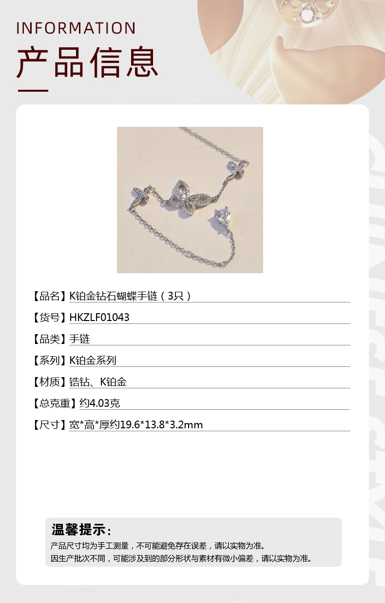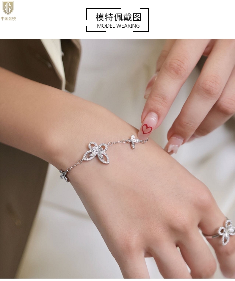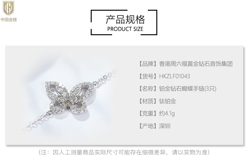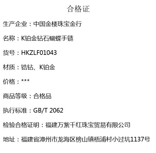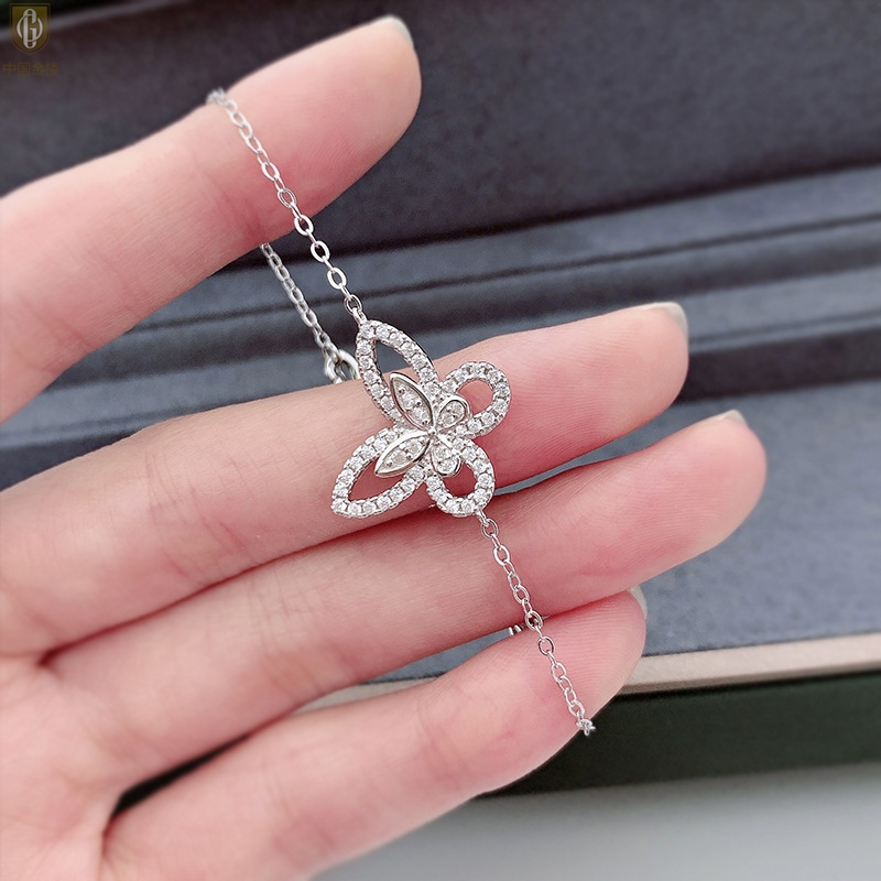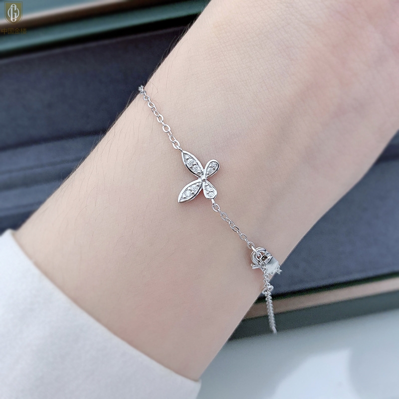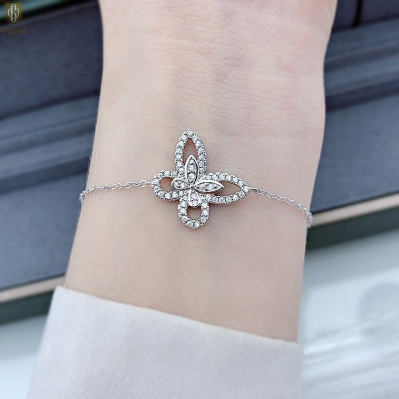 【品名】中国金楼K铂金钻石蝴蝶手链(3只)
