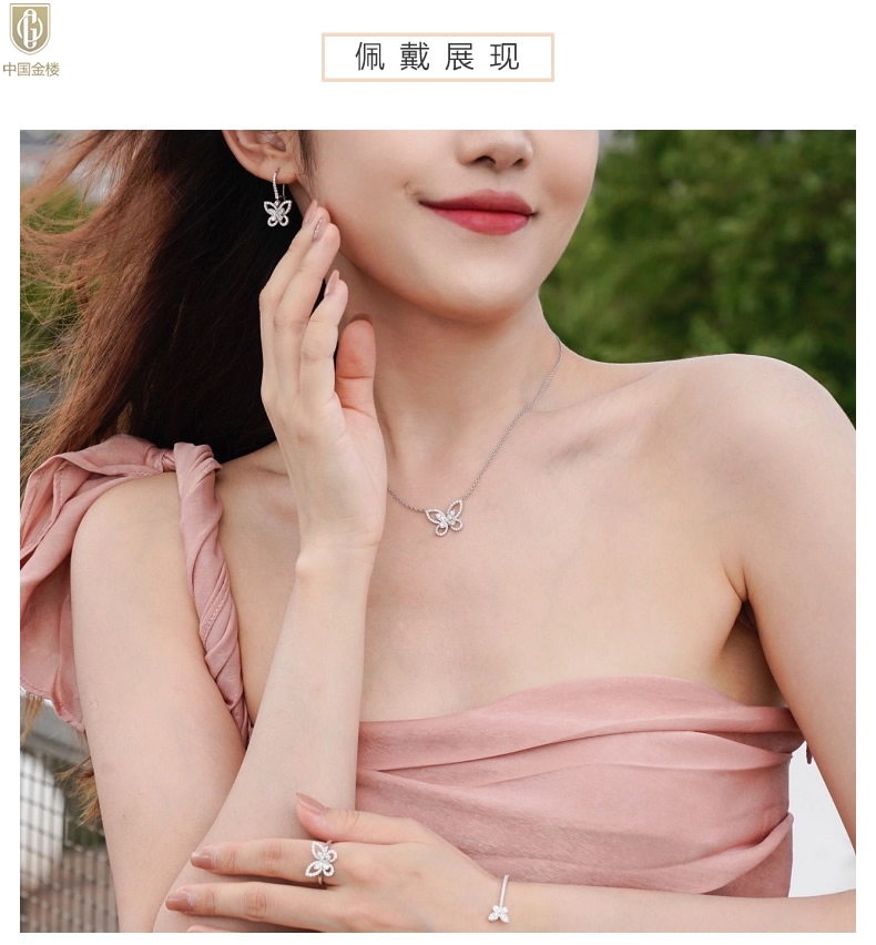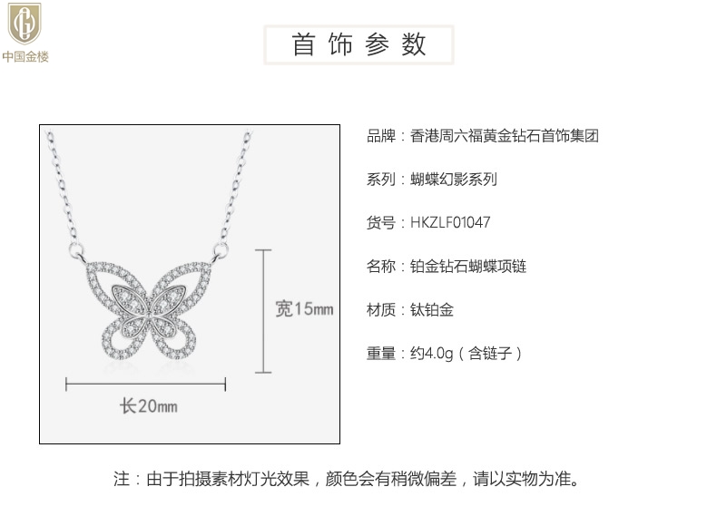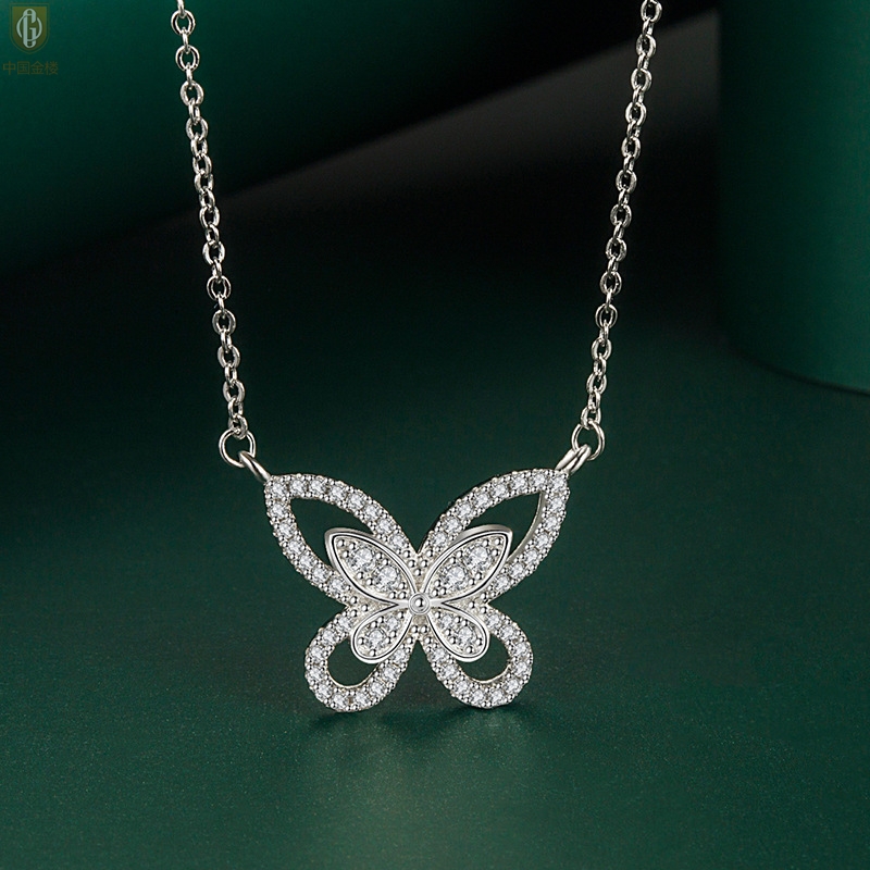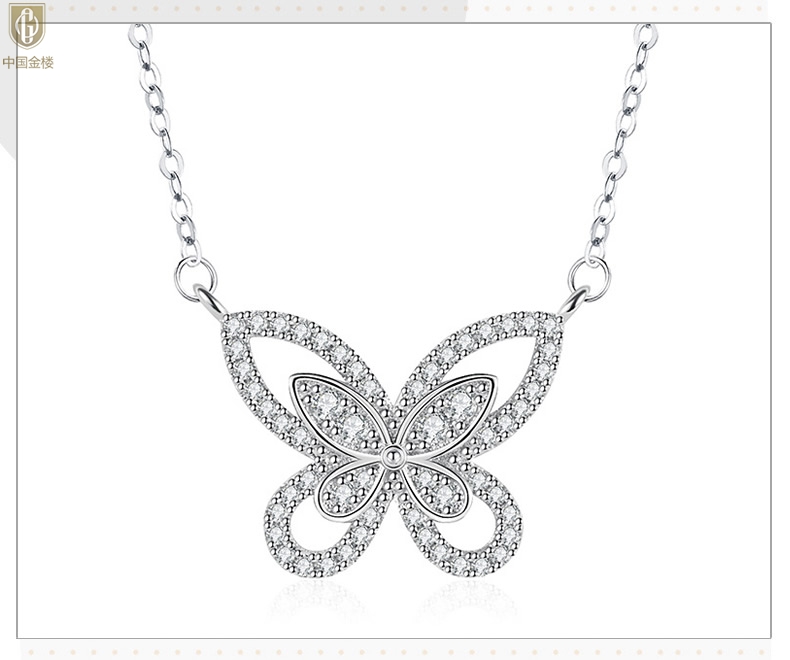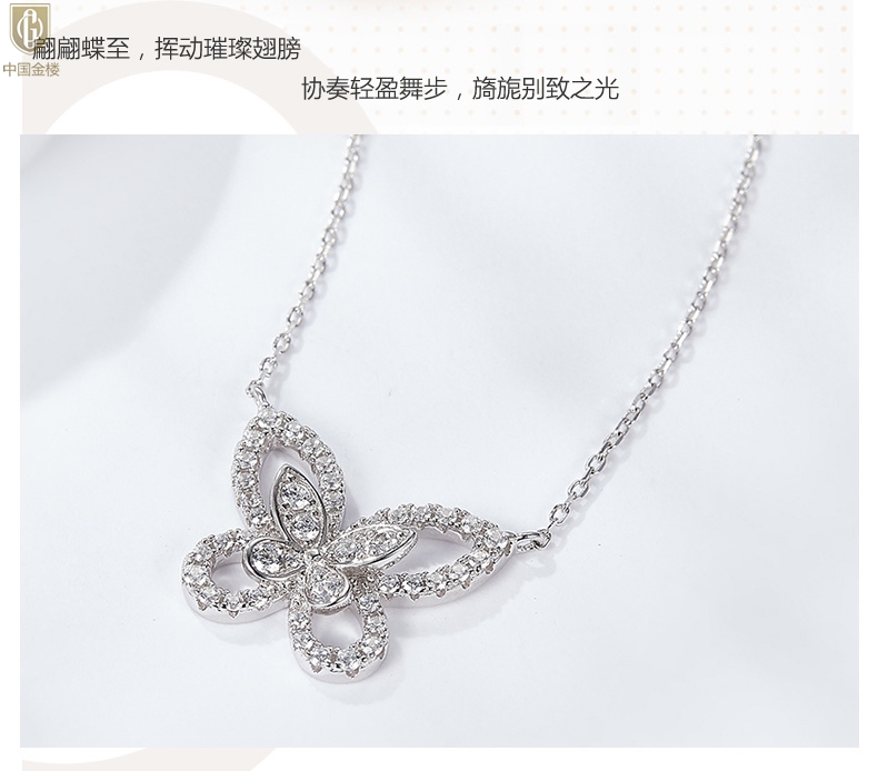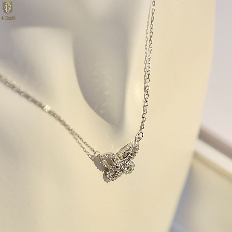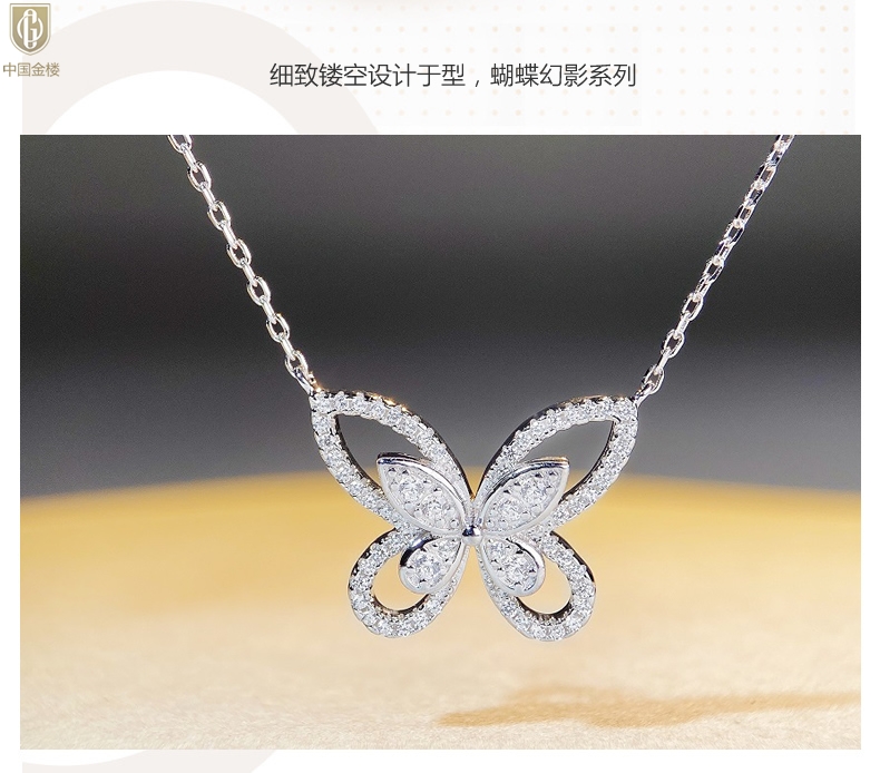 【品名】中国金楼K铂金钻石蝴蝶项链