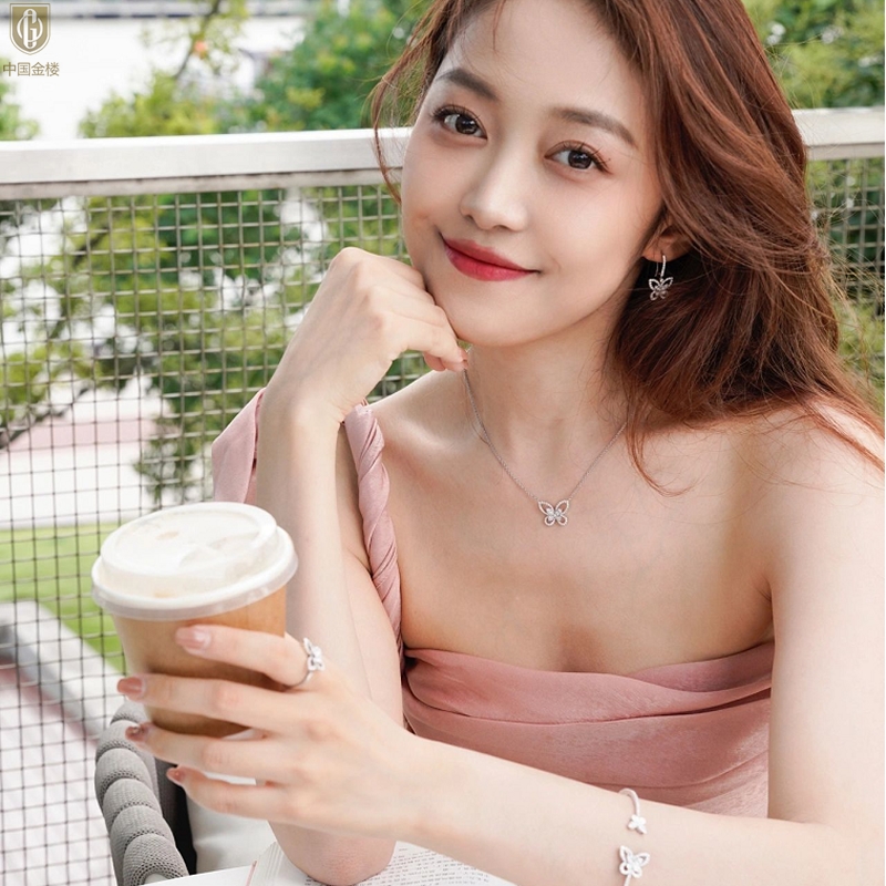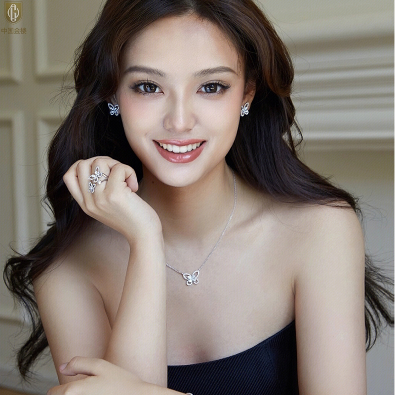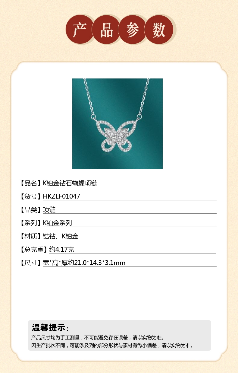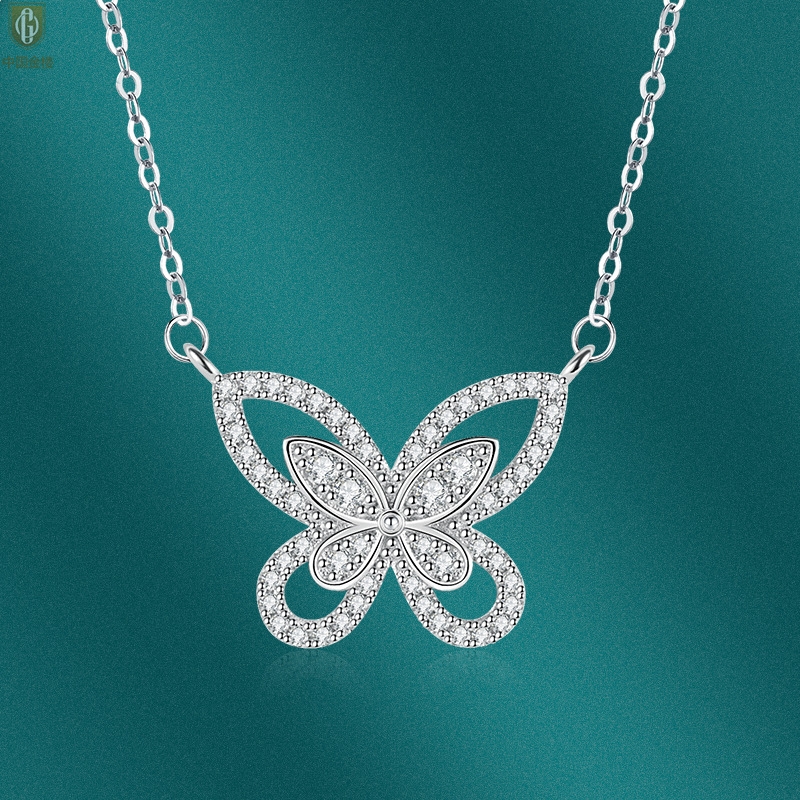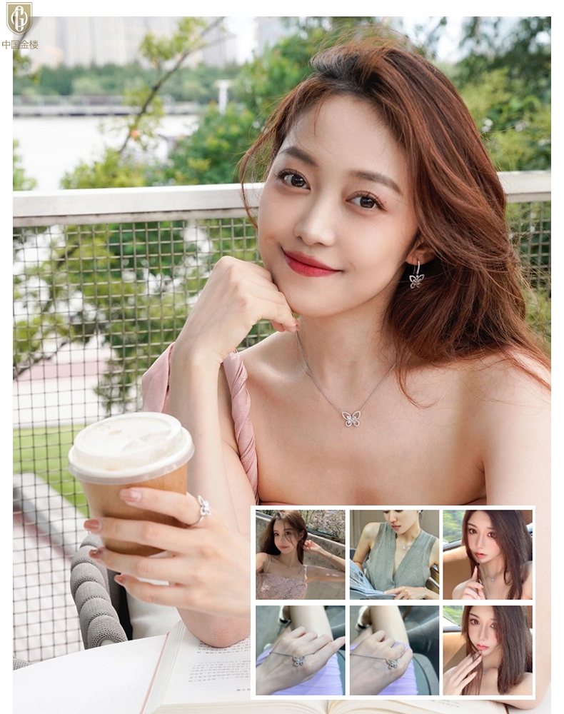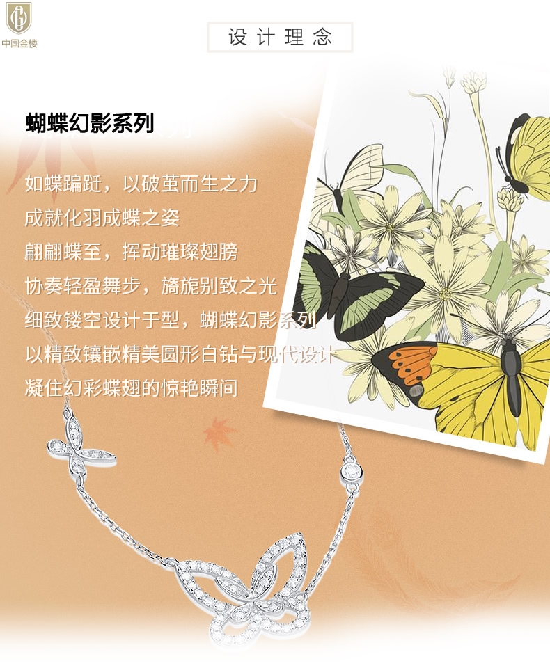【品名】中国金楼K铂金钻石蝴蝶项链