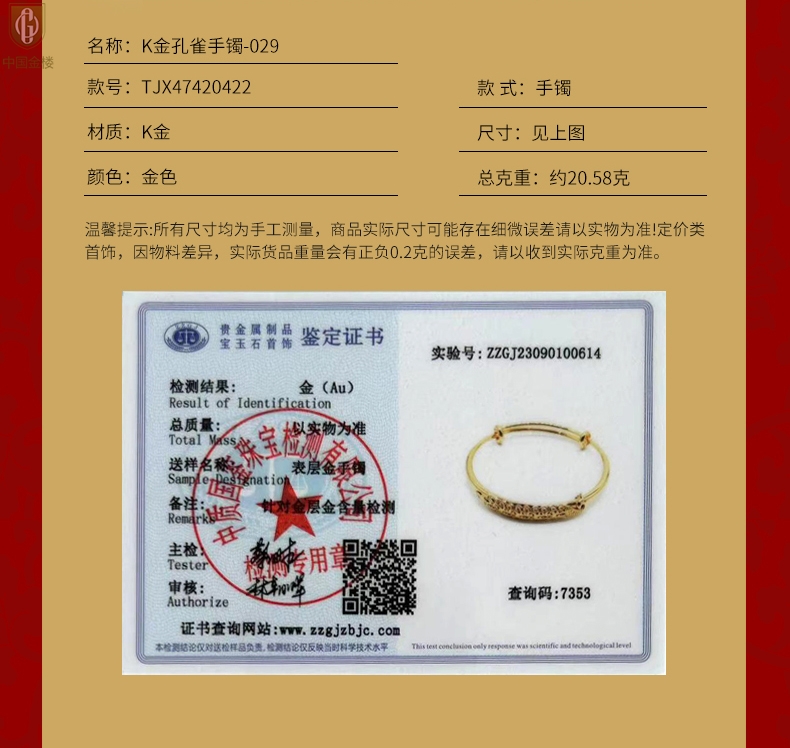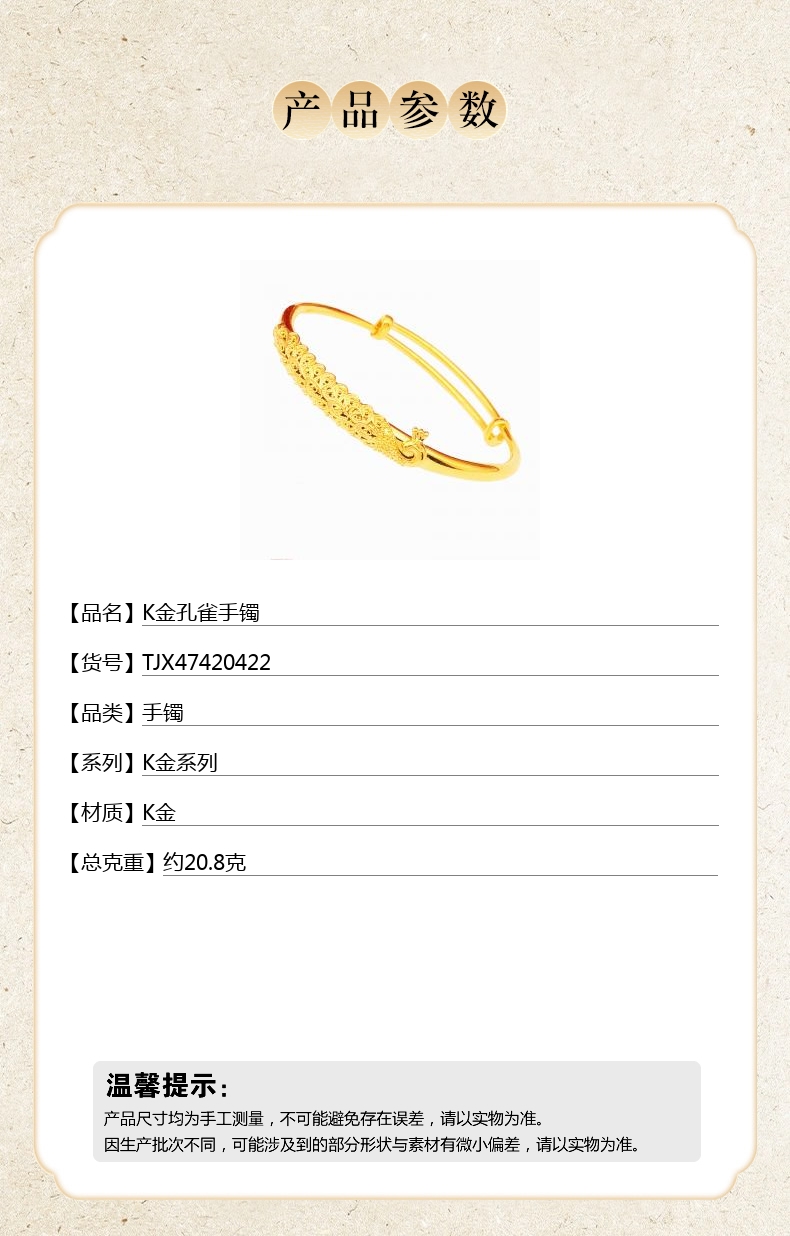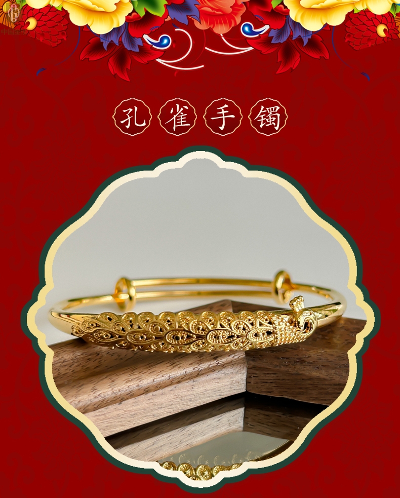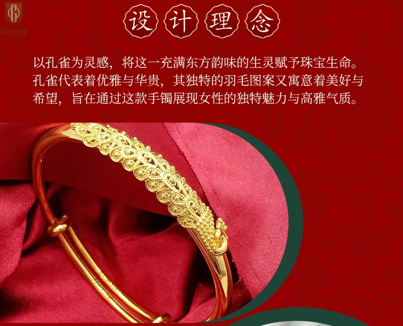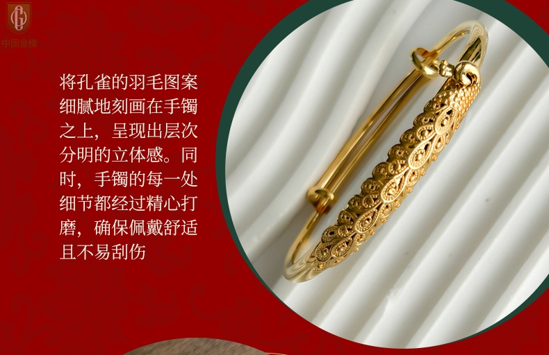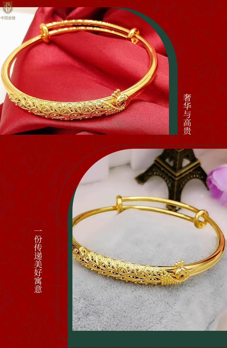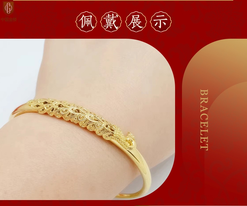 【品名】中国金楼K金孔雀手镯