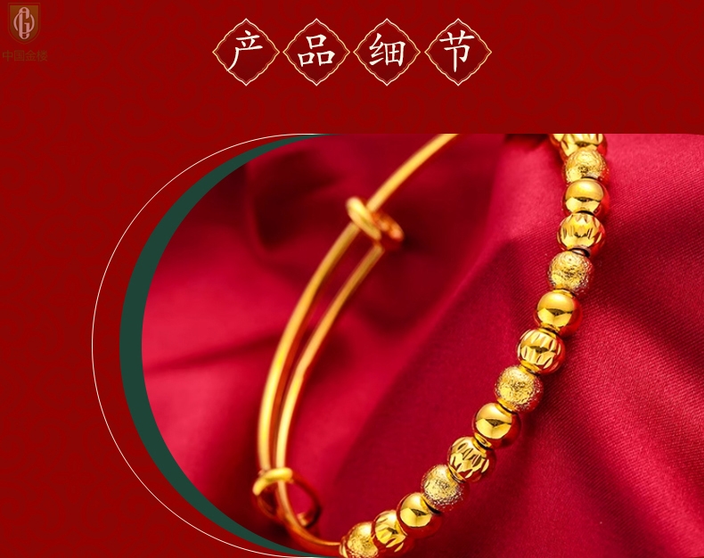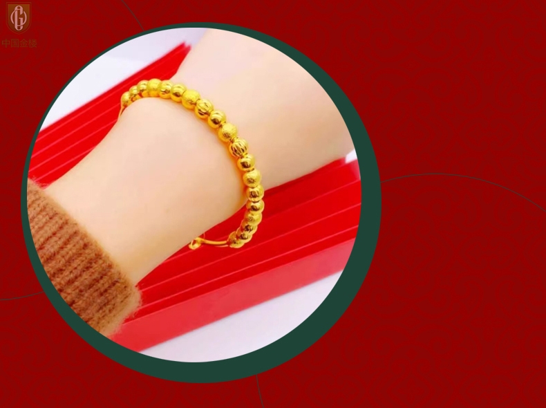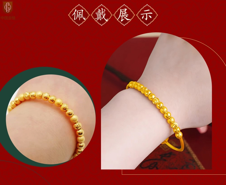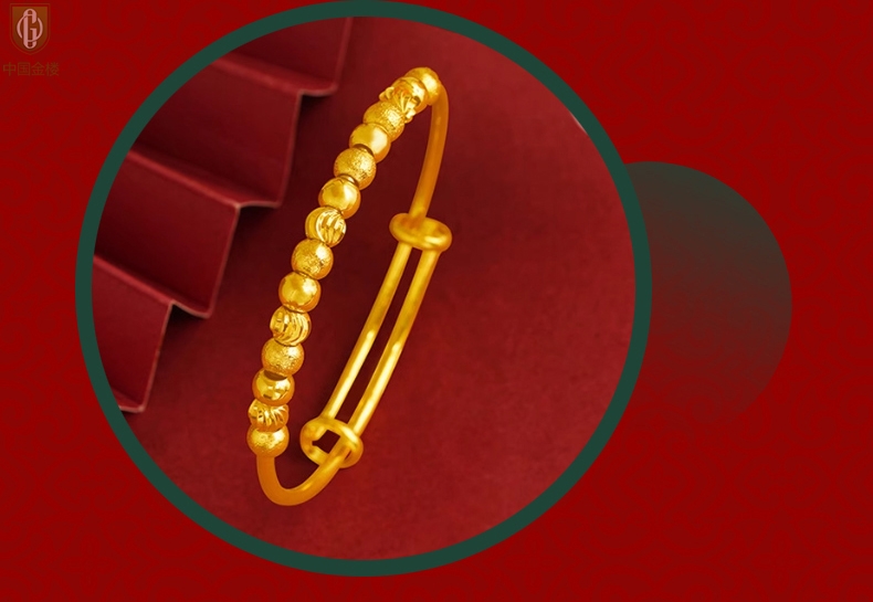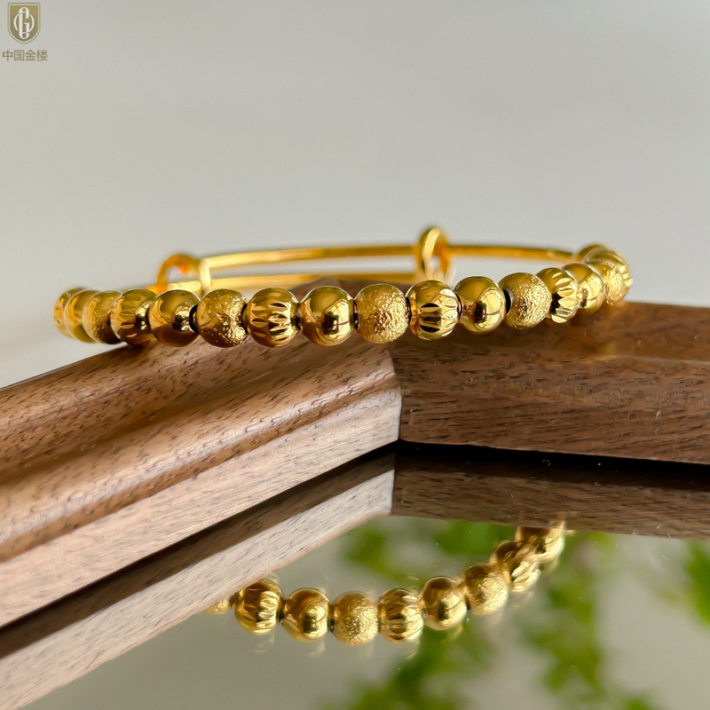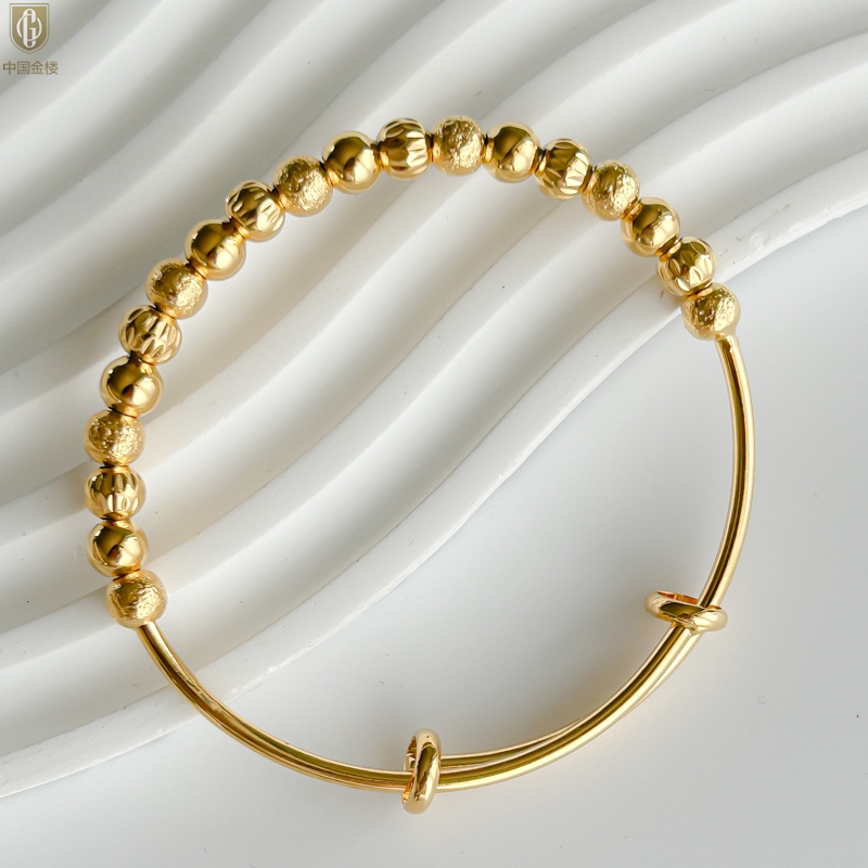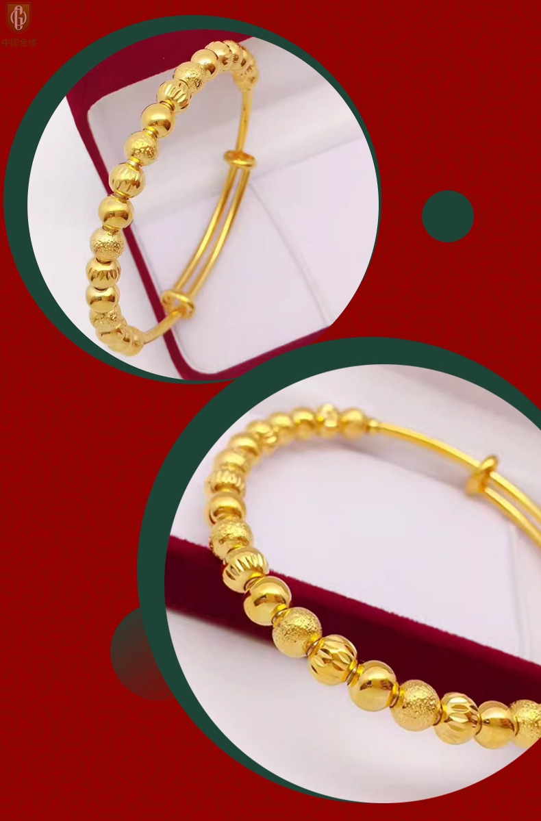 【品名】中国金楼K金幸运珠转动珠推拉手镯