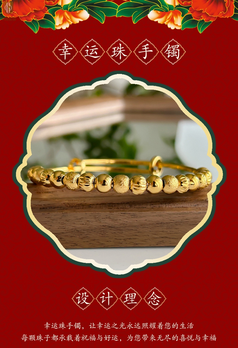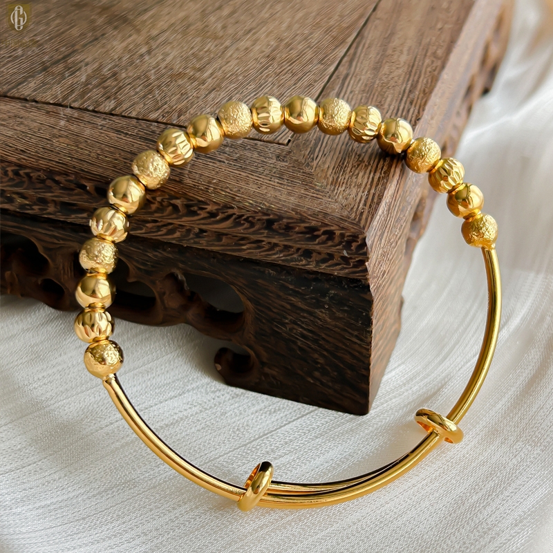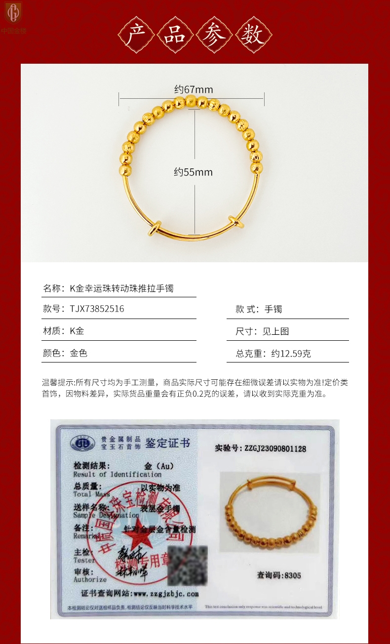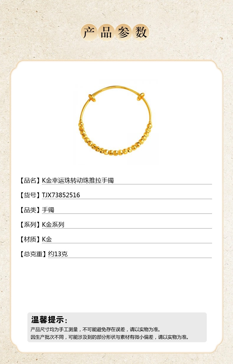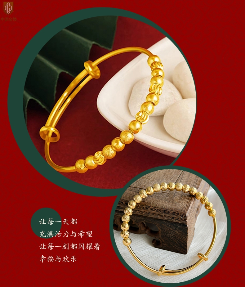 【品名】中国金楼K金幸运珠转动珠推拉手镯