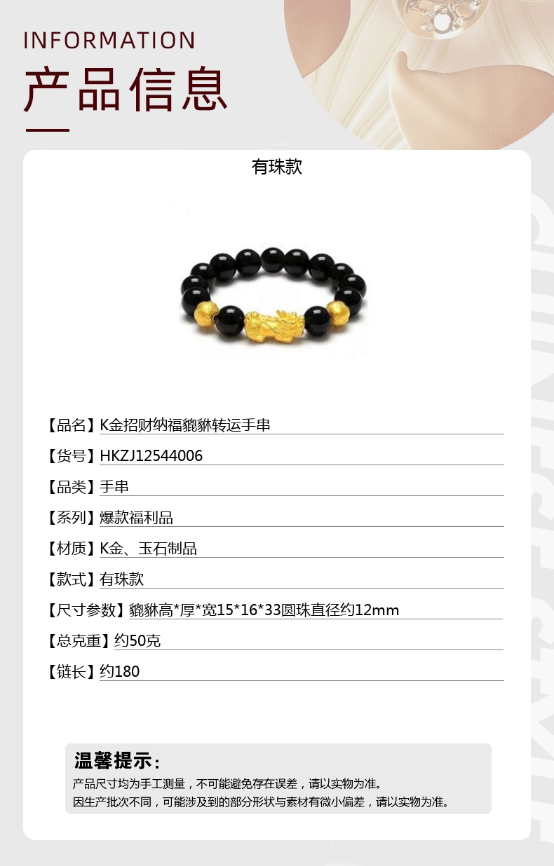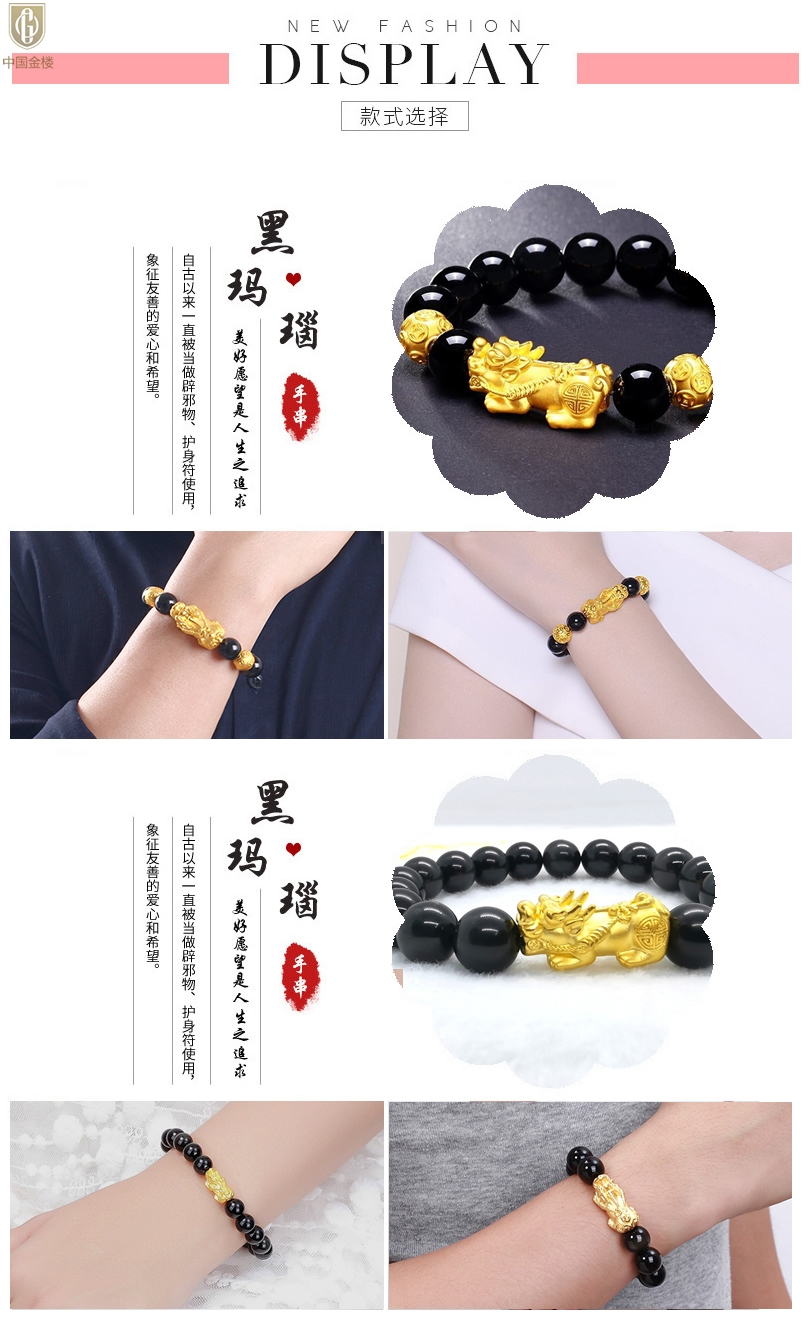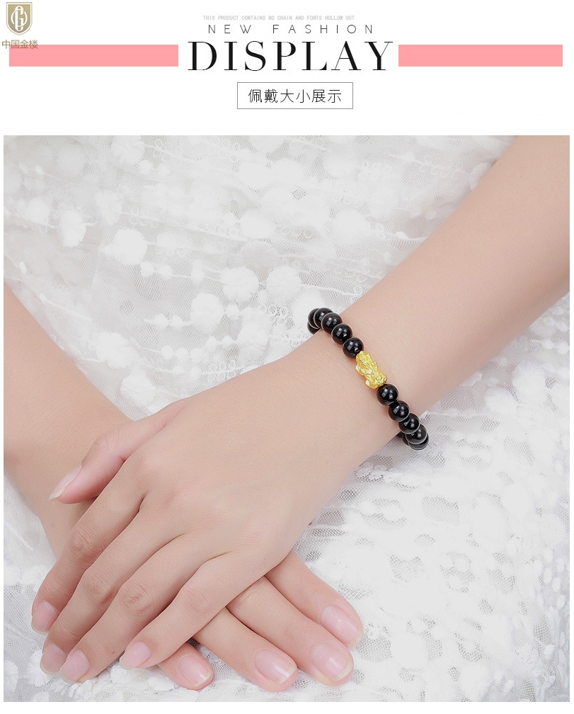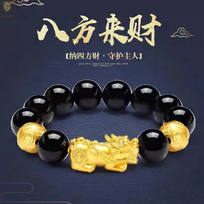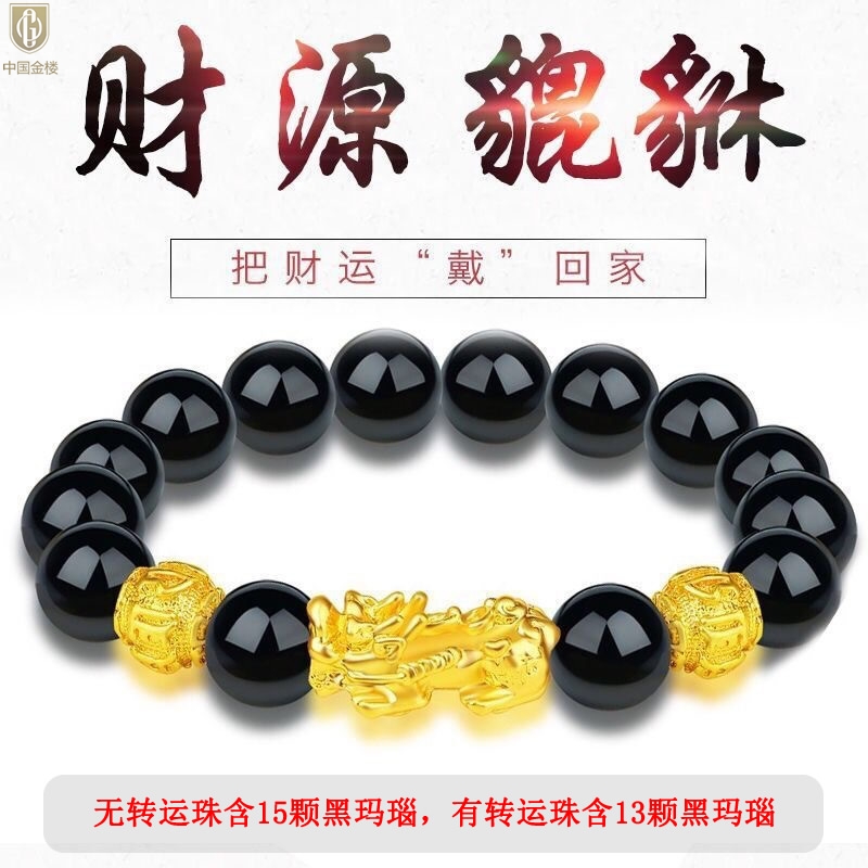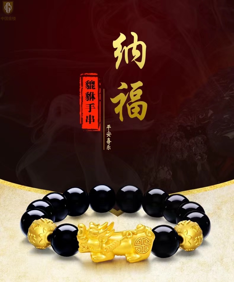 【品名】中国金楼K金招财纳福貔貅转运手串