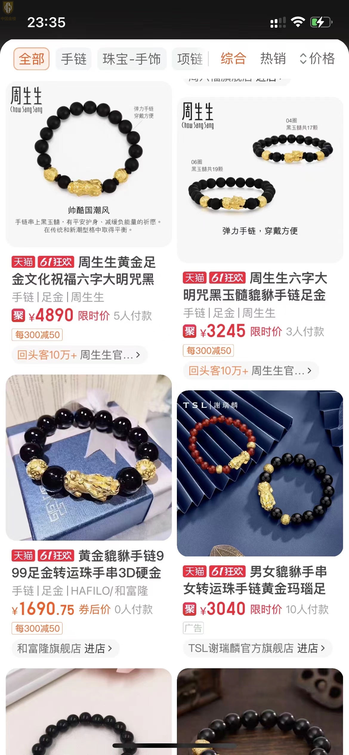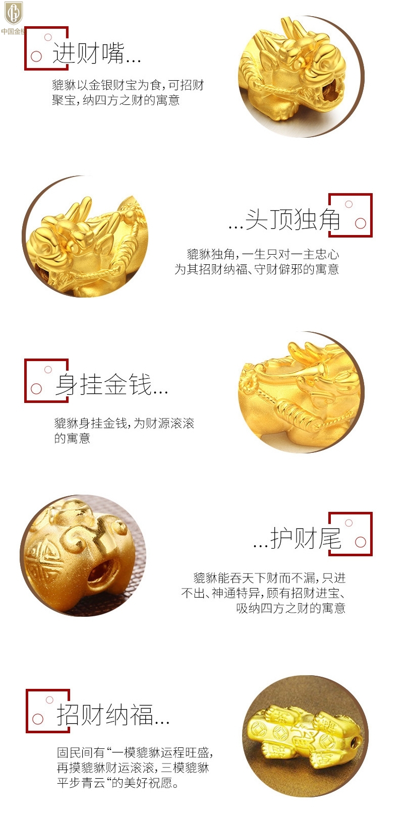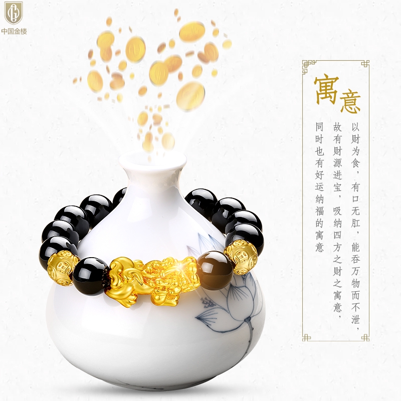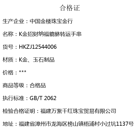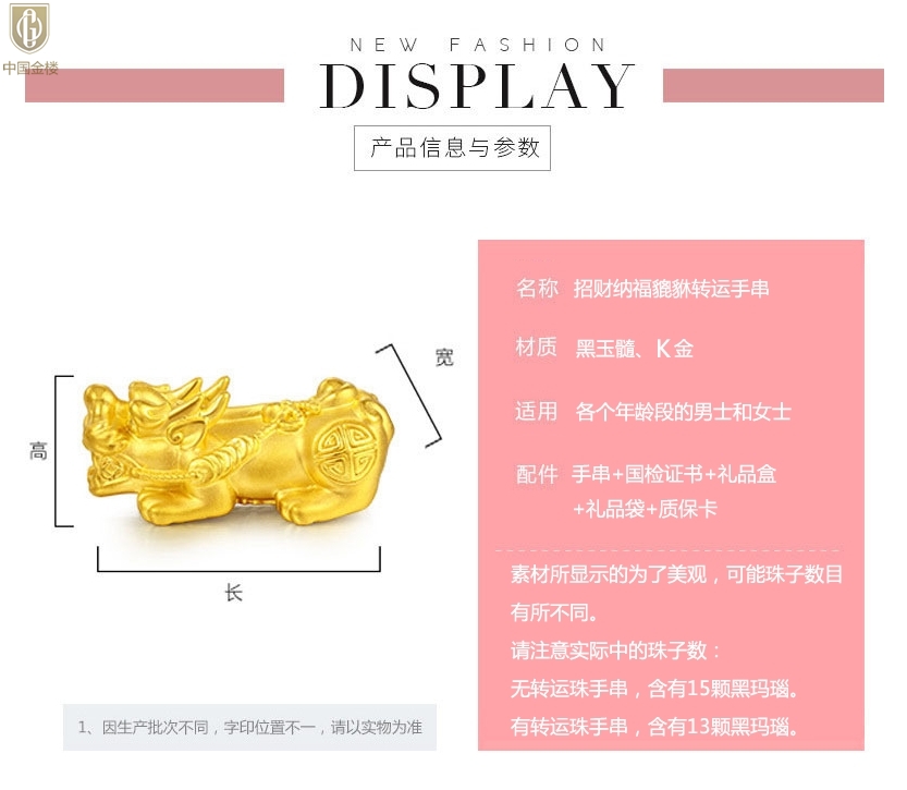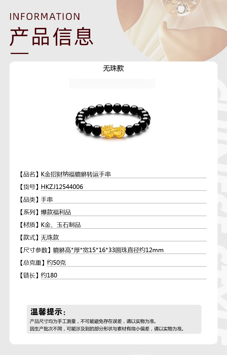 【品名】中国金楼K金招财纳福貔貅转运手串