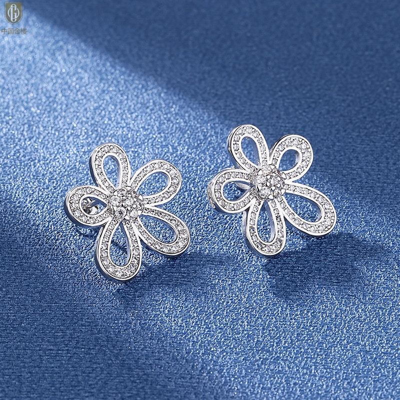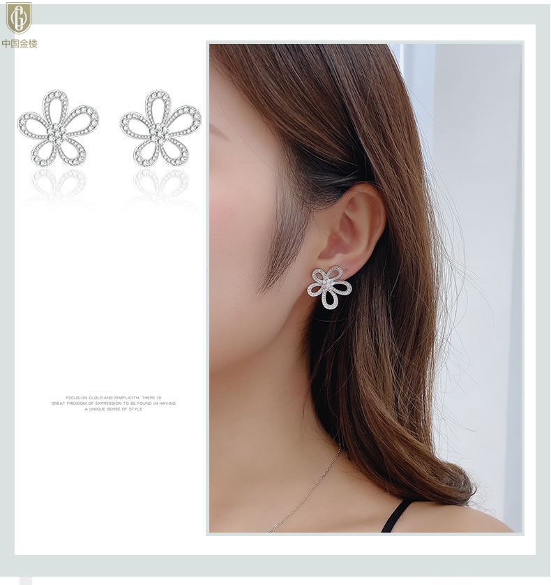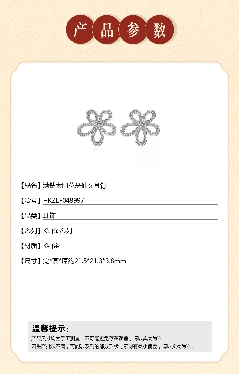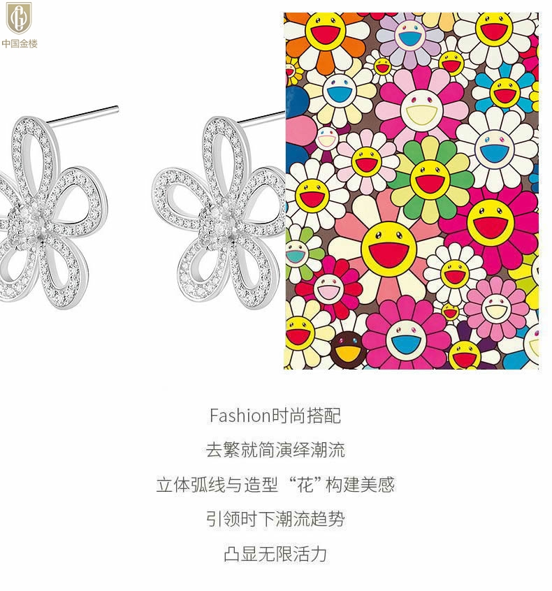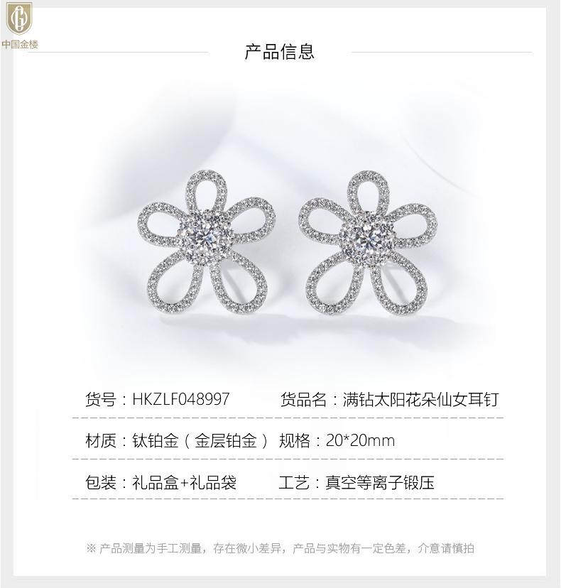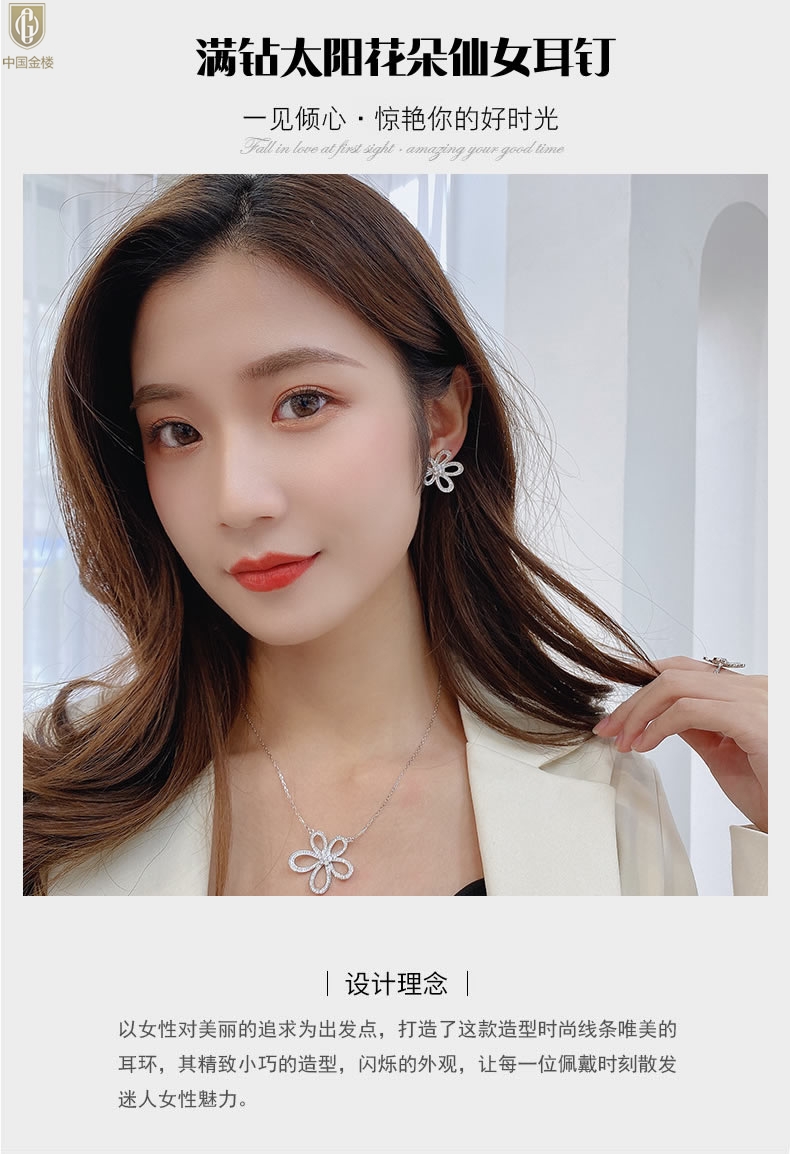 【品名】中国金楼满钻太阳花朵仙女耳钉