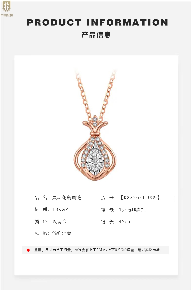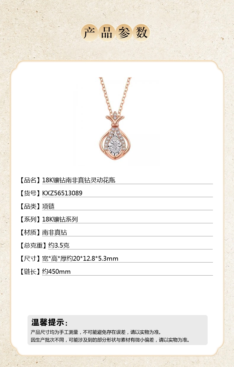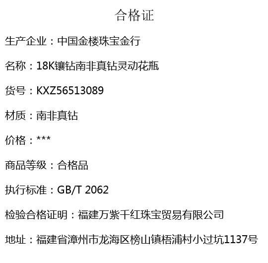 【品名】中国金楼18K镶钻南非真钻灵动花瓶