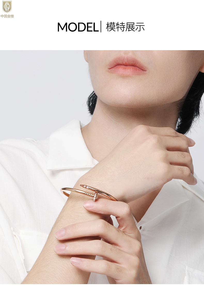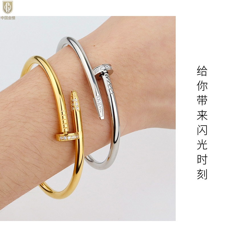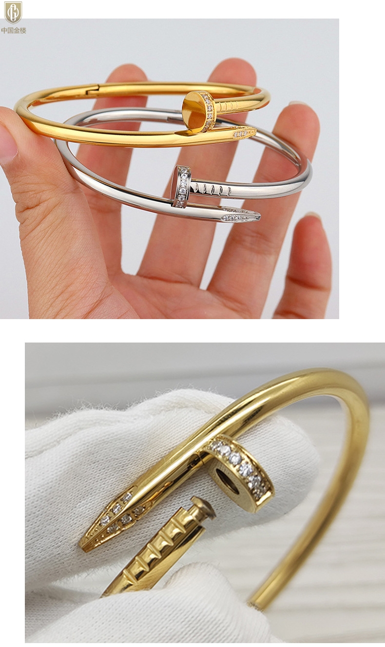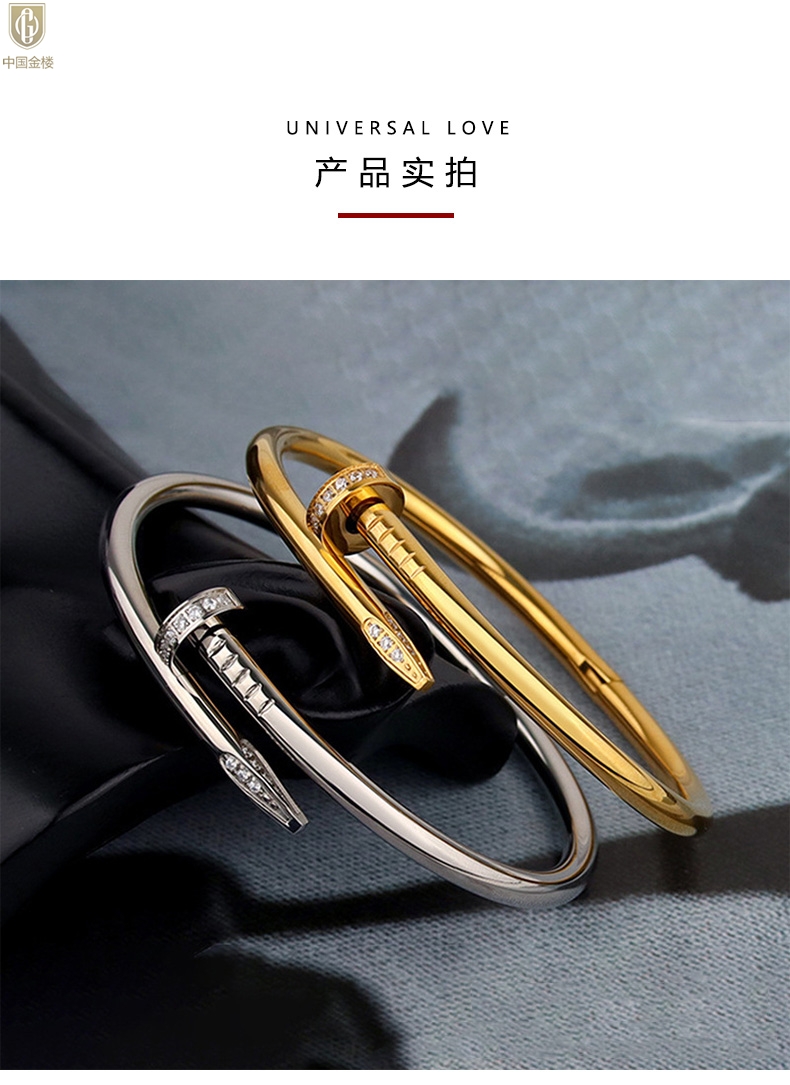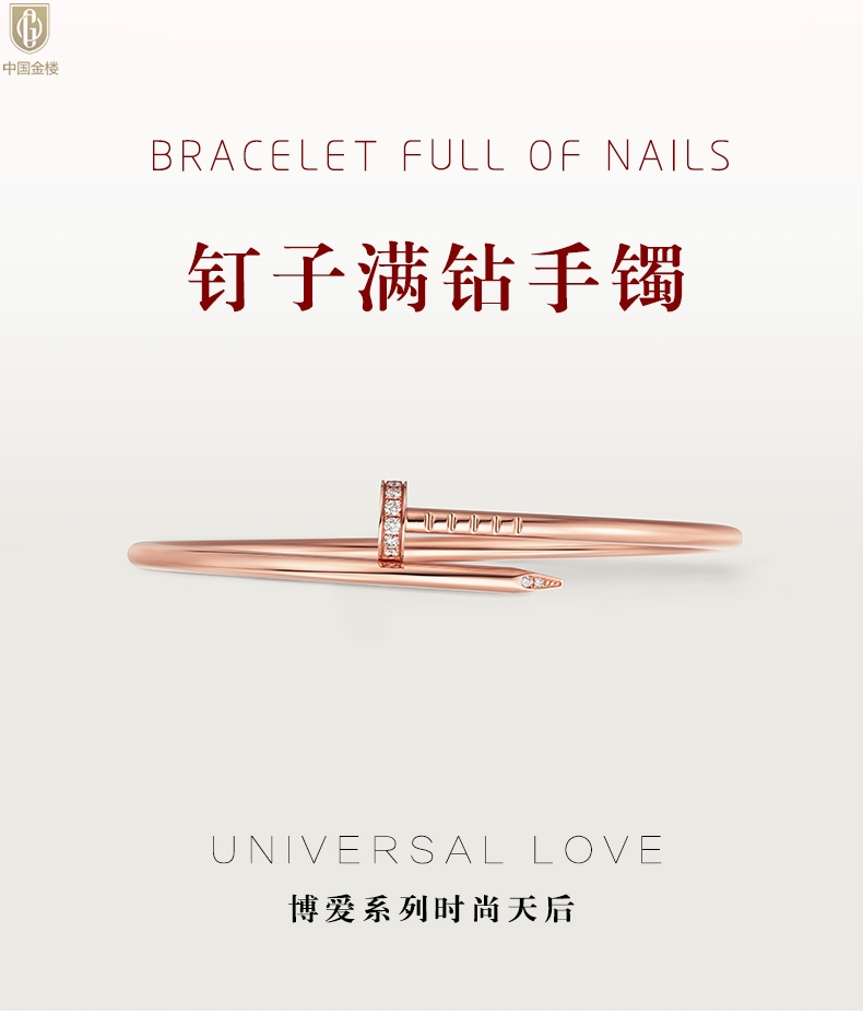 【品名】中国金楼博爱系列时尚天后钉子满钻情侣手镯