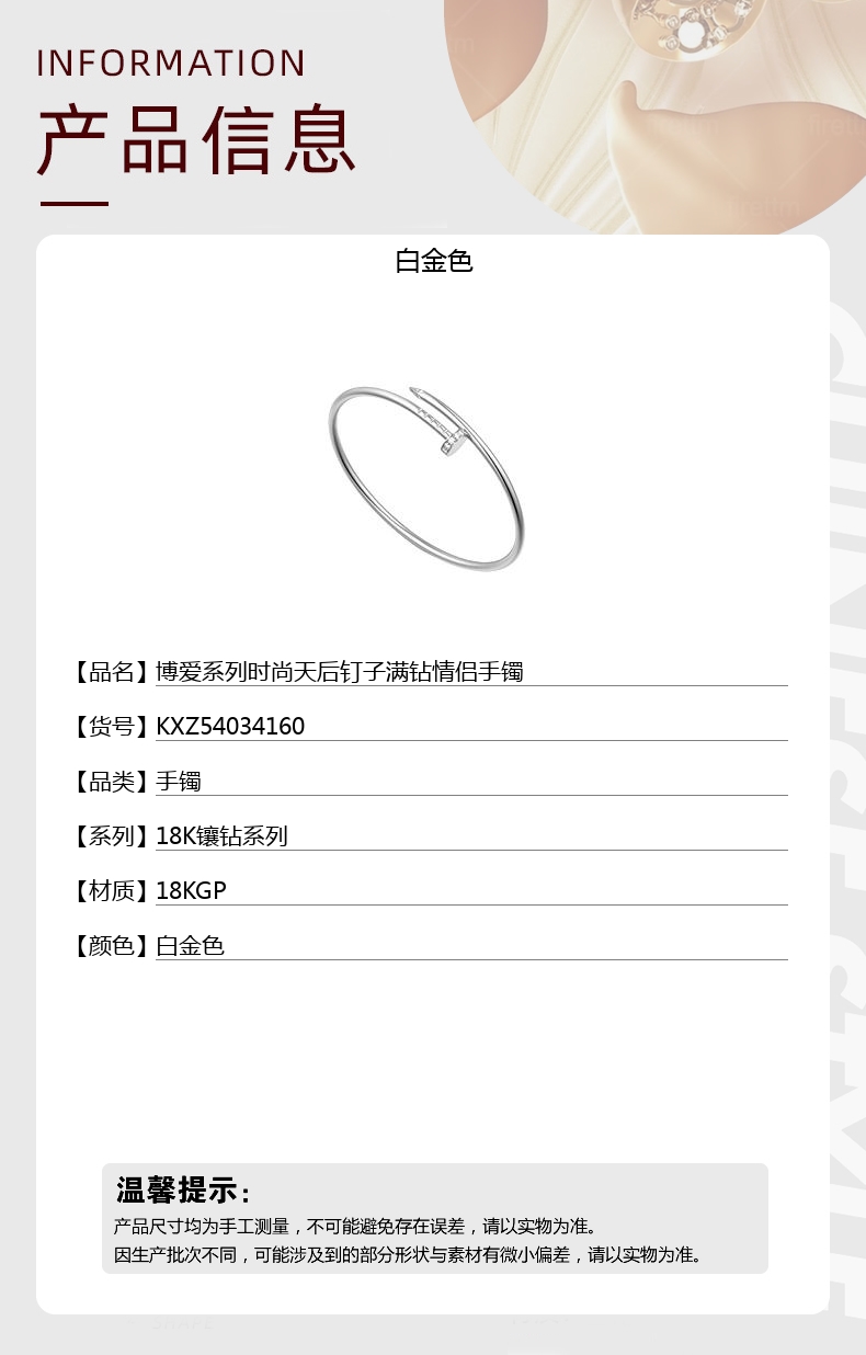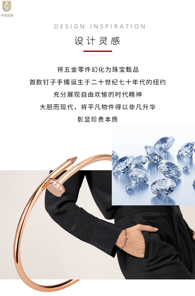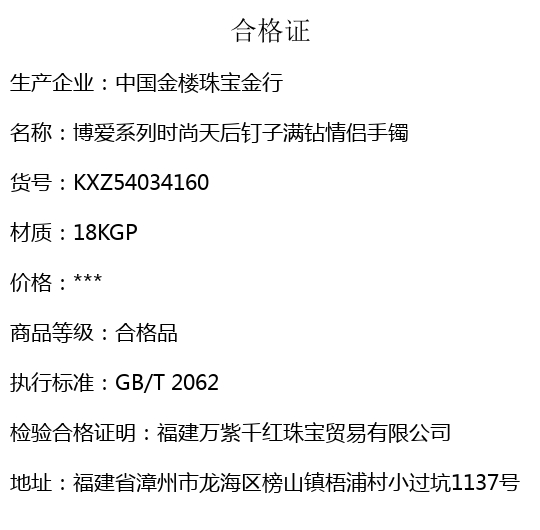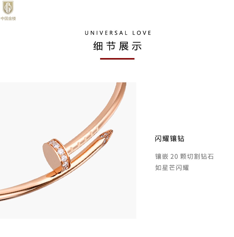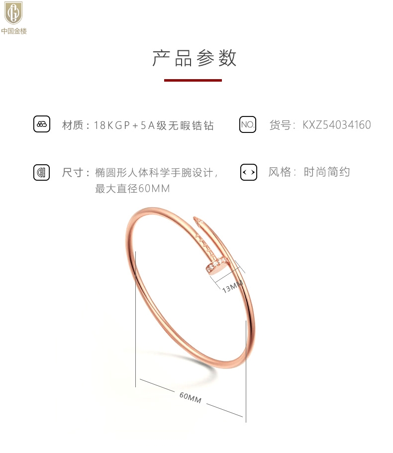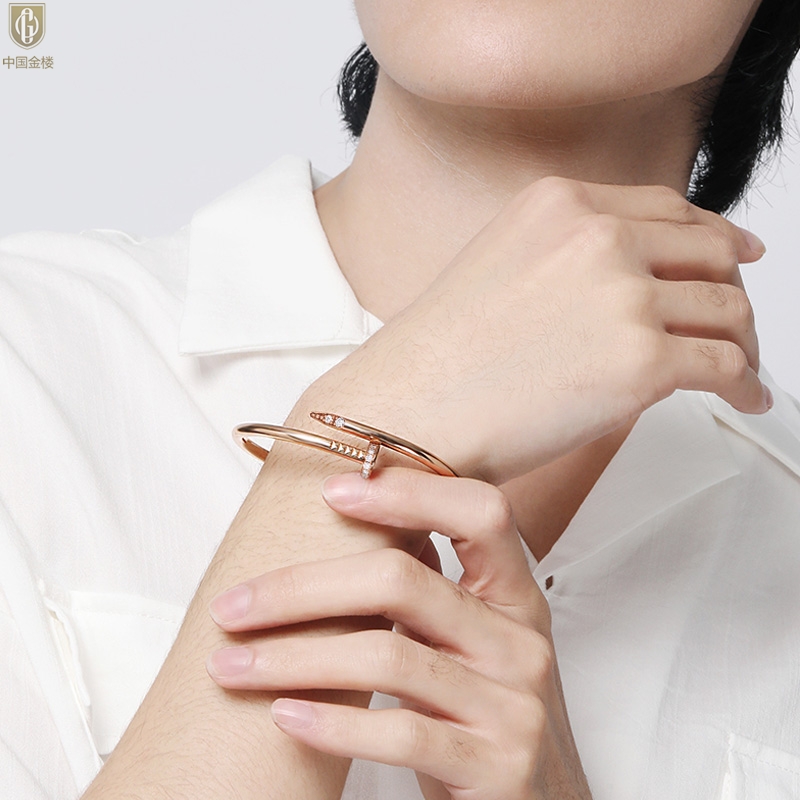 【品名】中国金楼博爱系列时尚天后钉子满钻情侣手镯