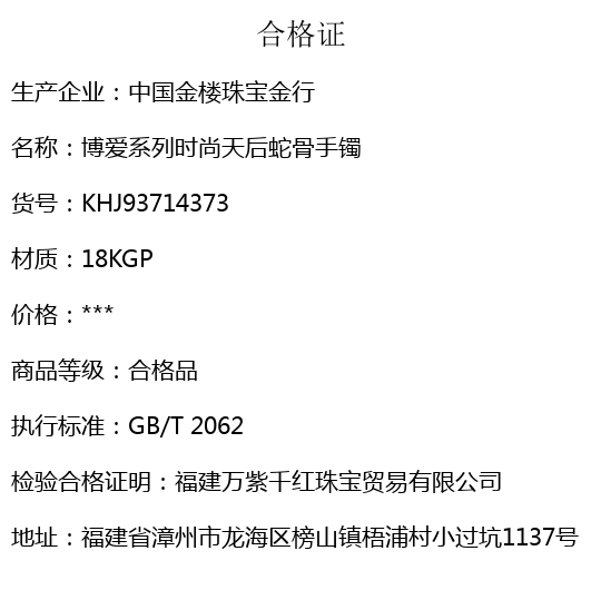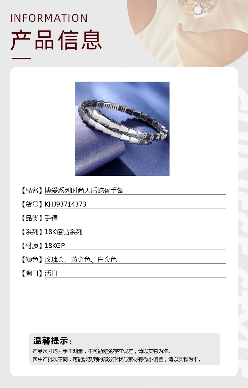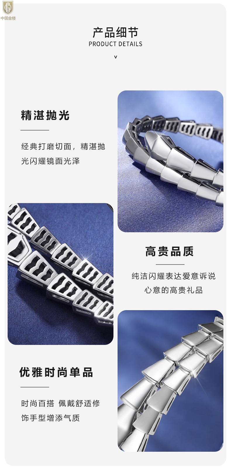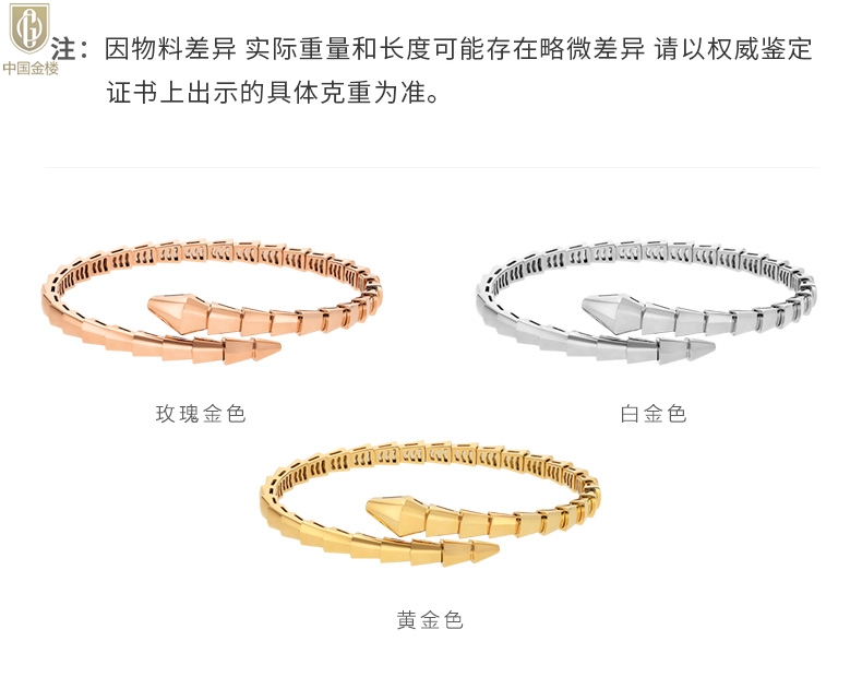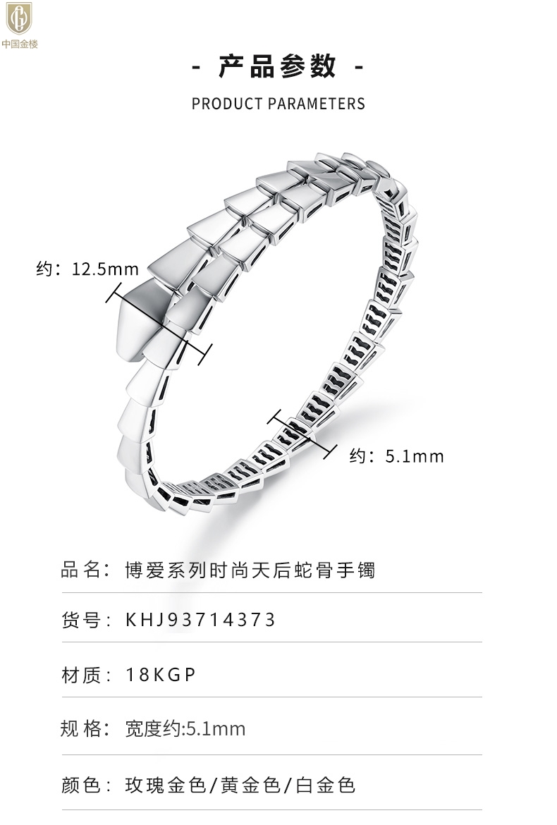 【品名】中国金楼博爱系列时尚天后蛇骨手镯
