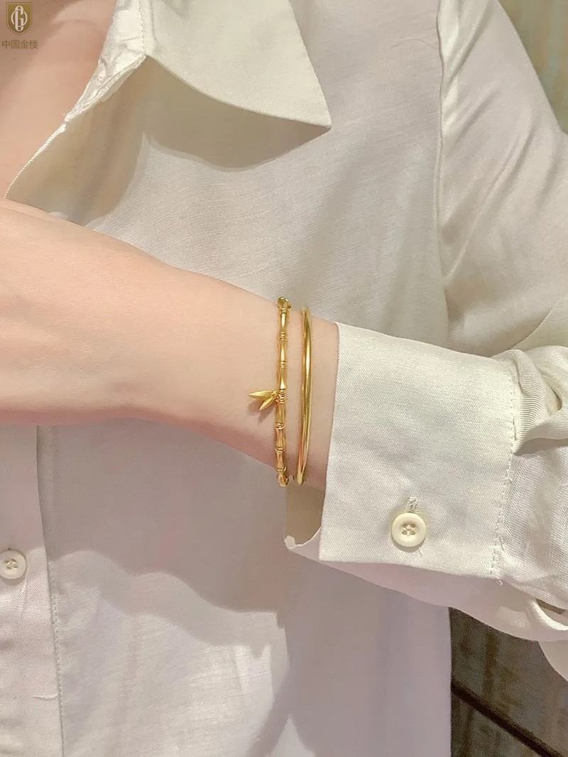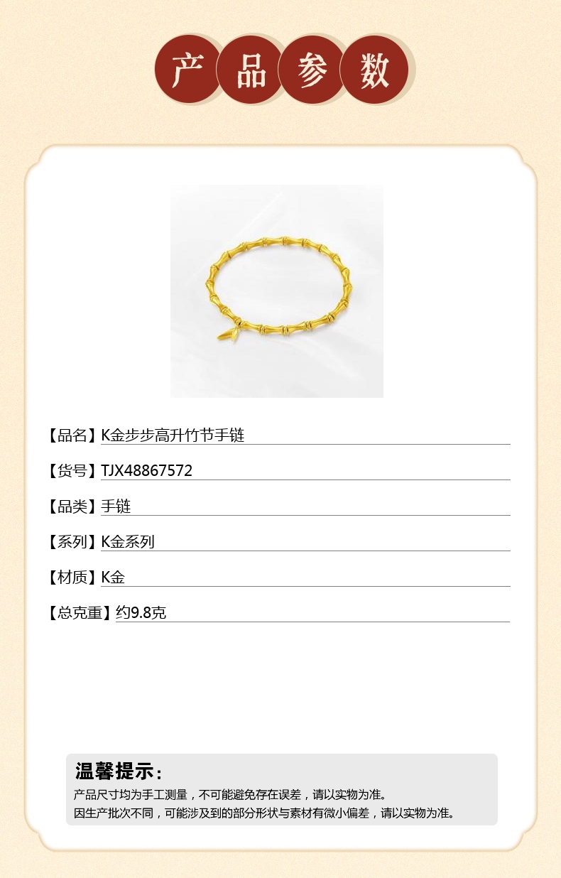 【品名】中国金楼K金步步高升竹节手链