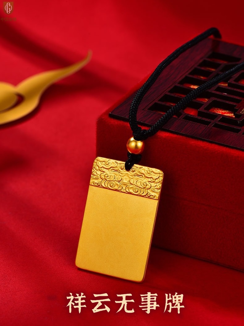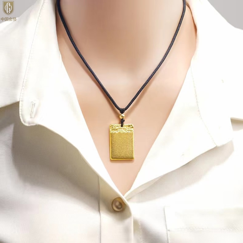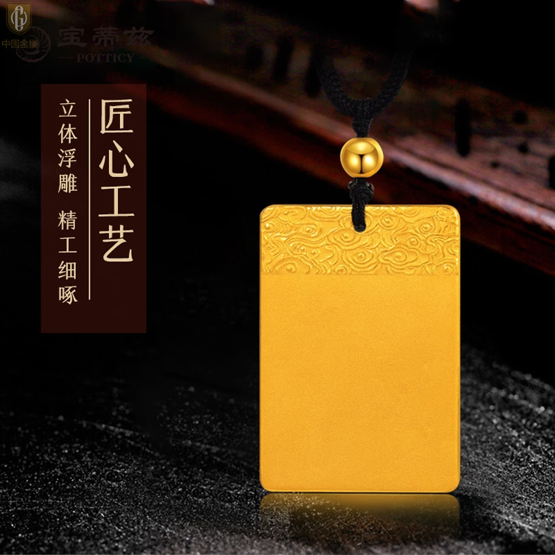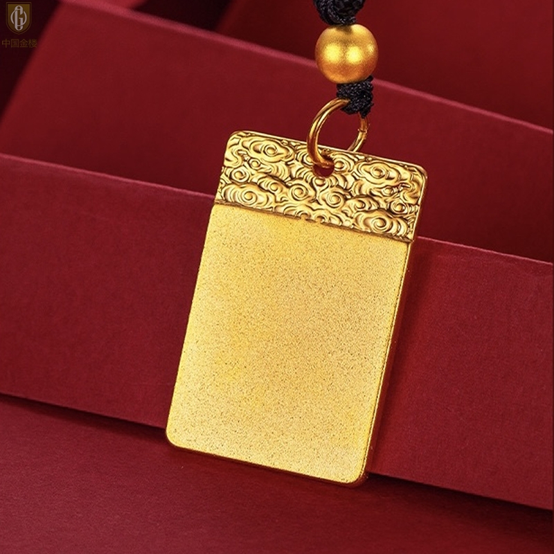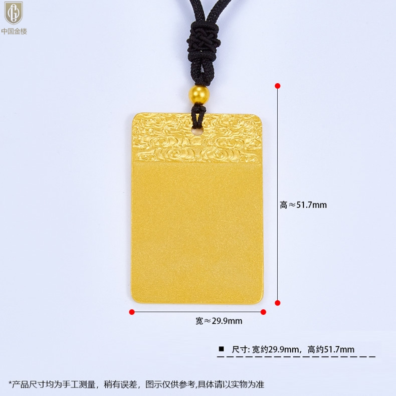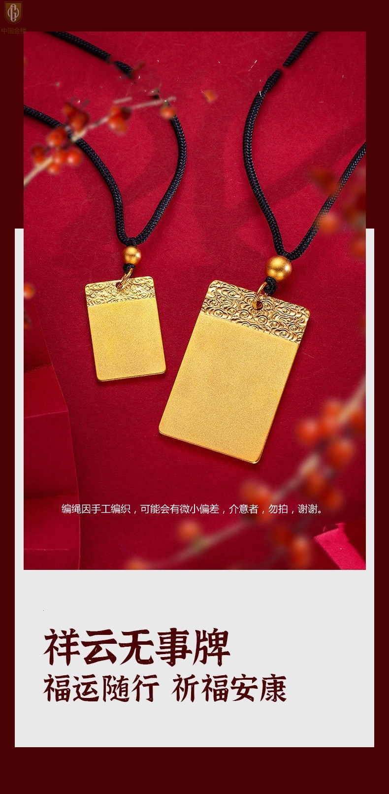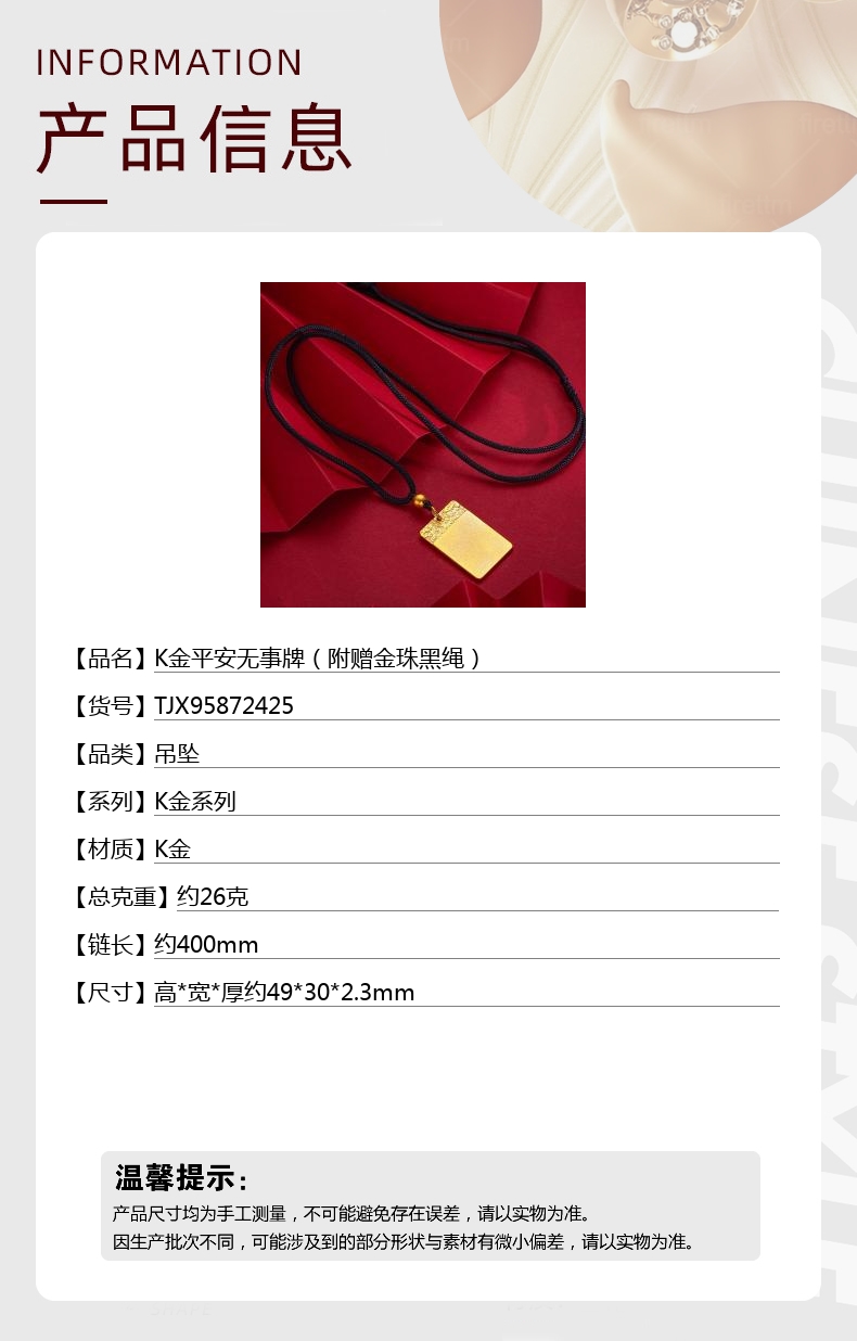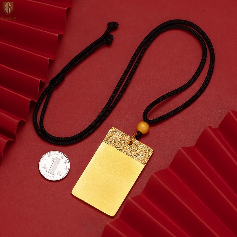【品名】中国金楼K金平安无事牌(附赠金珠黑绳)