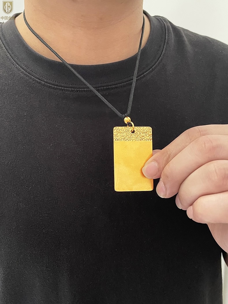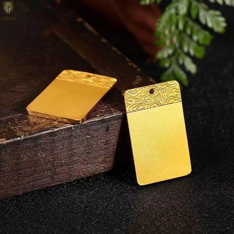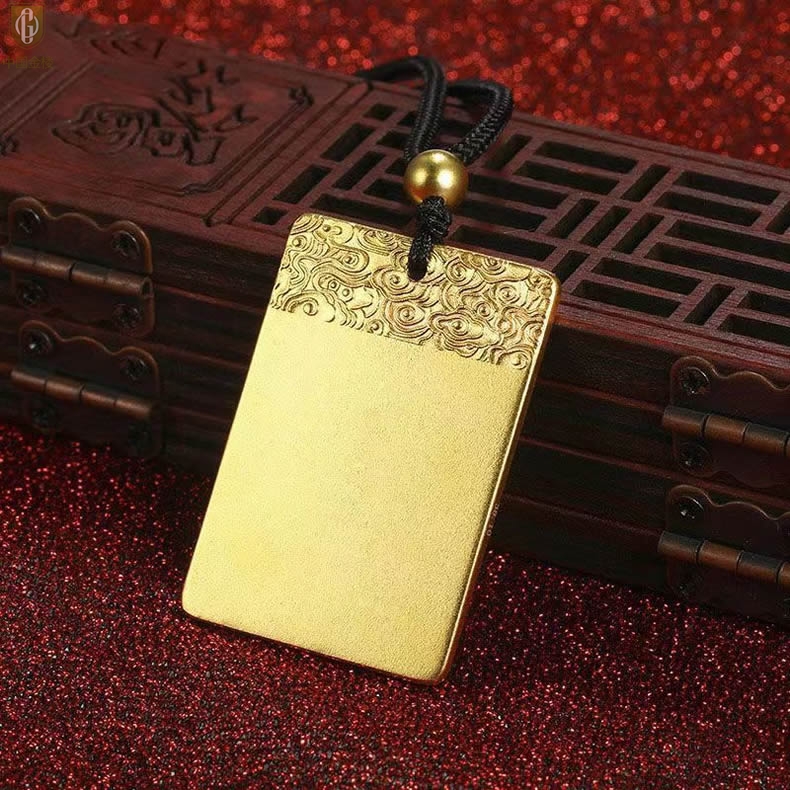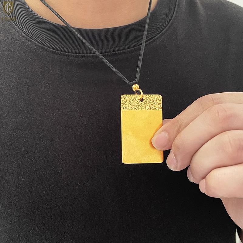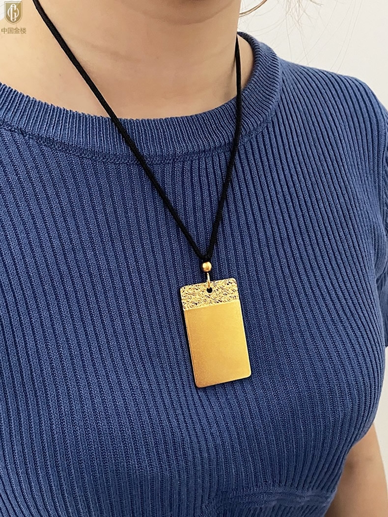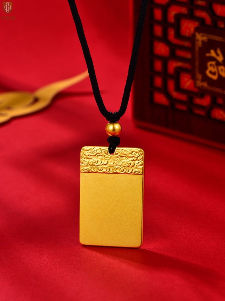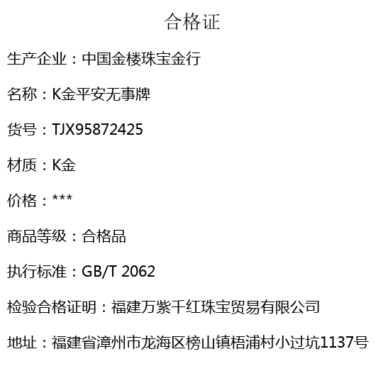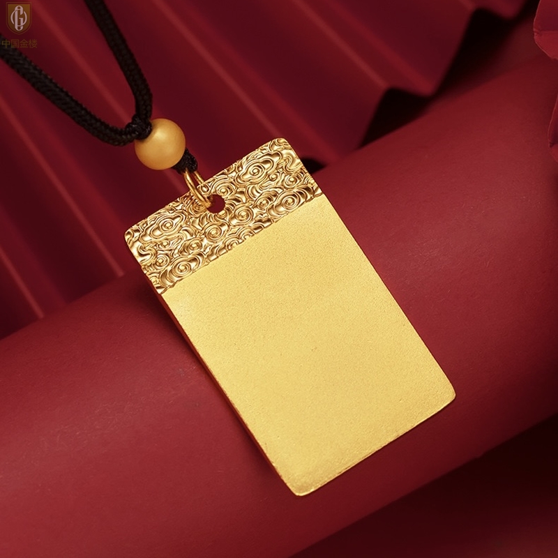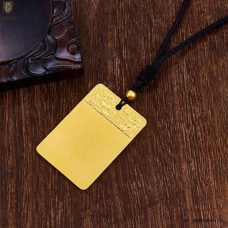 【品名】中国金楼K金平安无事牌(附赠金珠黑绳)
