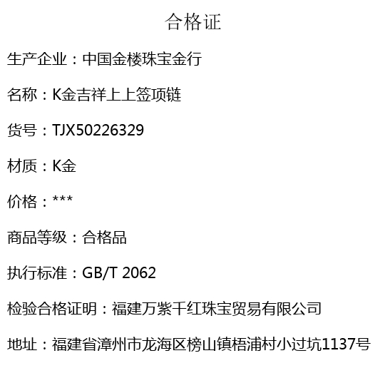 【套装包含】首饰+礼品盒+礼品袋+国检证书+质保单+价签