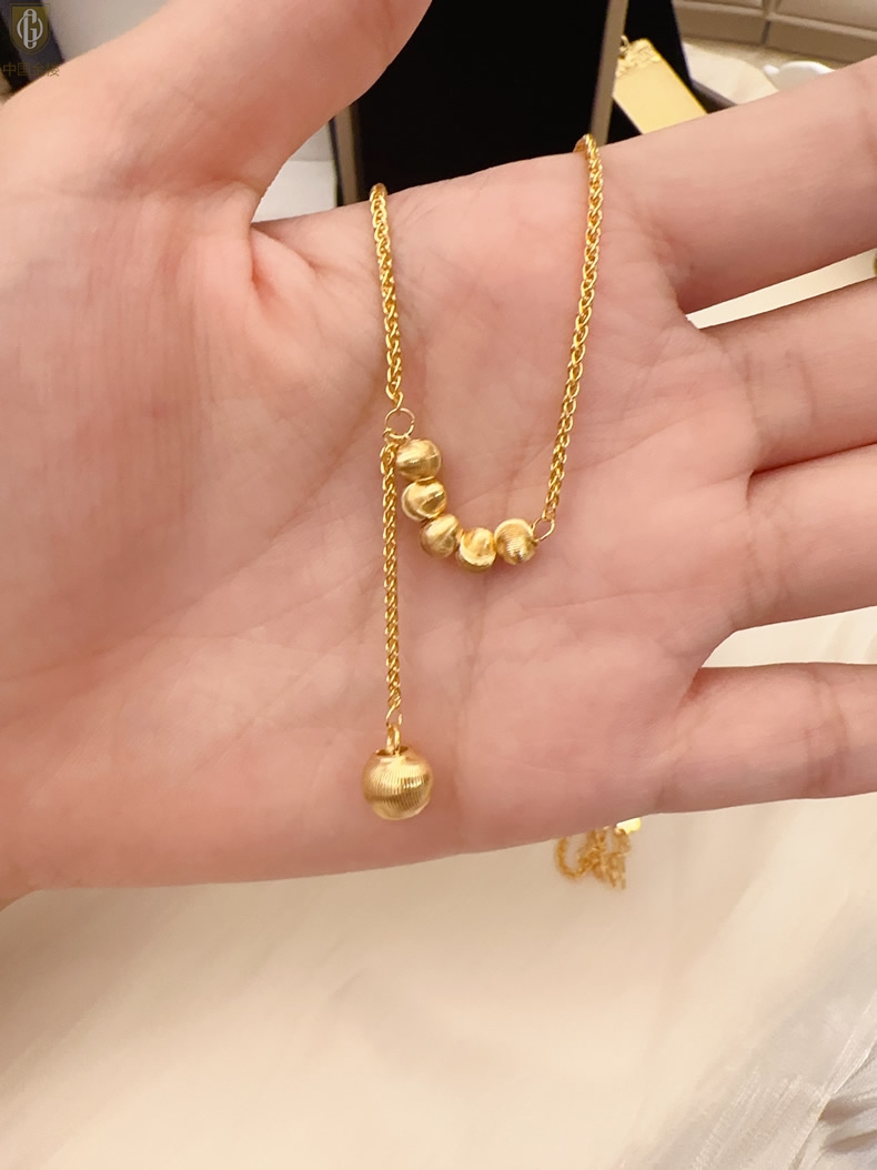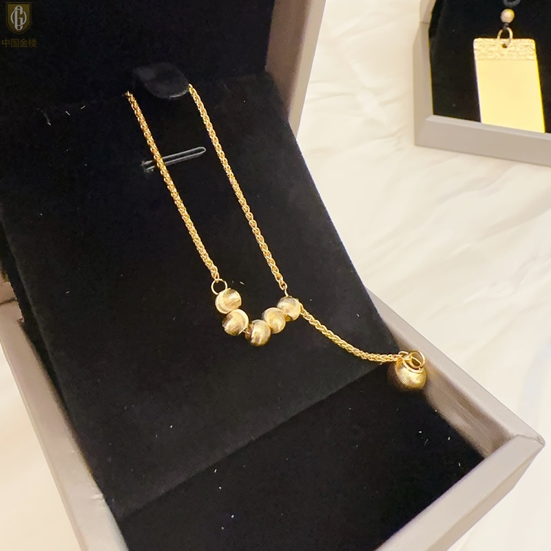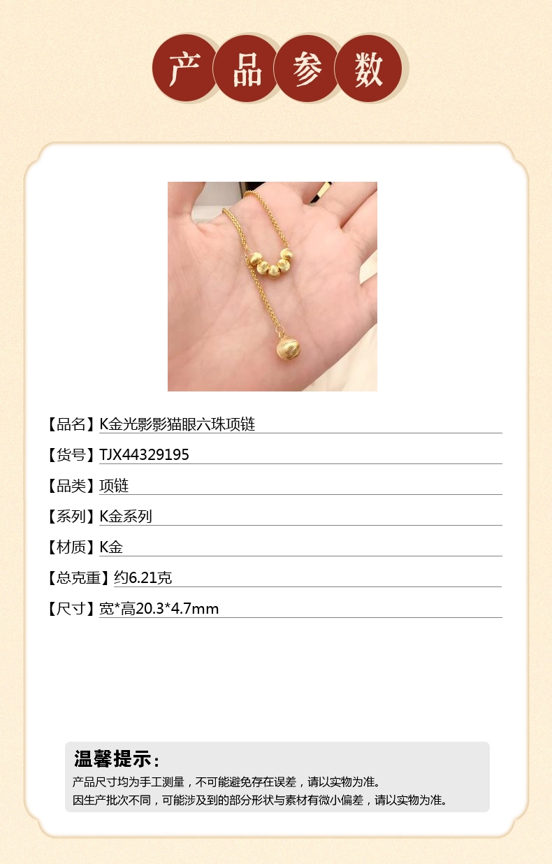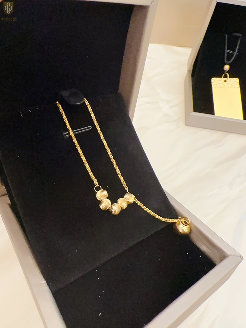 【品名】中国金楼K金光影影猫眼六珠项链