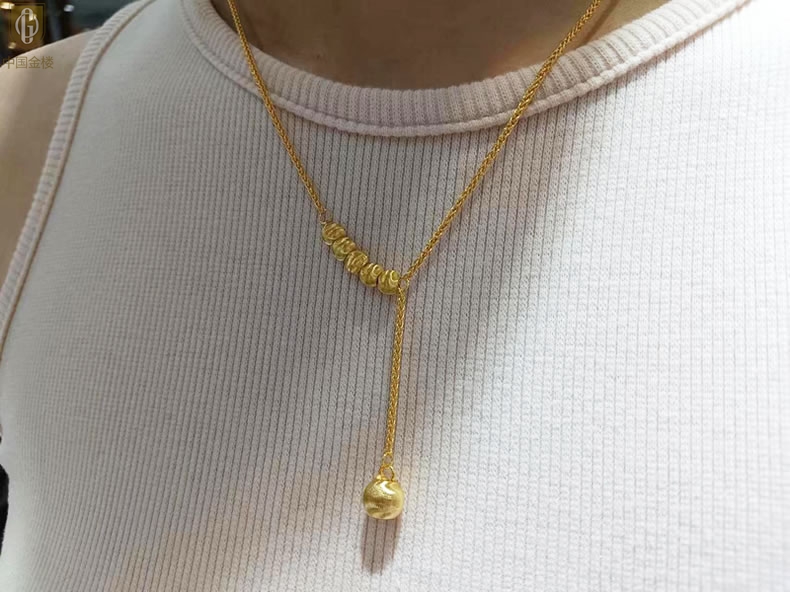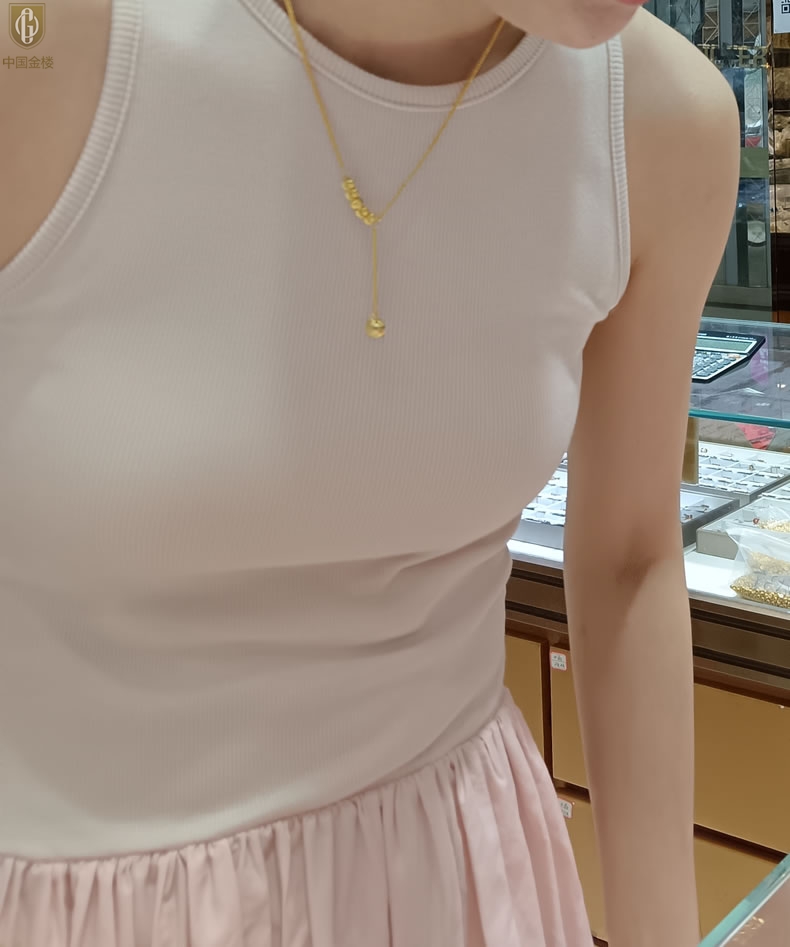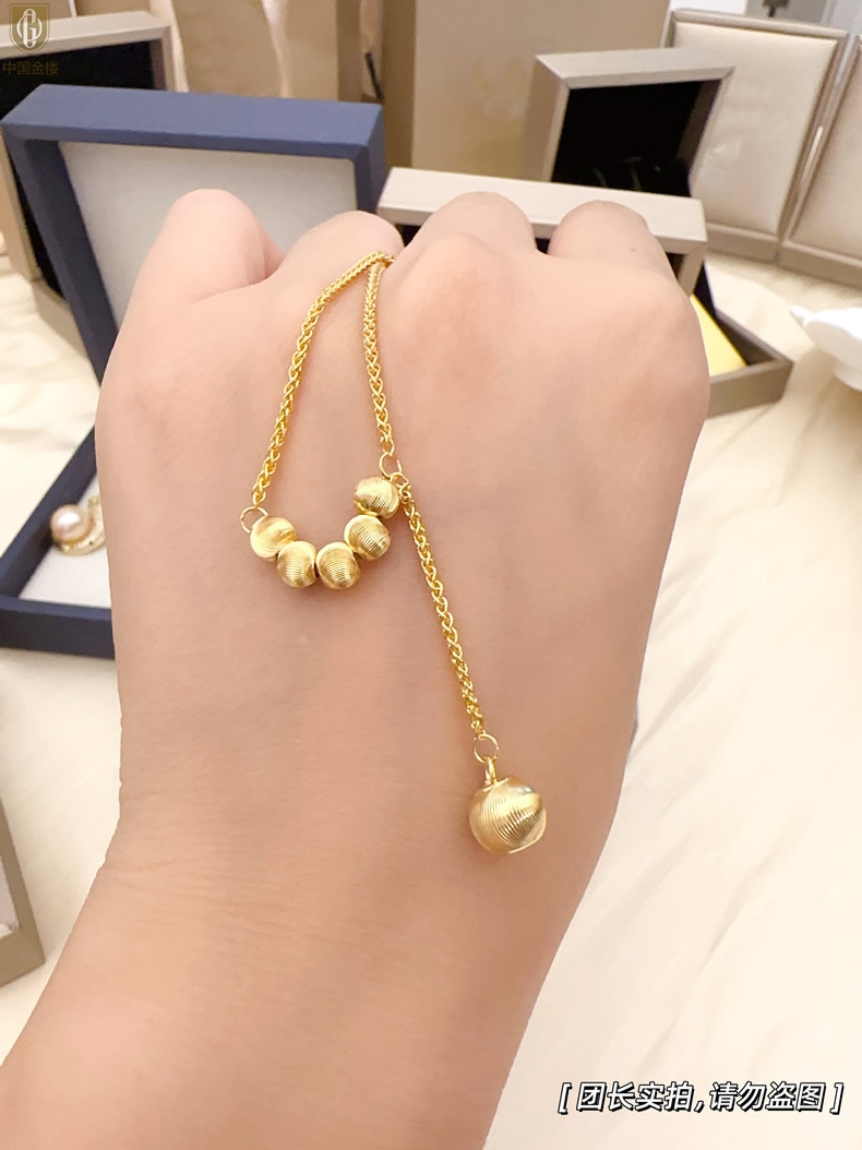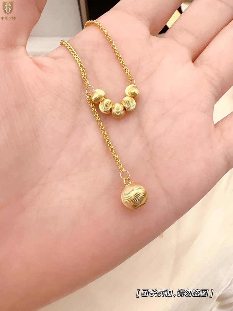 【品名】中国金楼K金光影影猫眼六珠项链