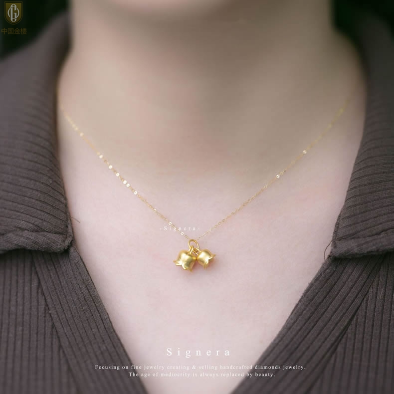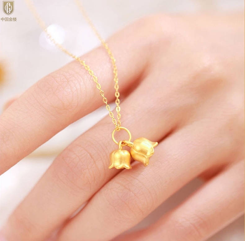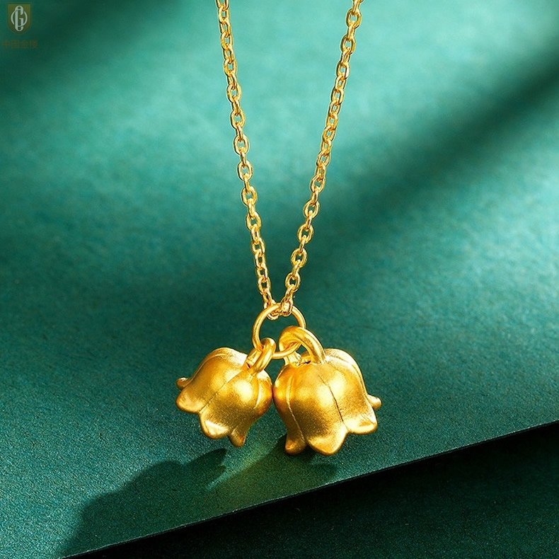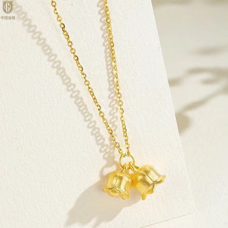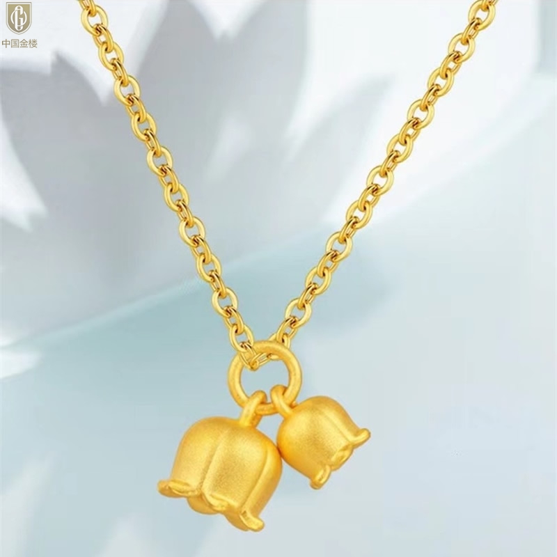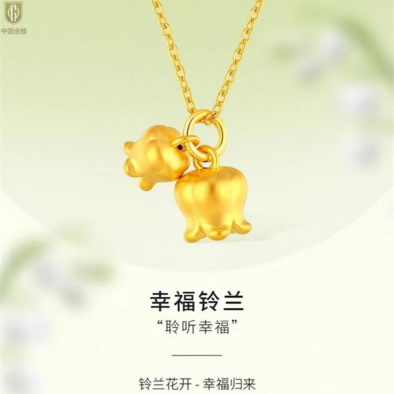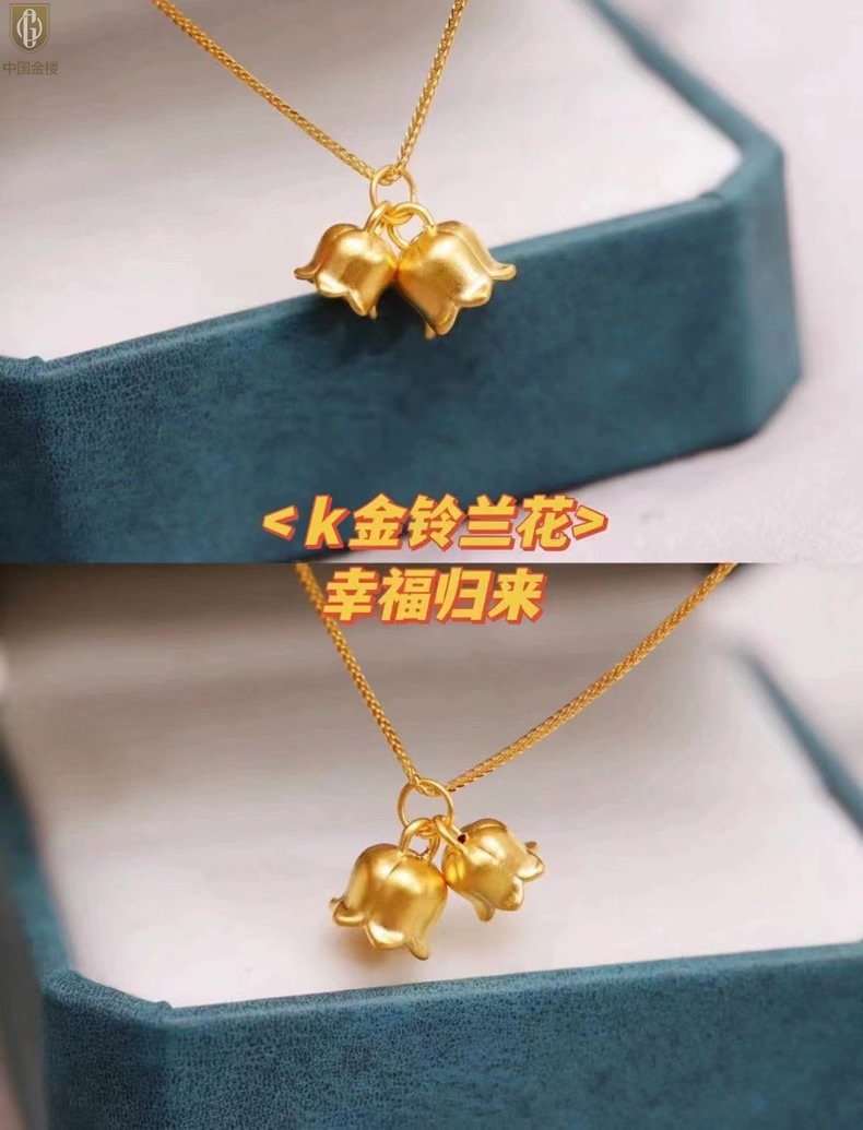 【品名】中国金楼K金铃兰花吊坠(附赠K金项链)