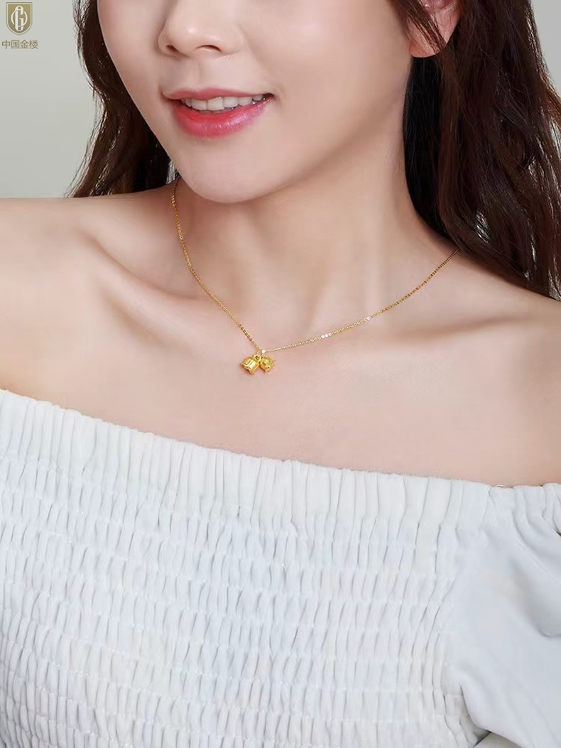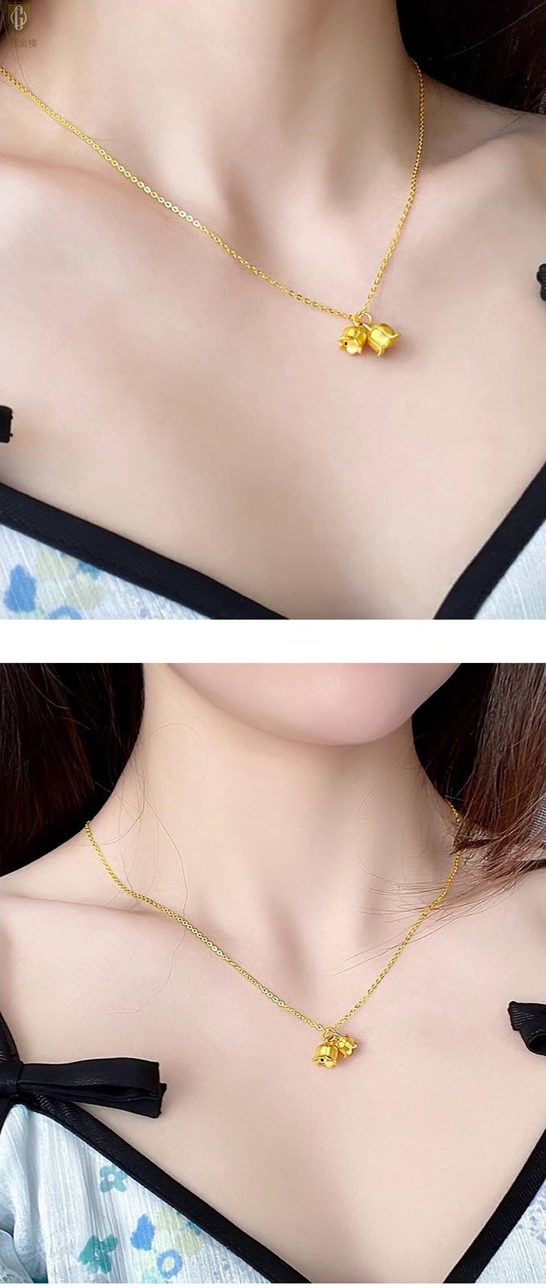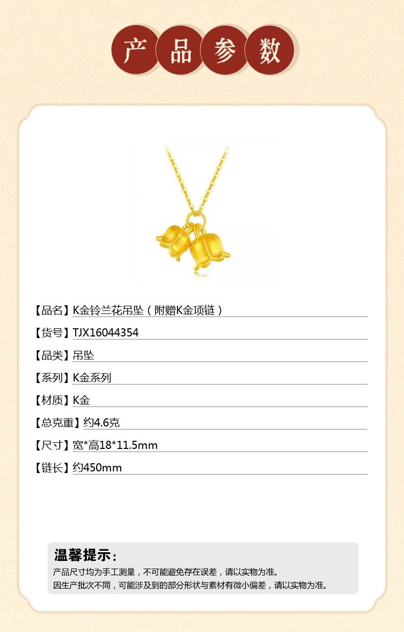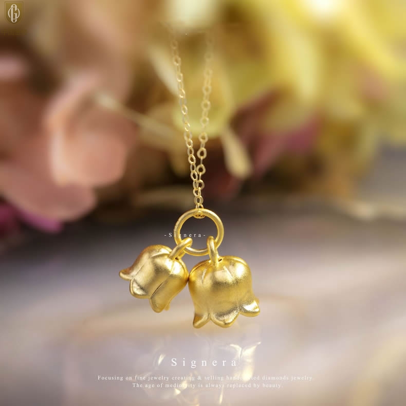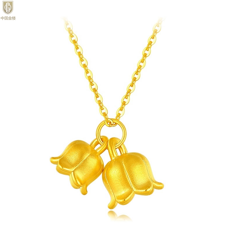 【品名】中国金楼K金铃兰花吊坠(附赠K金项链)