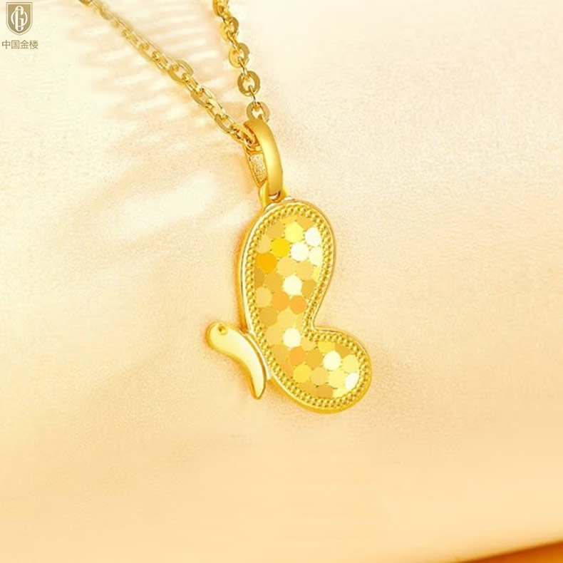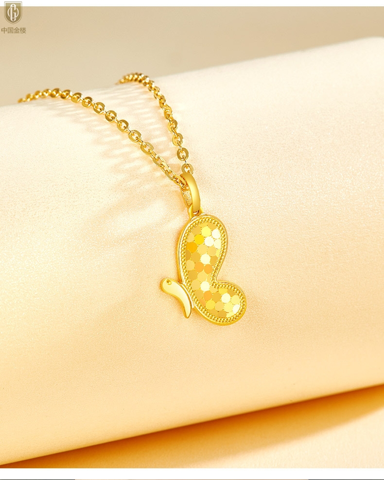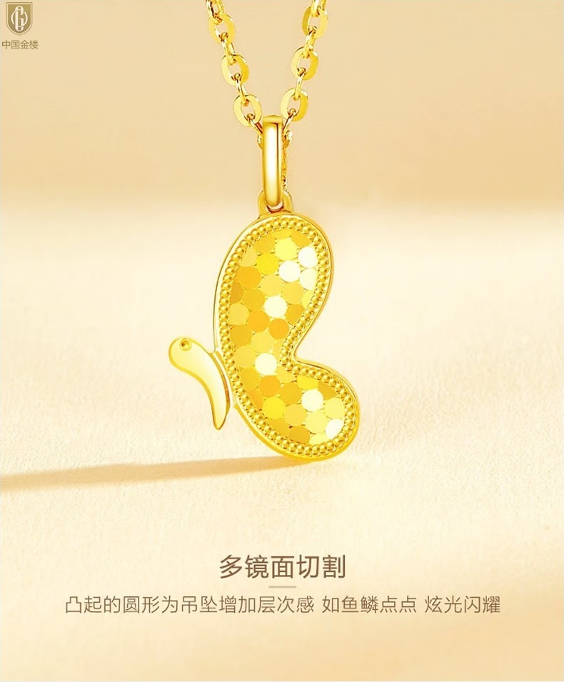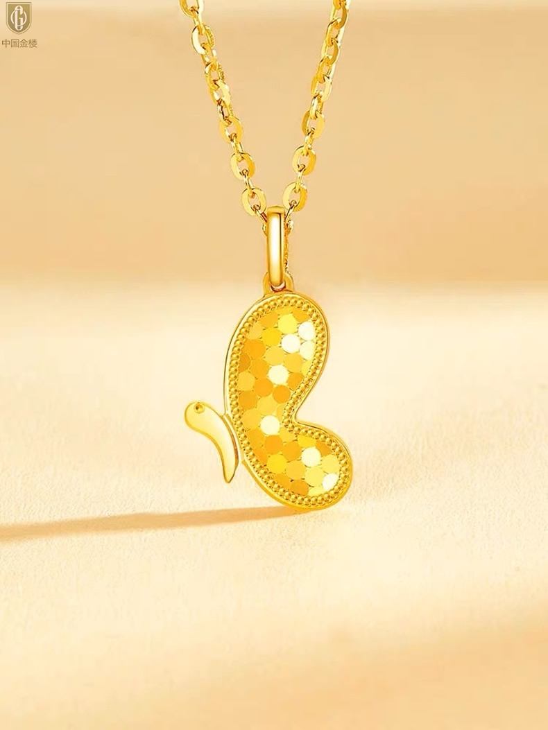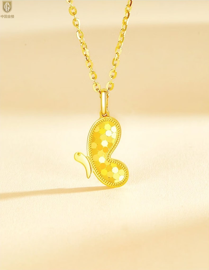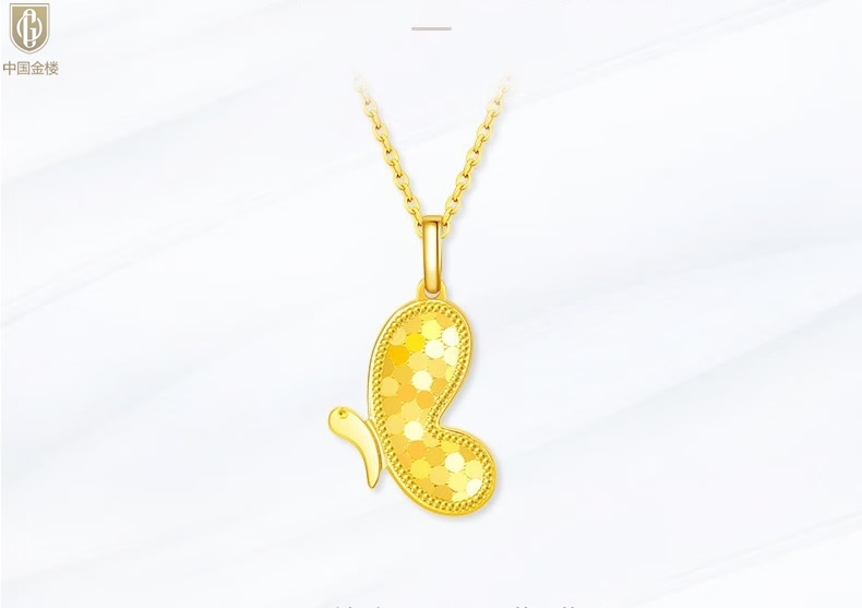 【品名】中国金楼K金龙鳞闪耀翩翩蝴蝶吊坠
